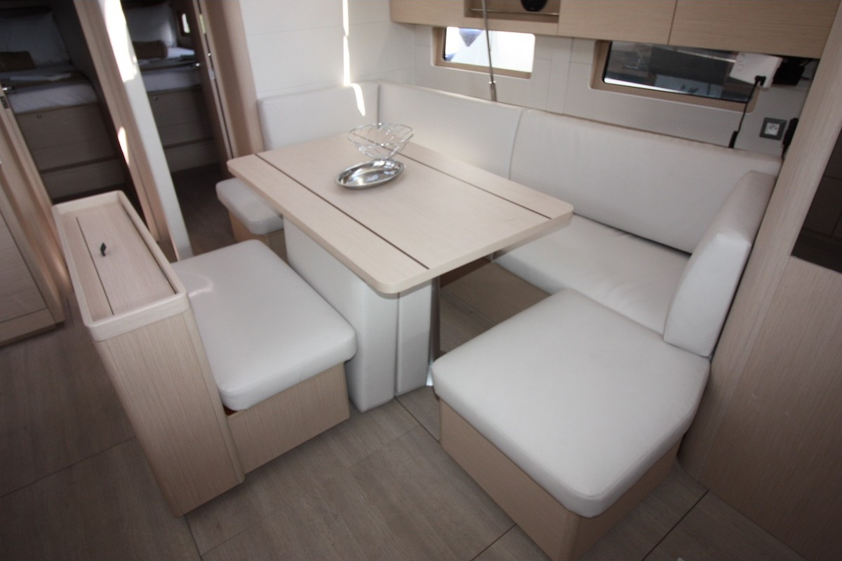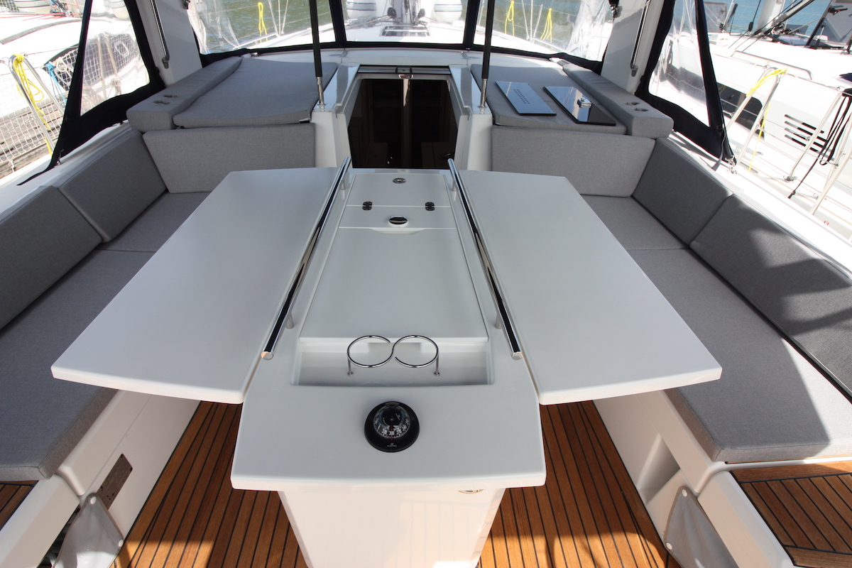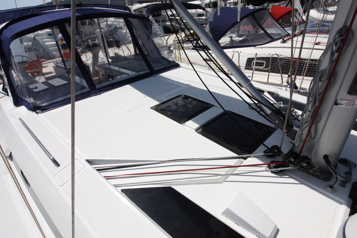 | Outside | Biminitop, Cockpitdusche, Cockpitlautsprecher, Cockpitpolster, elektr. Ankerwinsch, elektr. Winsch, Teak im Cockpit |