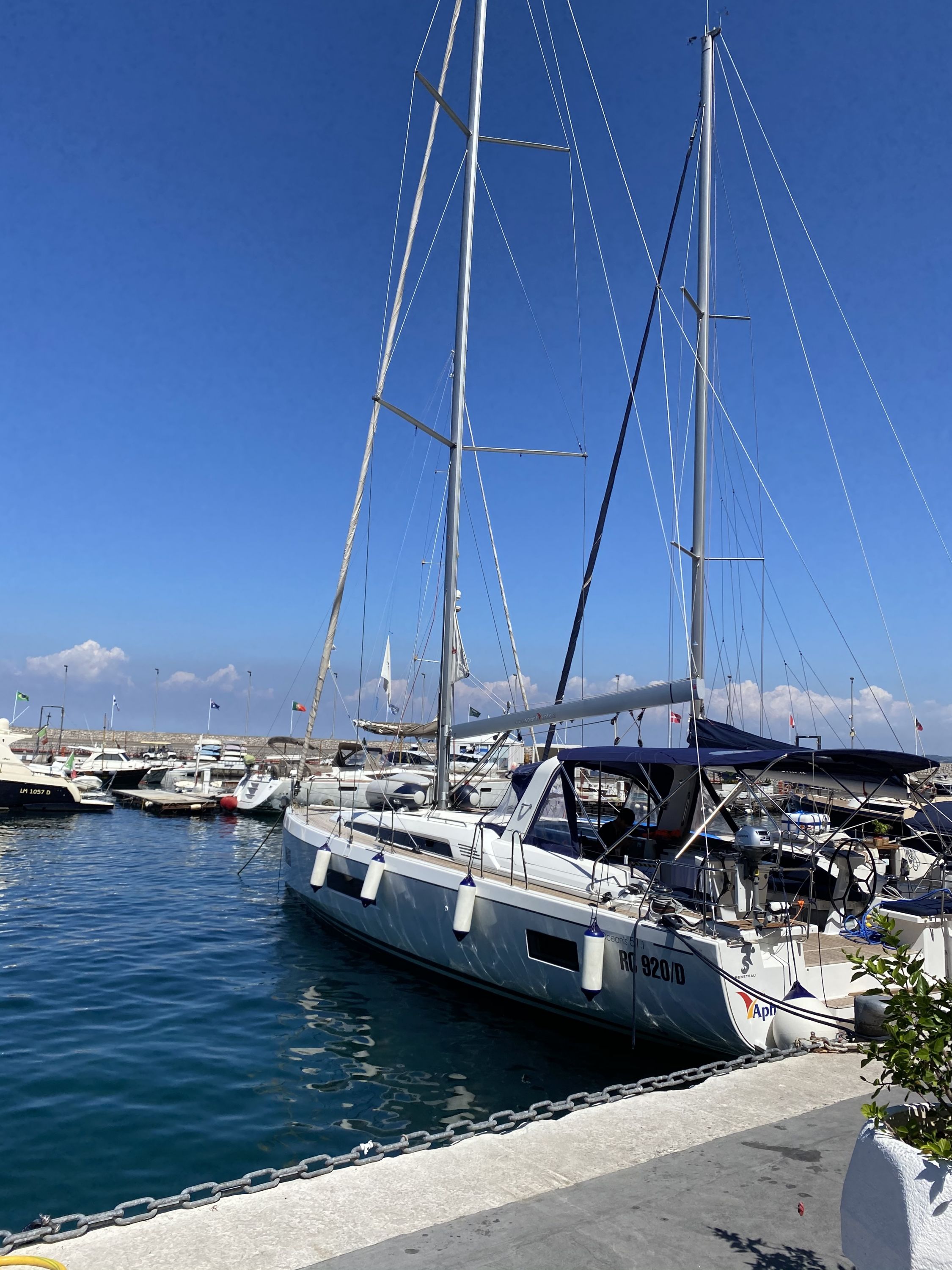 | Outside | 220 V-Landanschluss, Anker mit Kette, Badeplattform, Biminitop, Cockpitdusche, Cockpitlautsprecher, Cockpitpolster, elektr. Ankerwinsch, Gangway, Sprayhood, Teakdeck |
