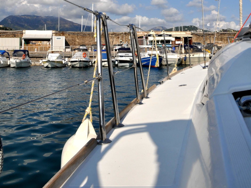 | Safety | Autopilot, Bordapotheke, Bordwerkzeug, Bugstrahlruder, elektr. Bilgepumpe, Feststoffschwimmwesten, Handbilgepumpe, Nebelhorn, Notsignale, UKW-Funk |