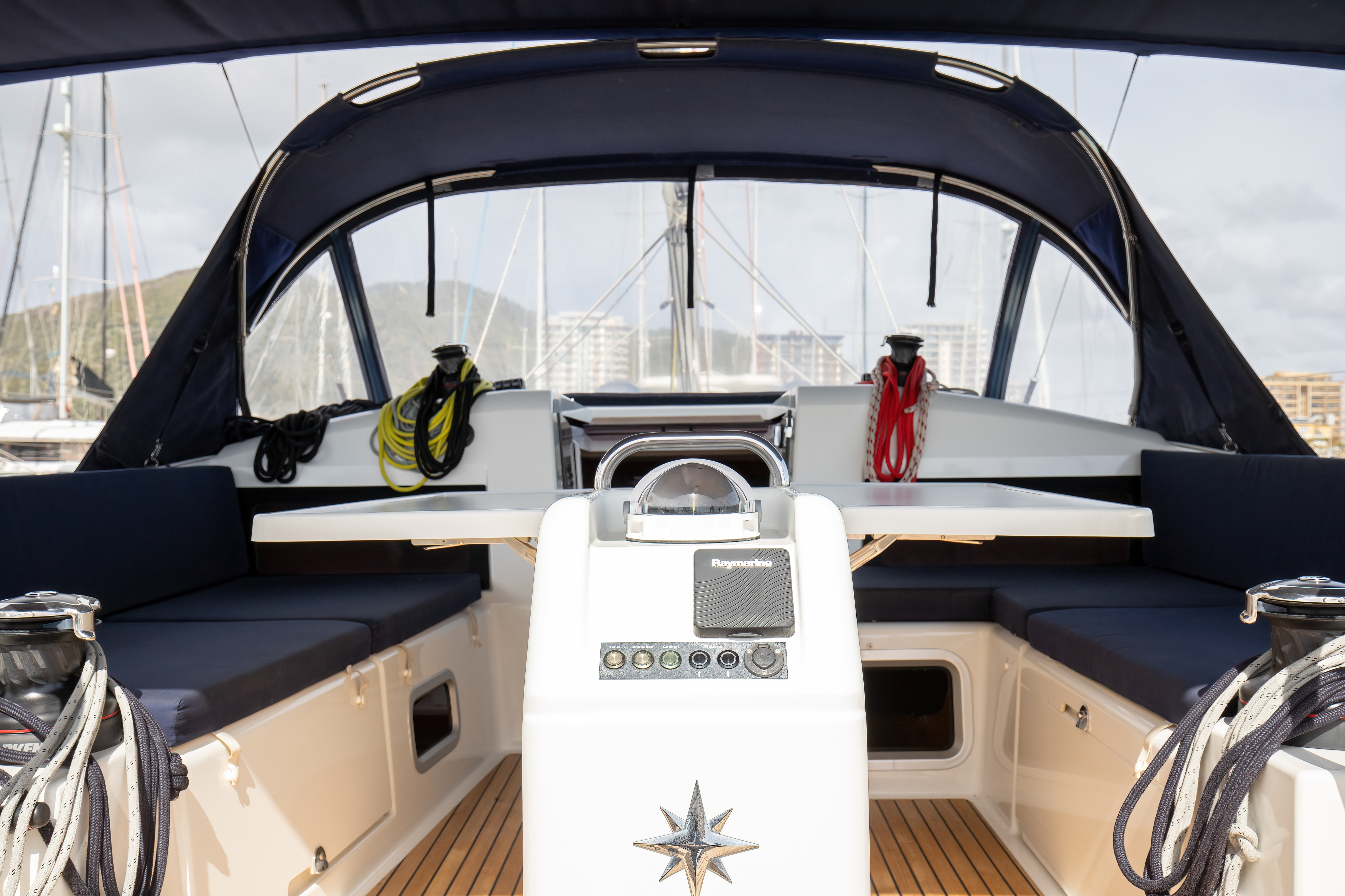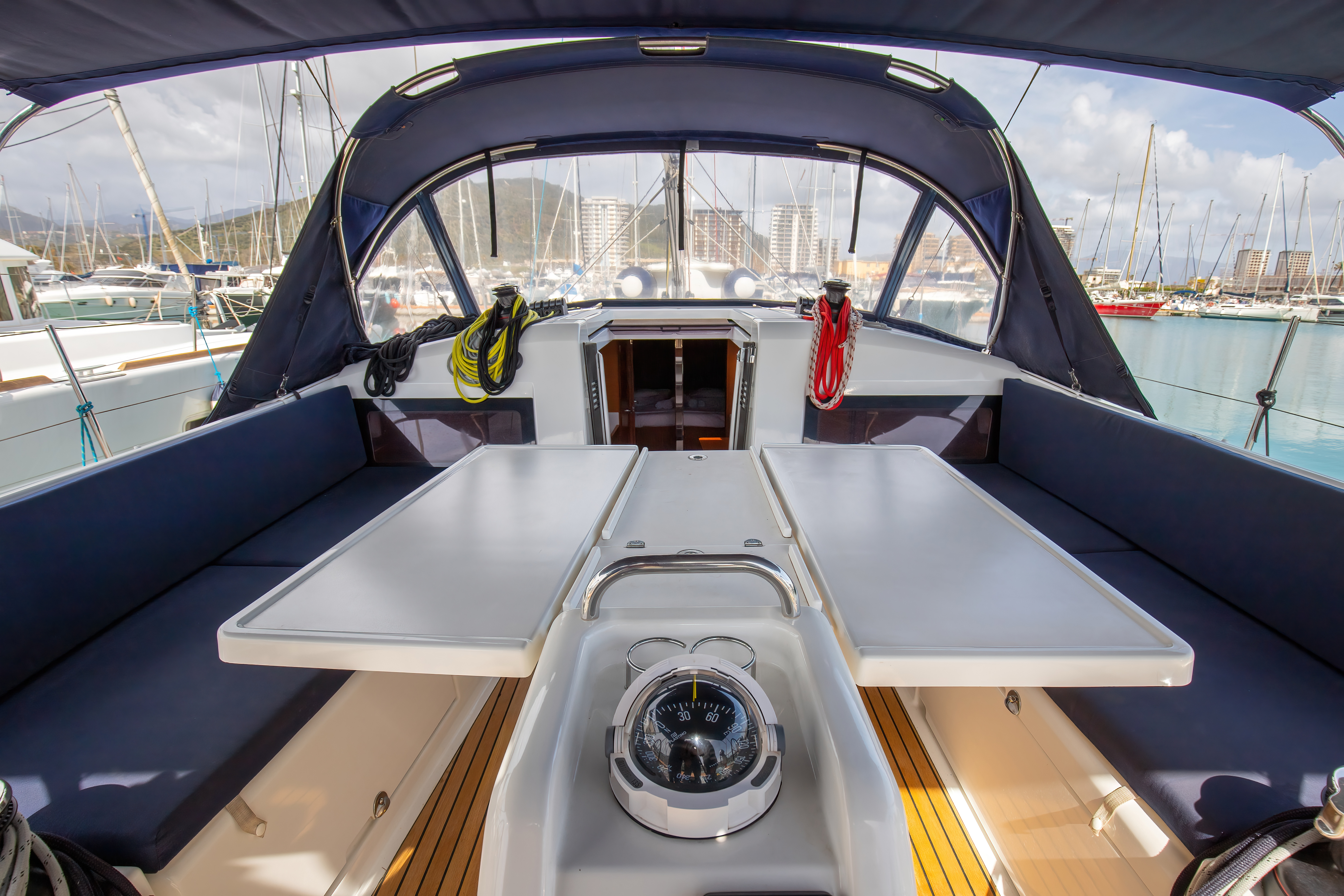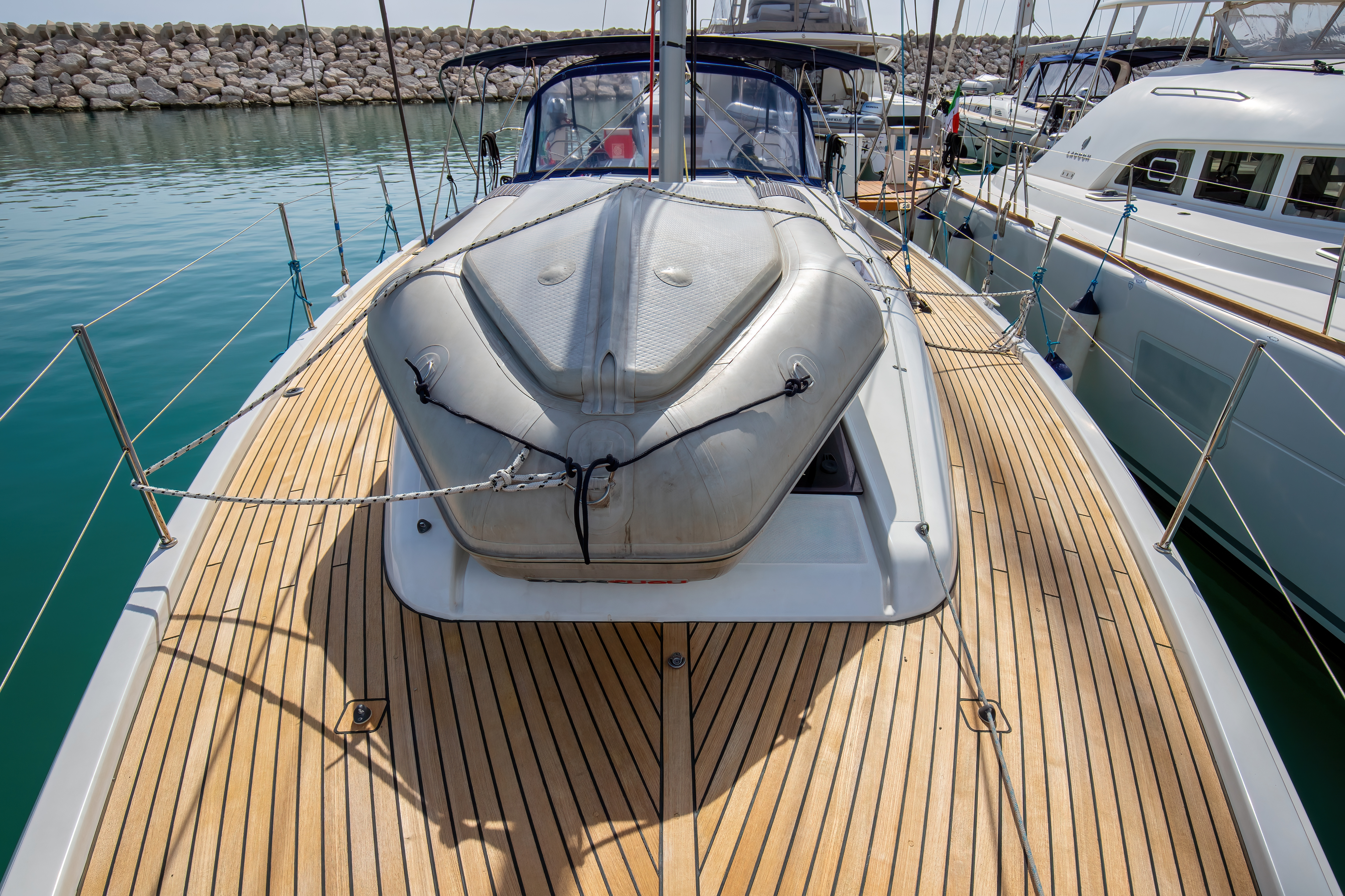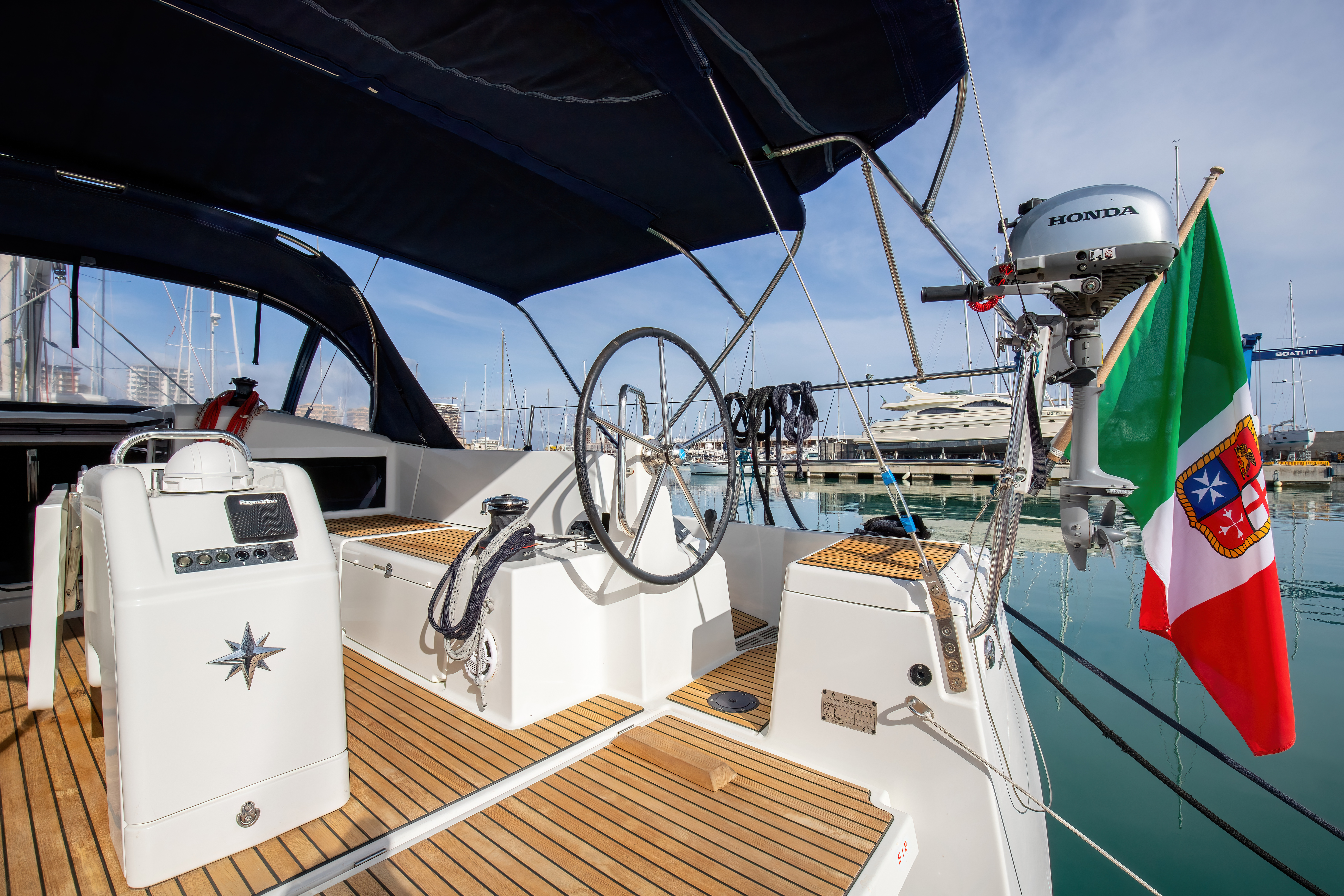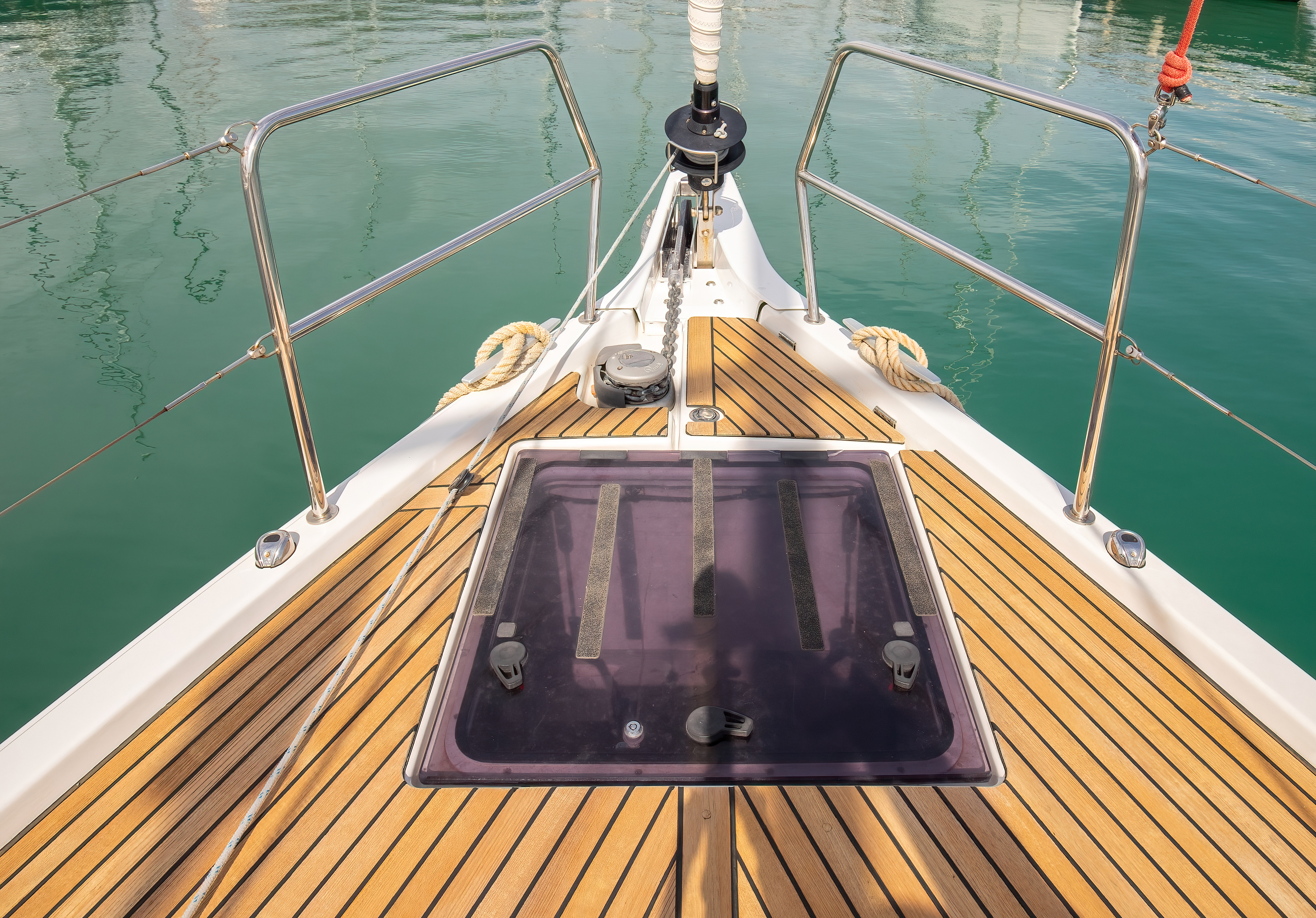 | Outside | Anker mit Kette, Badeplattform, Biminitop, Cockpitdusche, Cockpitlautsprecher, Cockpitpolster, elektr. Ankerwinsch, elektr. Winsch, Gangway, Sprayhood, Teakdeck |