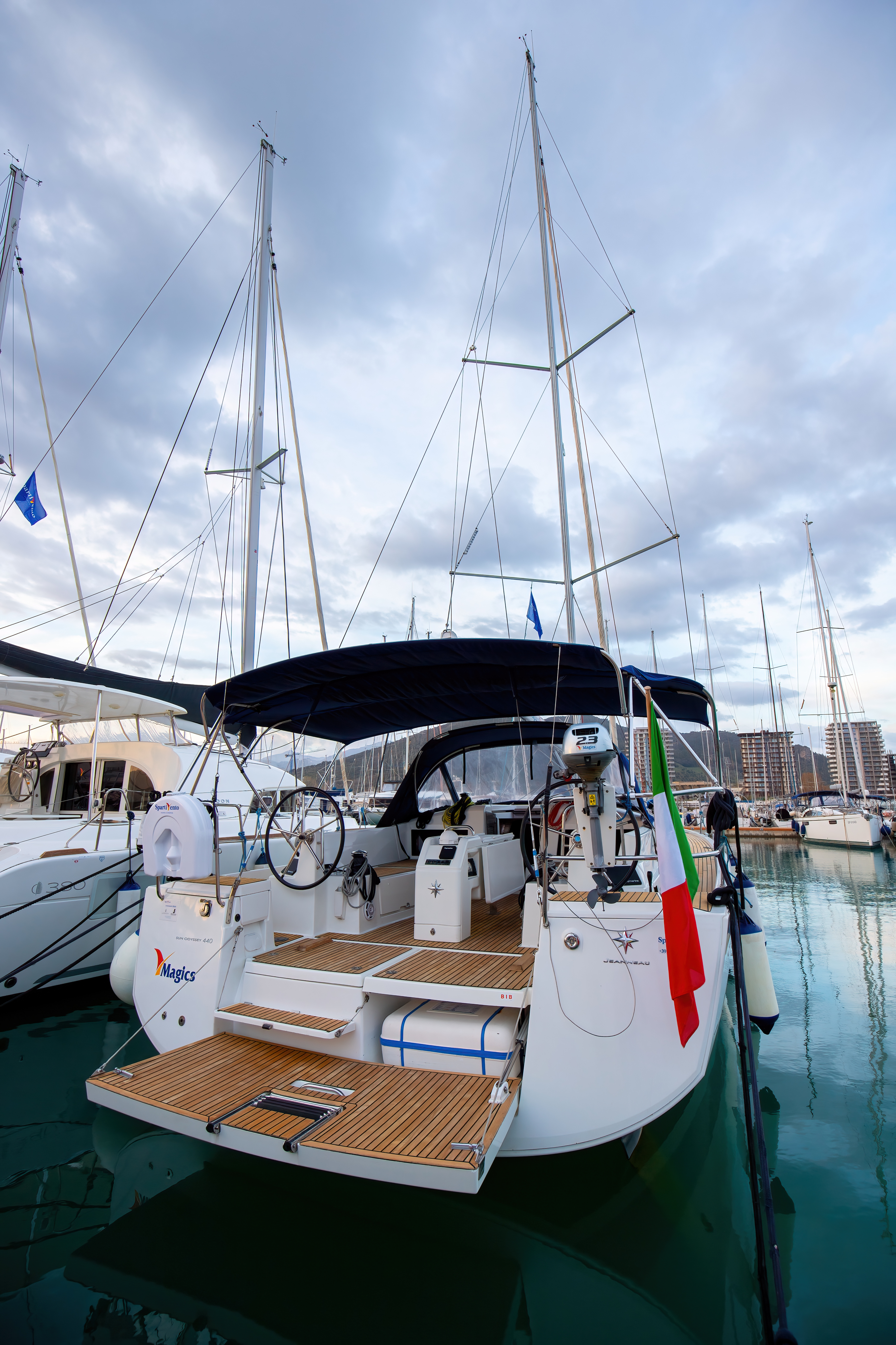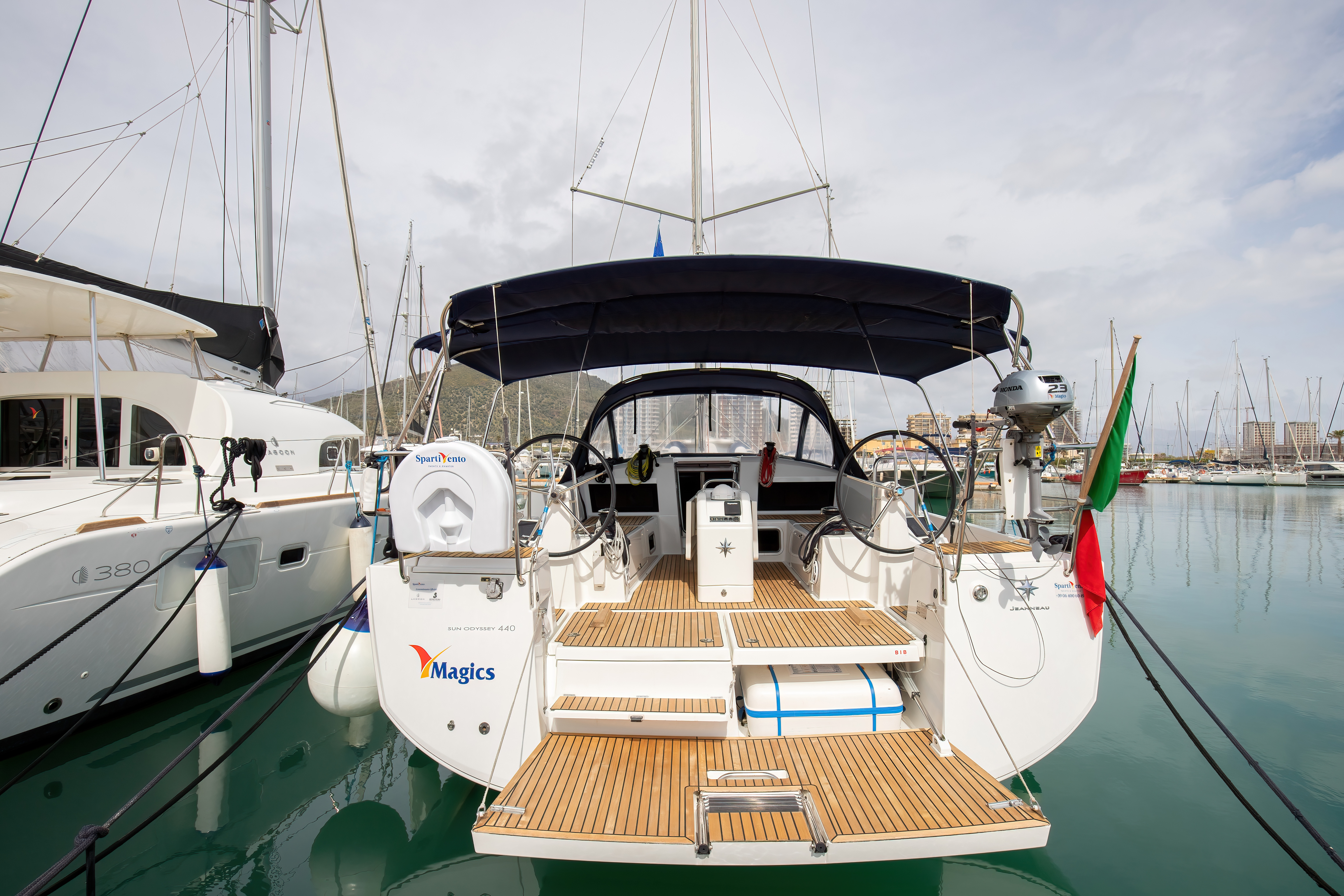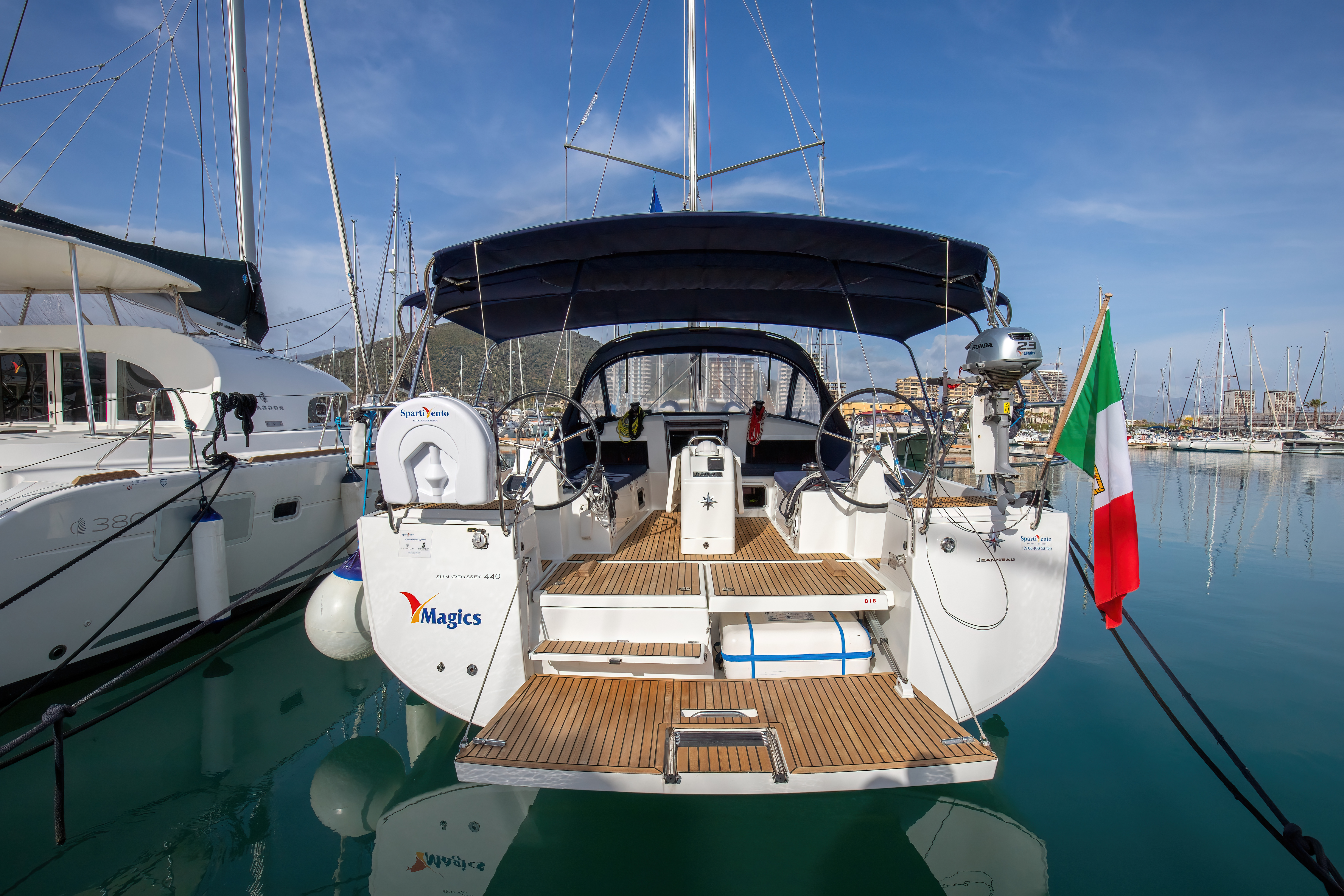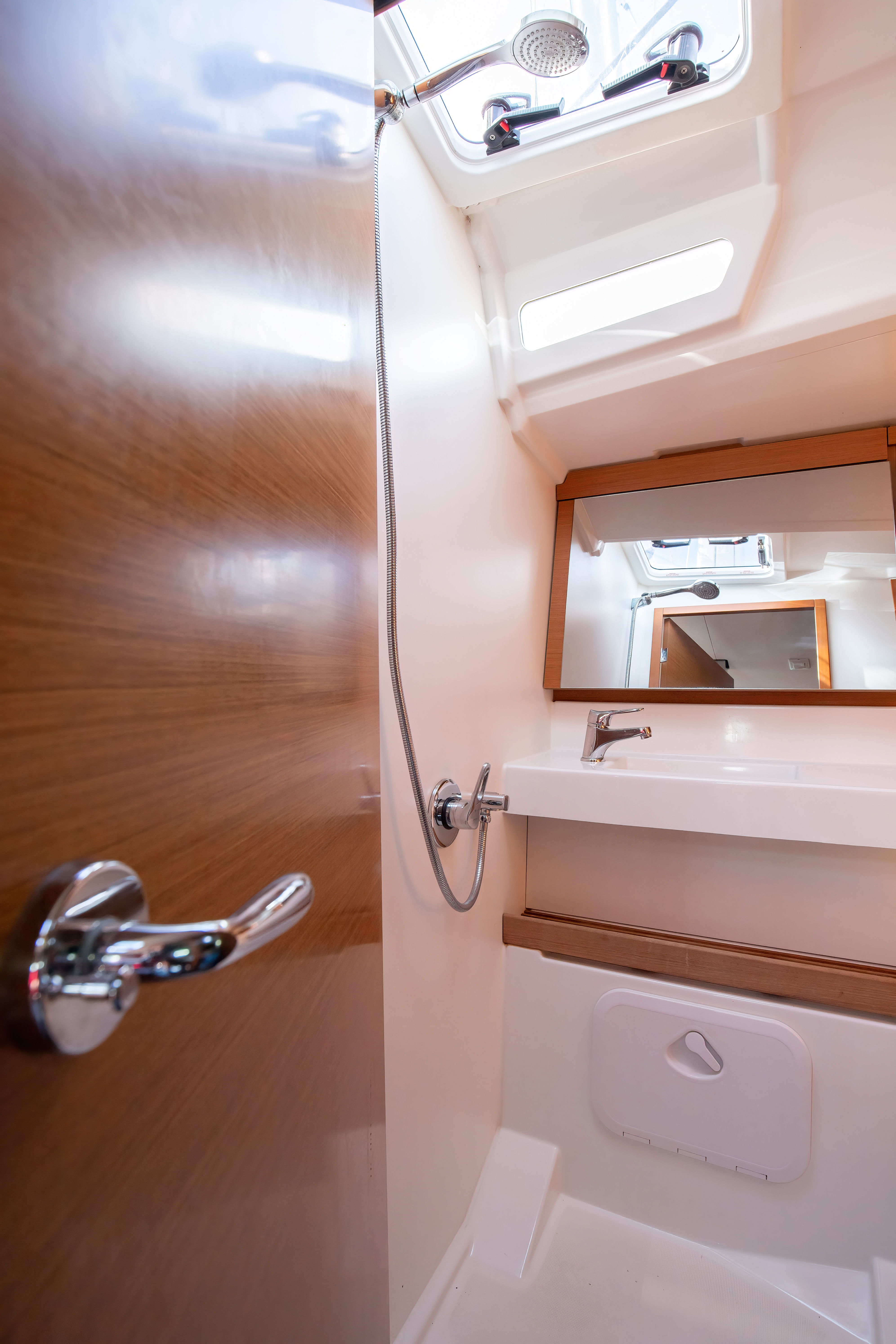 | Outside | Anker mit Kette, Badeplattform, Biminitop, Cockpitdusche, Cockpitlautsprecher, Cockpitpolster, elektr. Ankerwinsch, elektr. Winsch, Gangway, Sprayhood, Teakdeck |