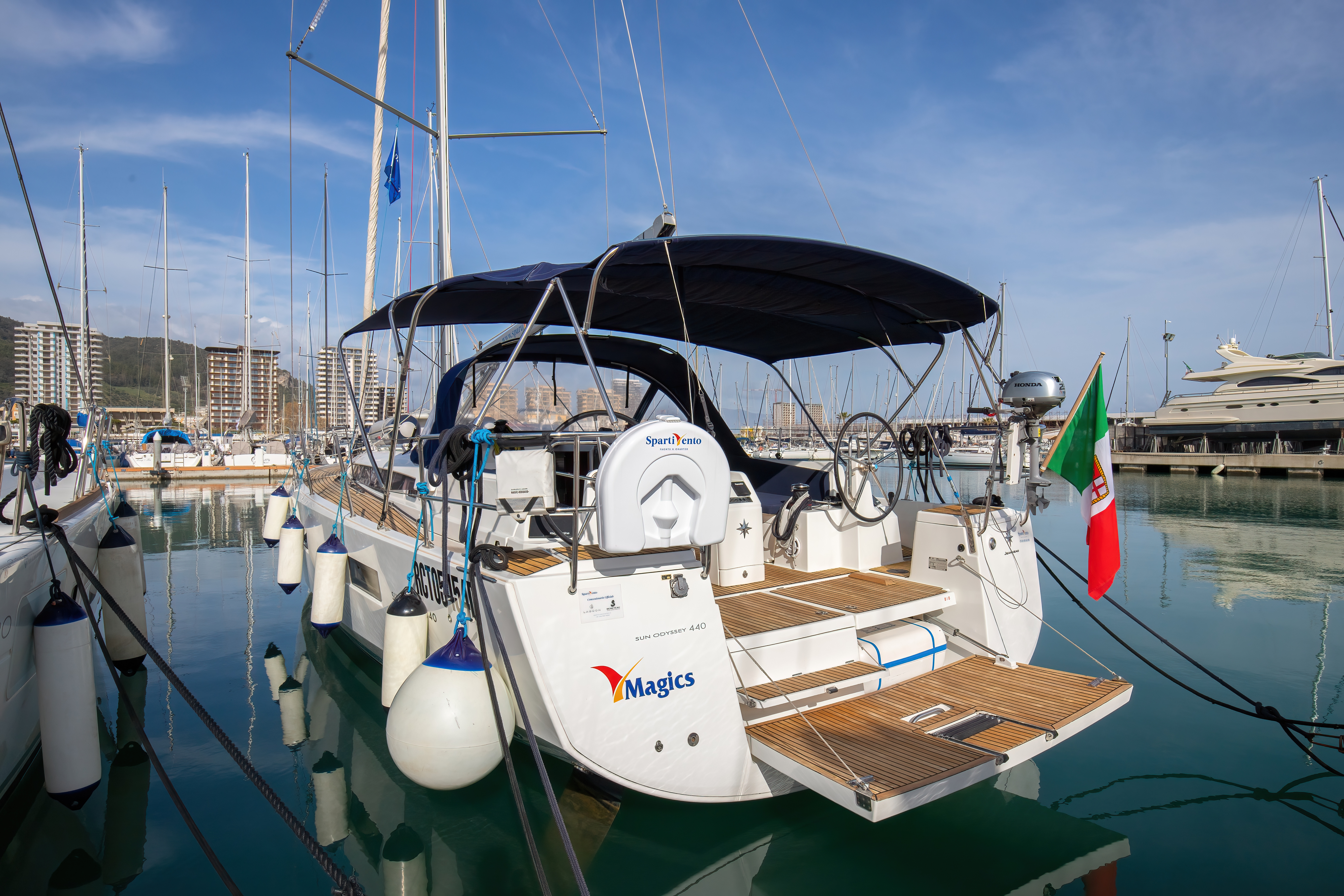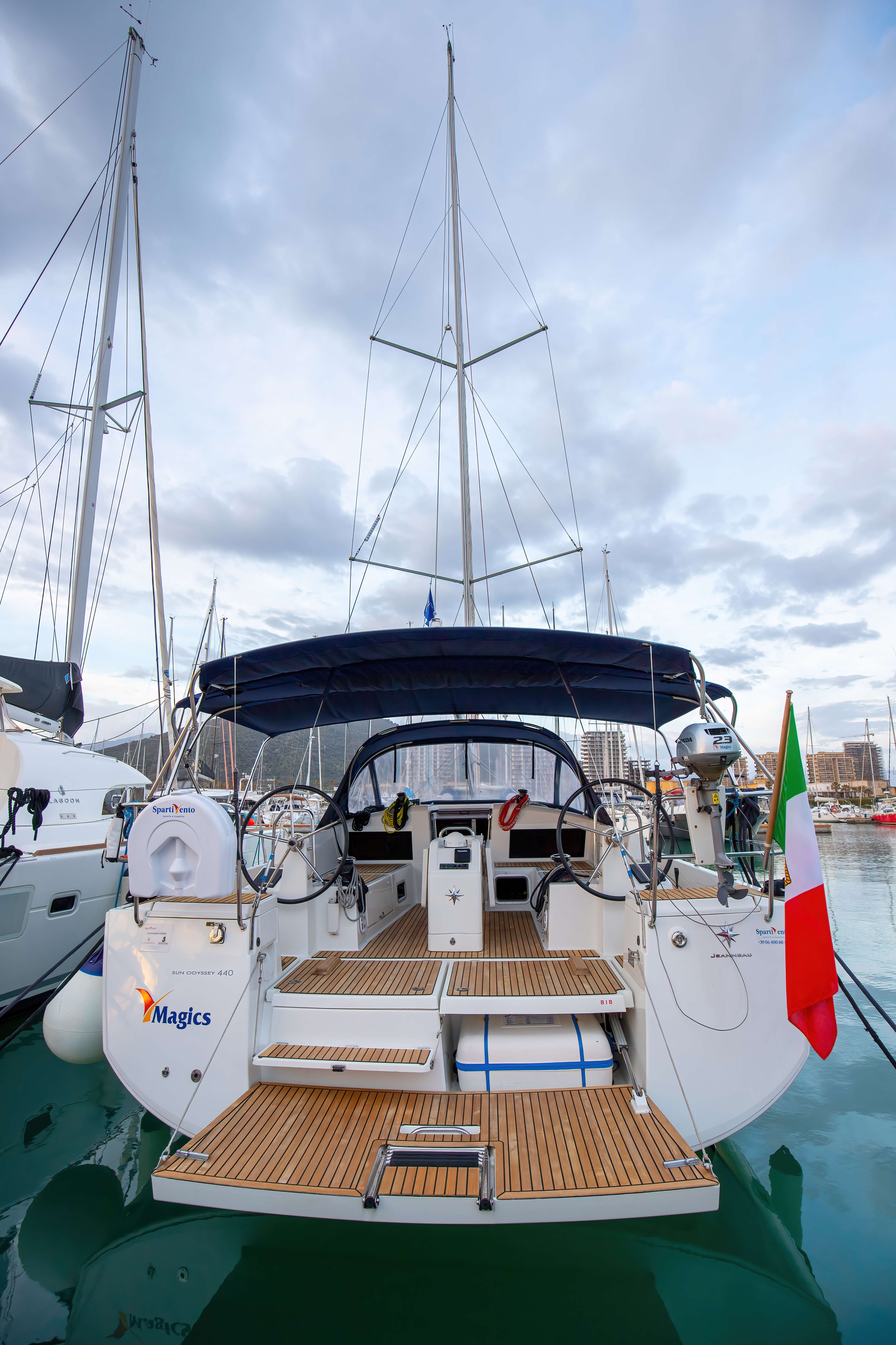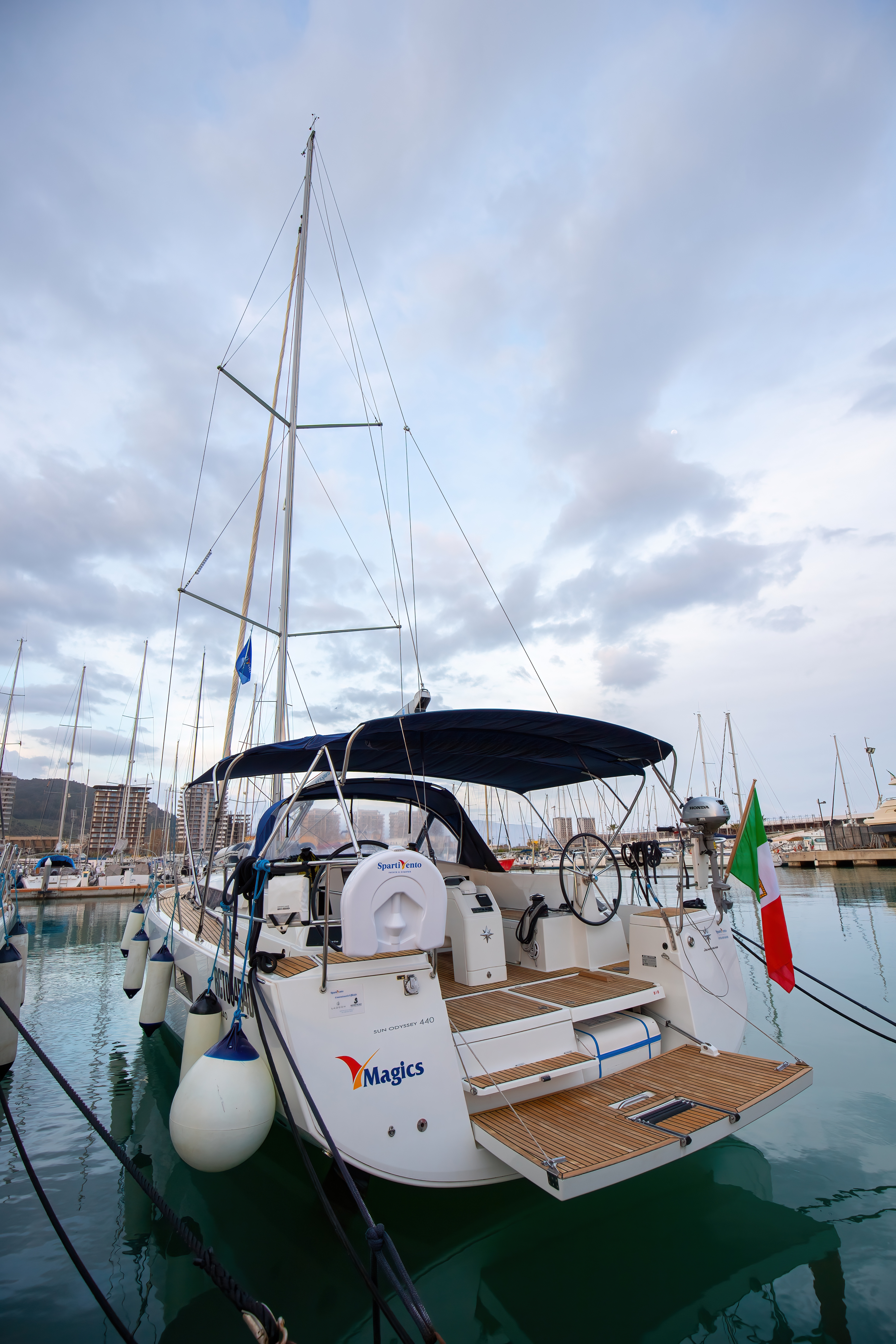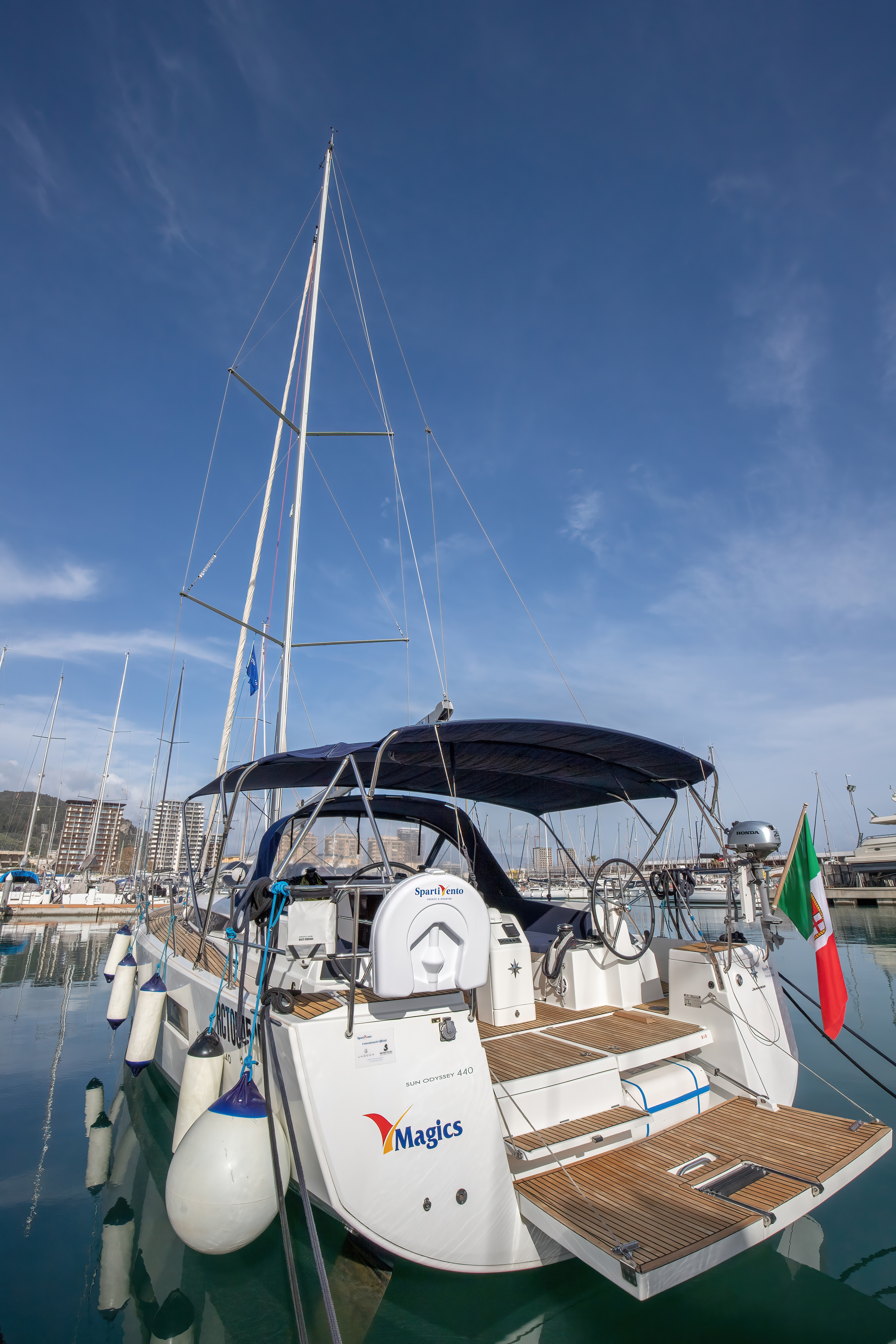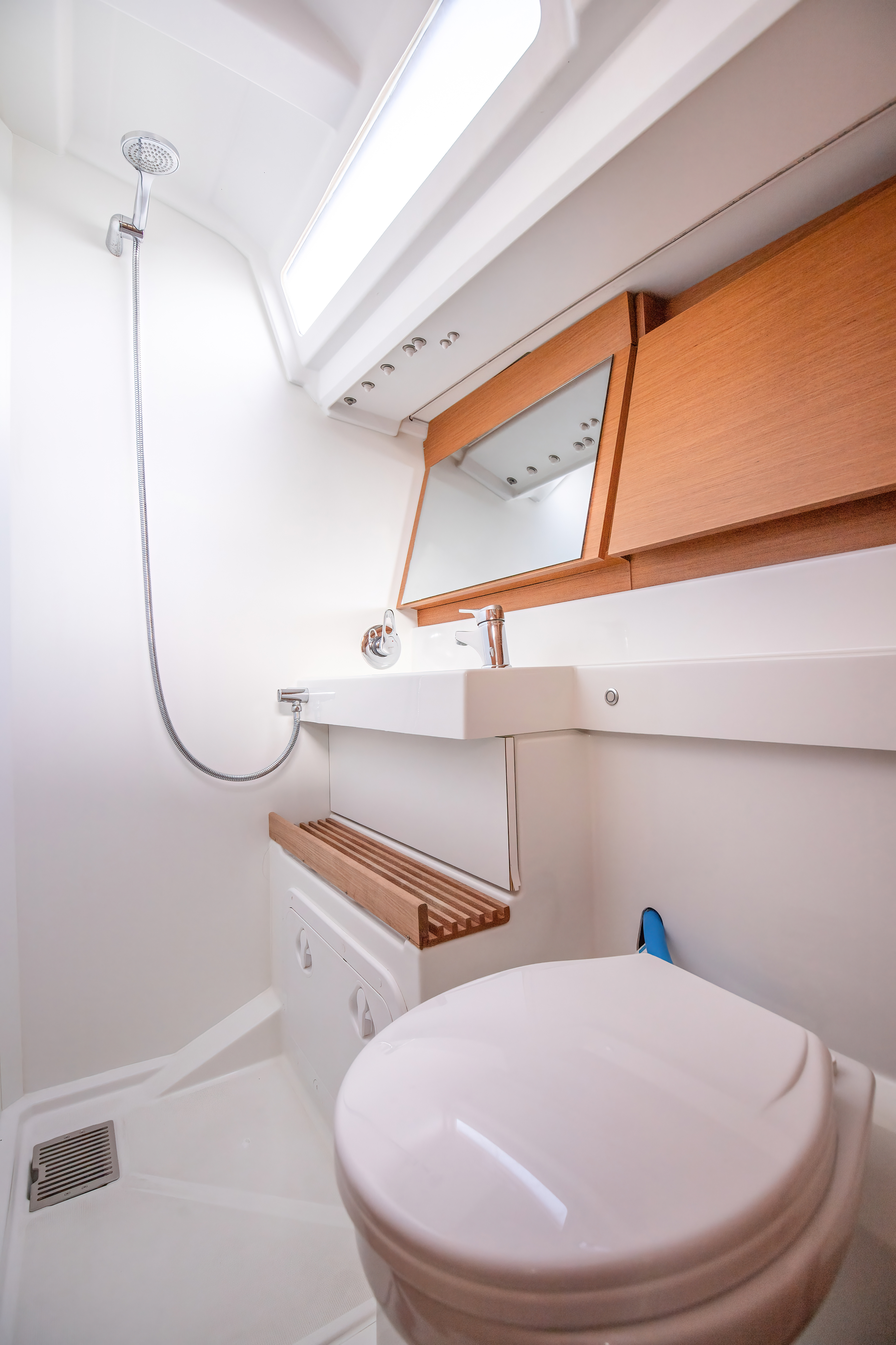 | Outside | Anker mit Kette, Badeplattform, Biminitop, Cockpitdusche, Cockpitlautsprecher, Cockpitpolster, elektr. Ankerwinsch, elektr. Winsch, Gangway, Sprayhood, Teakdeck |