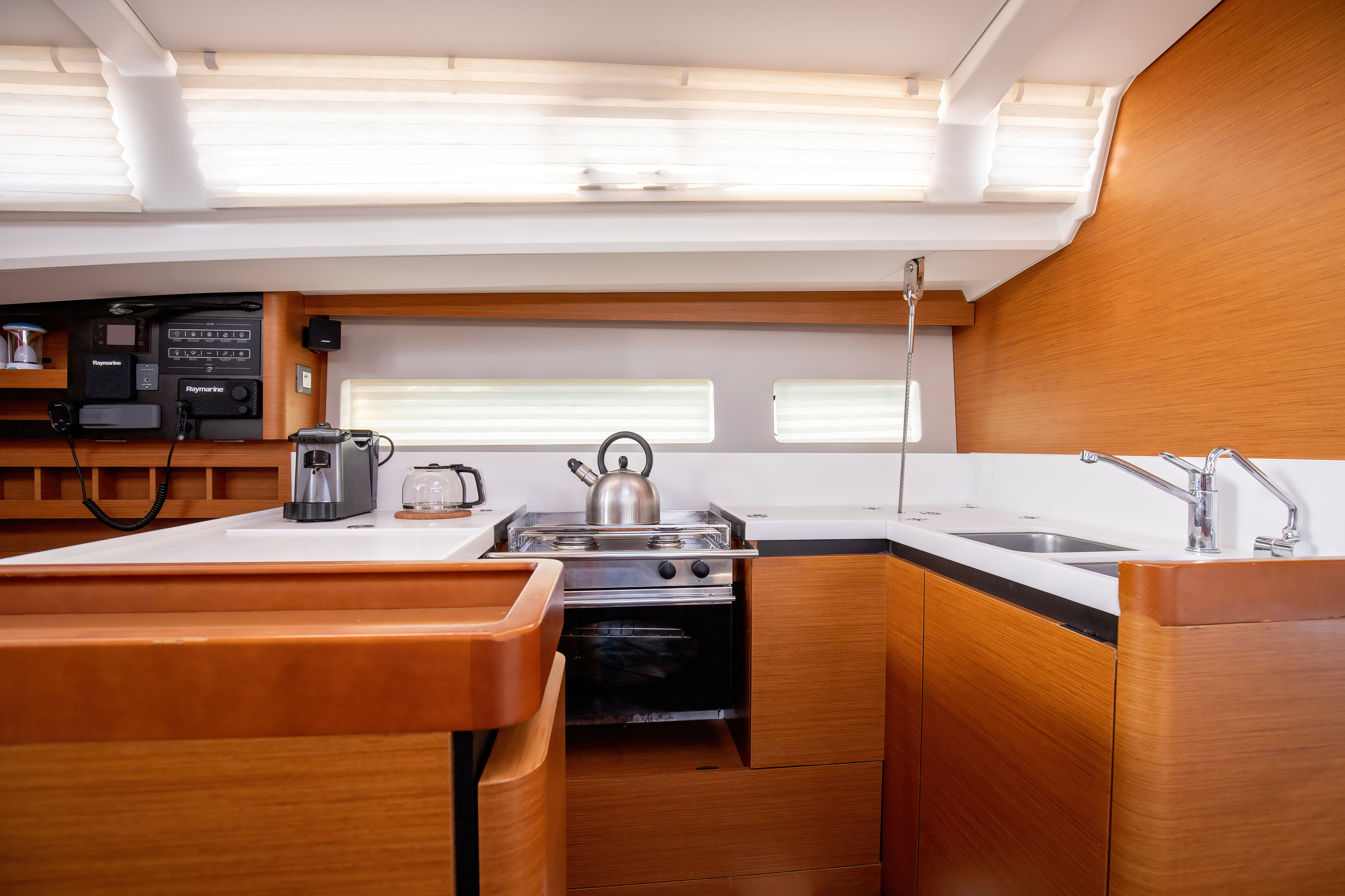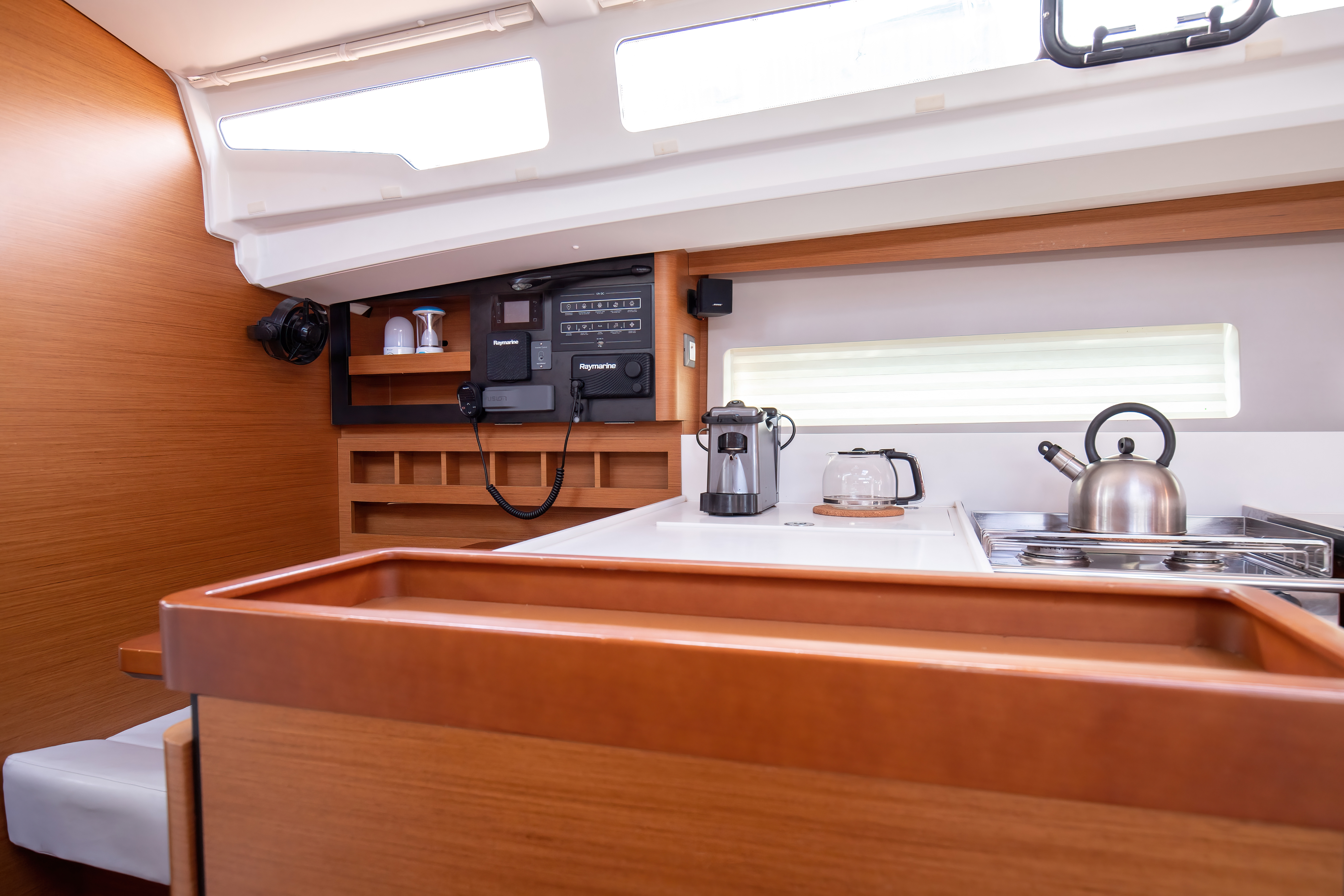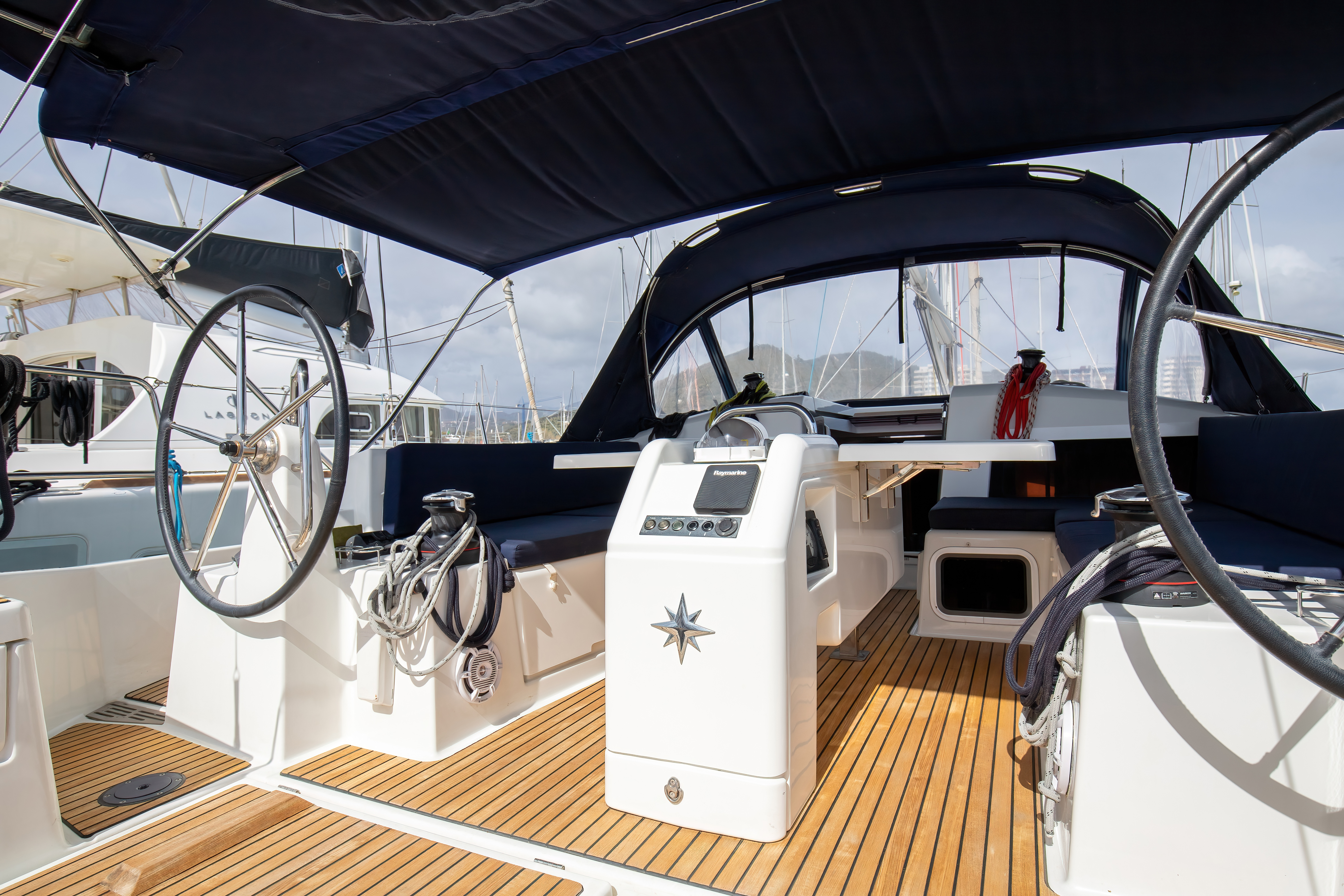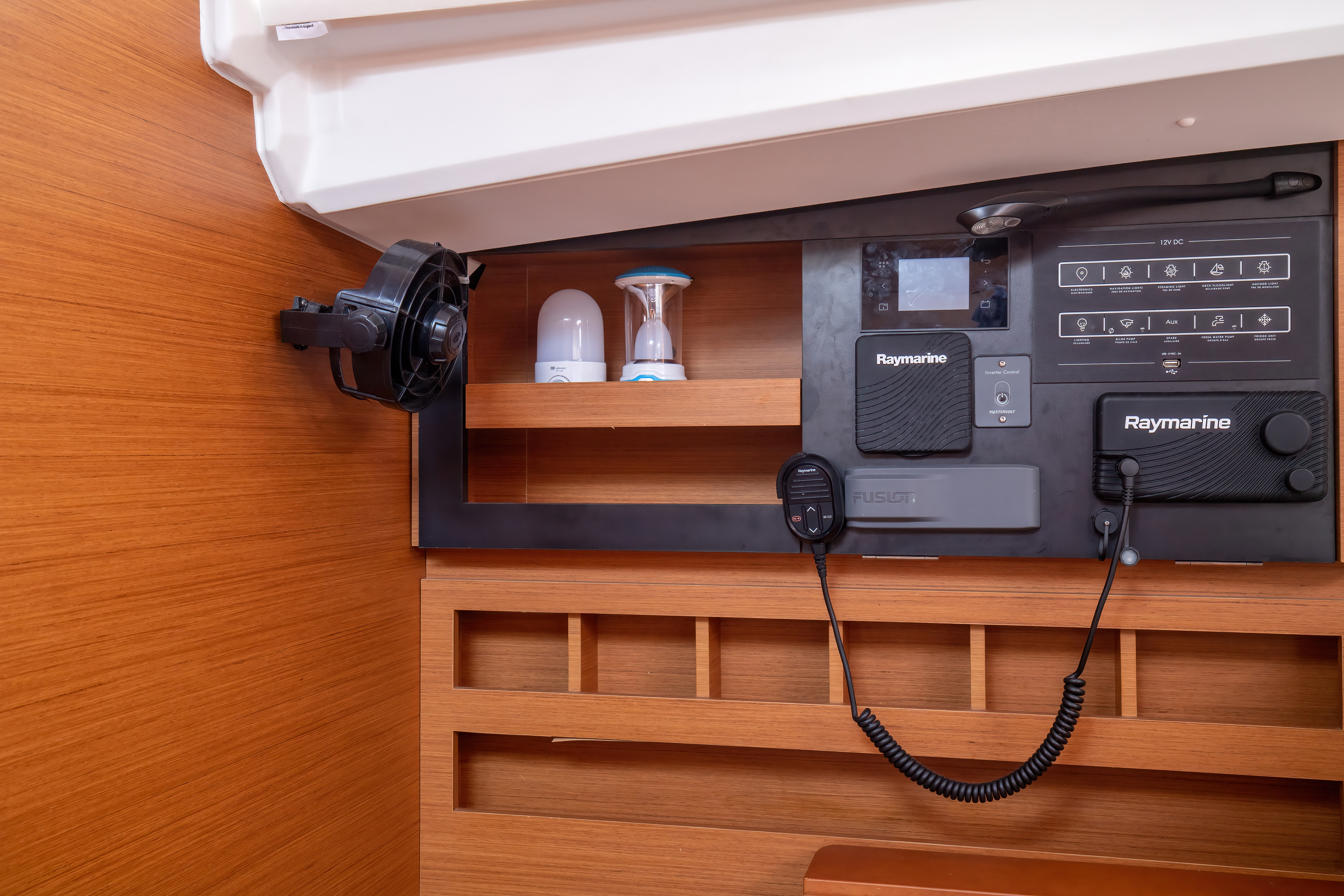 | Safety | Automatikwesten, Autopilot, Bootsmannstuhl, Bordapotheke, Bugstrahlruder, Feuerlöscher, Notpinne, Notsignale, Rettungsinsel, Sicherheitsausrüstung, UKW-Funk, Zweitanker |
