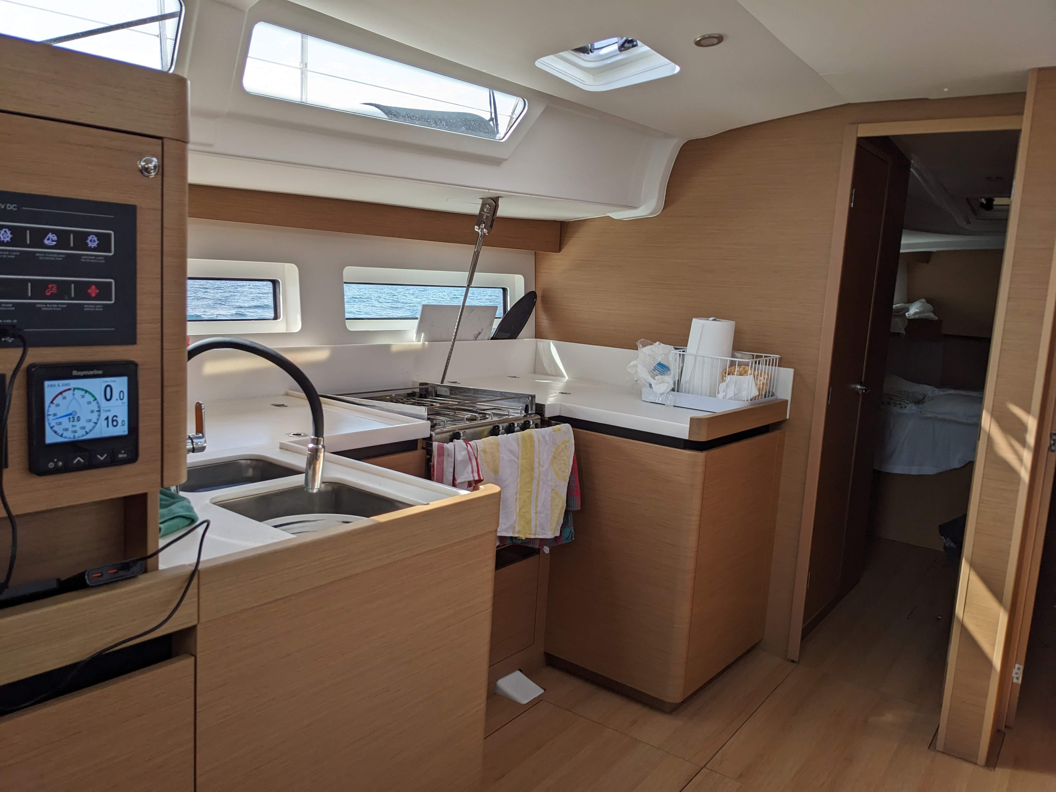 | Outside | Biminitop, Cockpitlautsprecher, elektr. Ankerwinsch, elektr. Winsch, Sprayhood, Teakdeck |