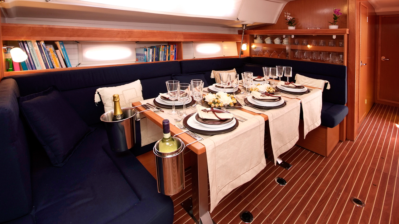 | Outside | Biminitop, Cockpitpolster, Cockpittisch, elektr. Ankerwinsch, Sprayhood, Teakdeck |