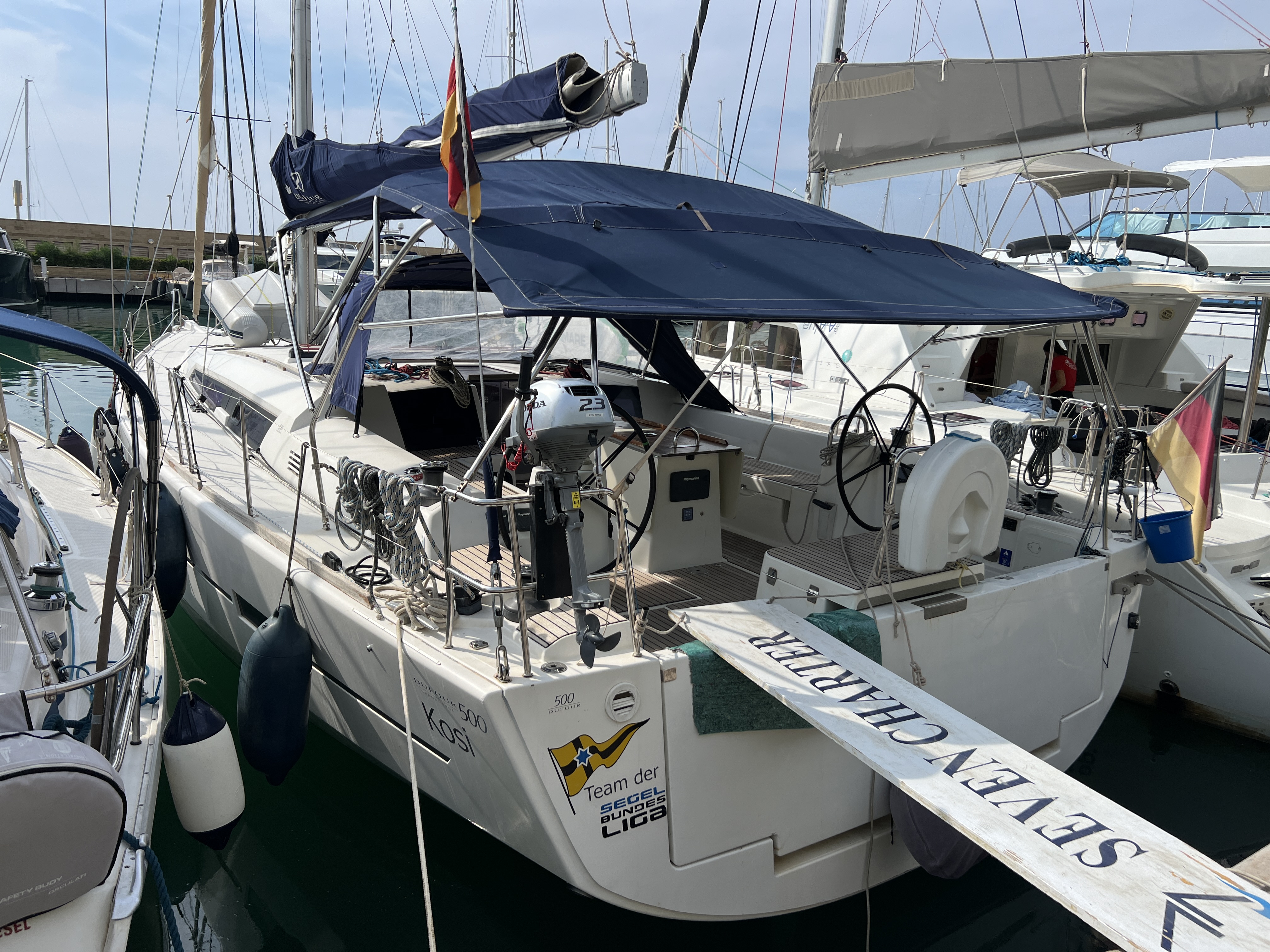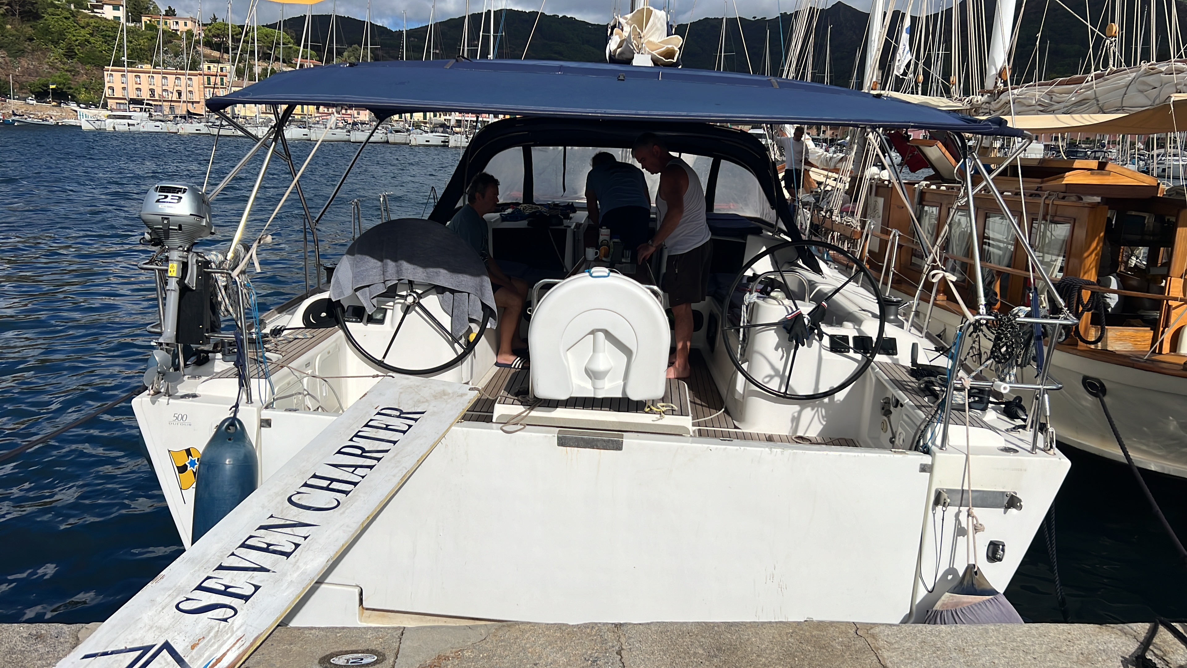 | Navigation | Echolot, GPS mit Kartenplotter im Cockpit, Hafenhandbücher, Navigationsbesteck, Seekarten, Sumlog, Windmesser |