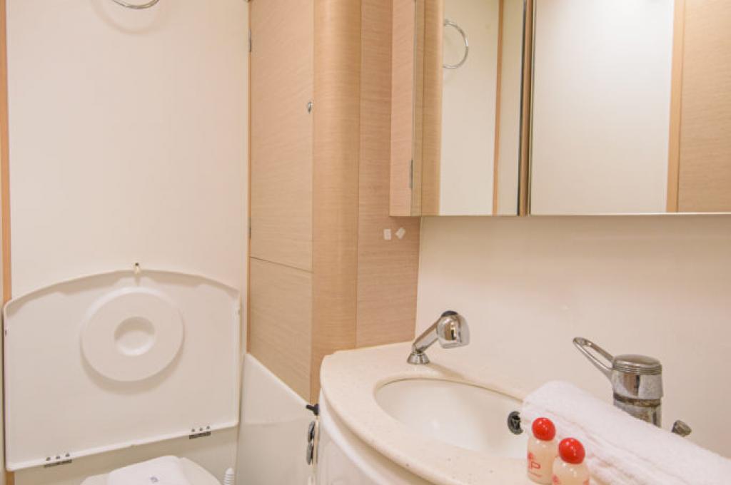 | Inside | 220V Steckdosen, Backofen, Gasherd mit Backofen, Generator, Heizung, Klimaanlage (ohne Landstrombedarf), Kühlschrank, Ladegerät, Landstromkabel, Mikrowelle, Pantryausstattung, Radio, Salontisch absenkbar, Warmwasser, Watermaker, WC (elektr.) |