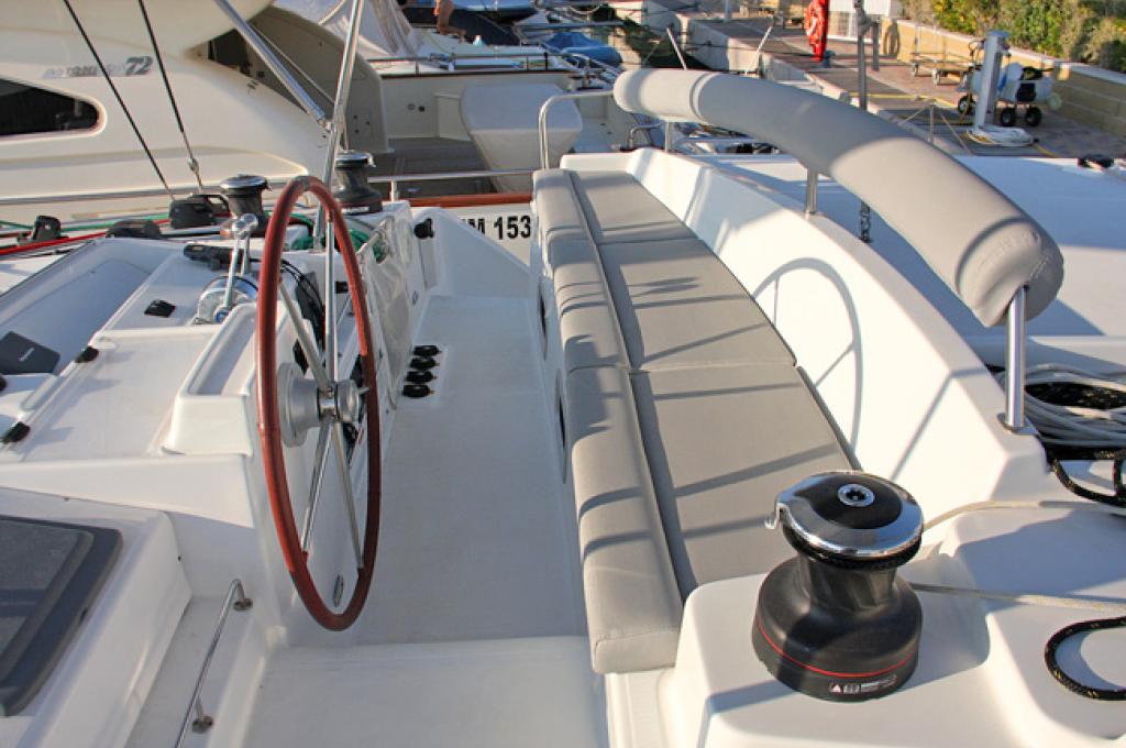 | Outside | 12 V-Anschluss, 220 V-Landanschluss, Anker mit Kette, Badeleiter, Biminitop, Bootshaken, Cockpitdusche, Cockpitlautsprecher, Cockpitpolster, Cockpittisch, elektr. Ankerwinsch, elektr. Winsch, Festmacherleinen, Gangway, Solaranlage, Sprayhood, Winschen |