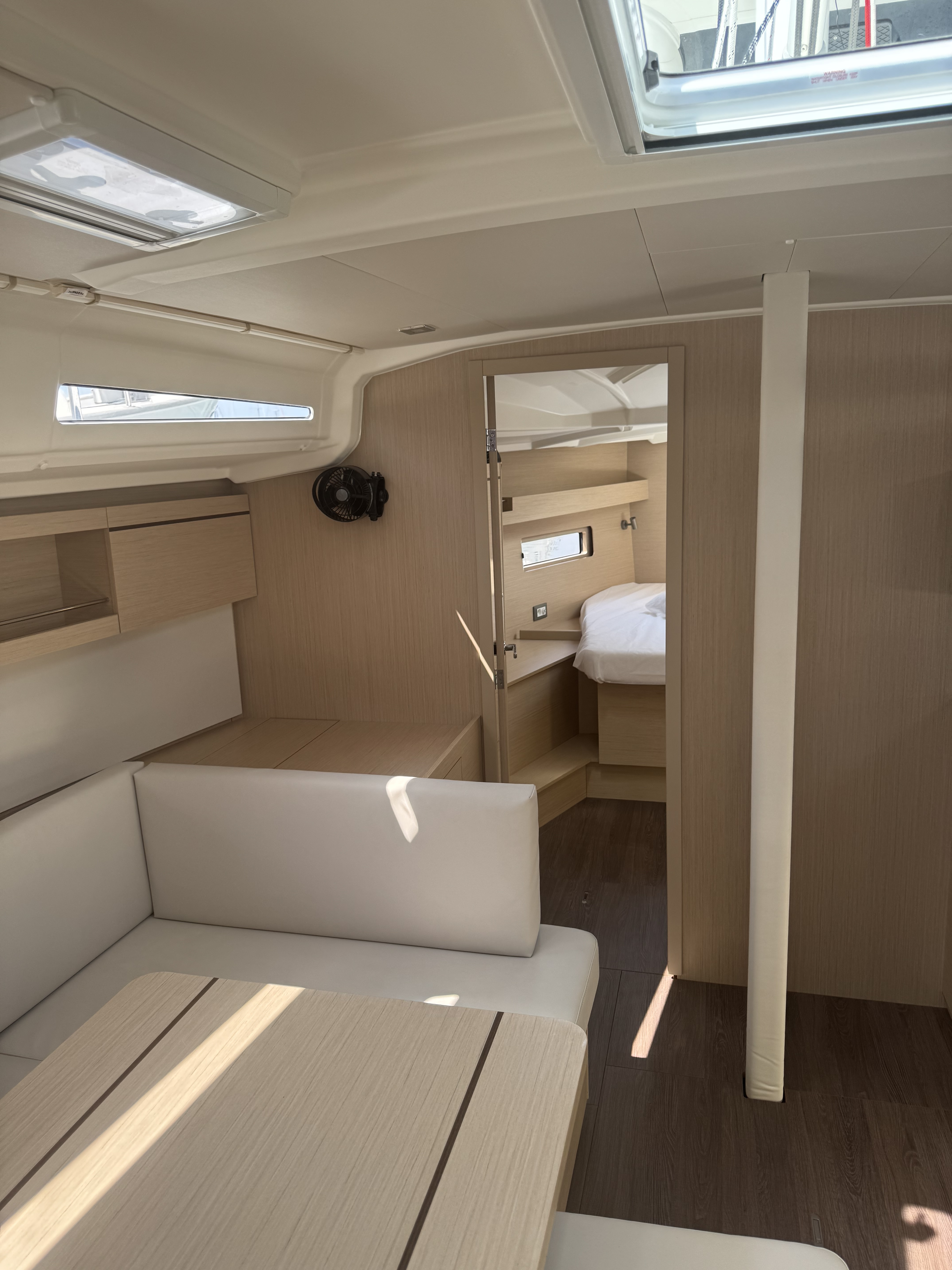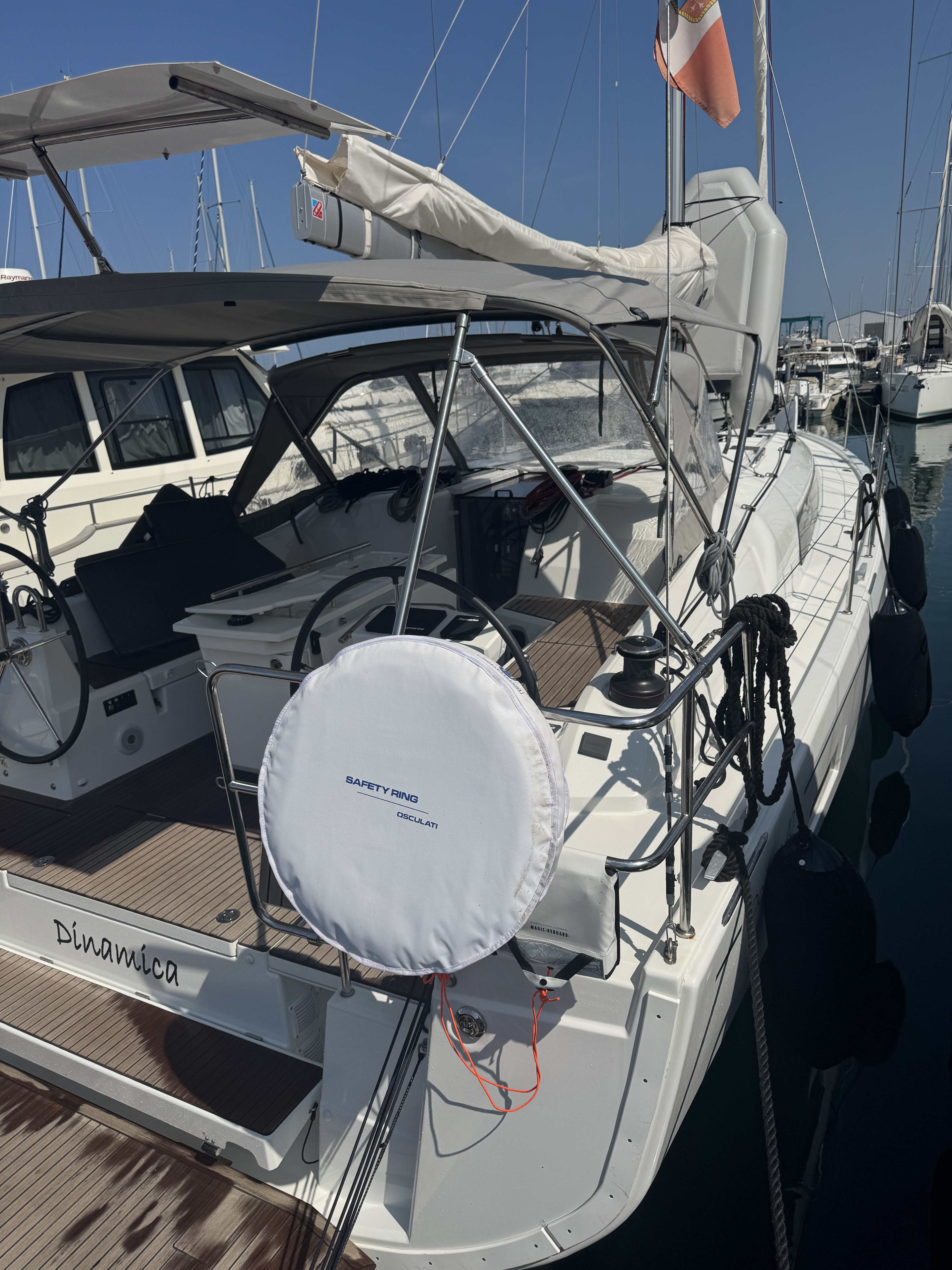 | Outside | Badeleiter, Badeplattform, Biminitop, Cockpitbeleuchtung, Cockpitdusche, Cockpitlautsprecher, Cockpitpolster, Cockpittisch, elektr. Ankerwinsch, Solaranlage, Sprayhood |