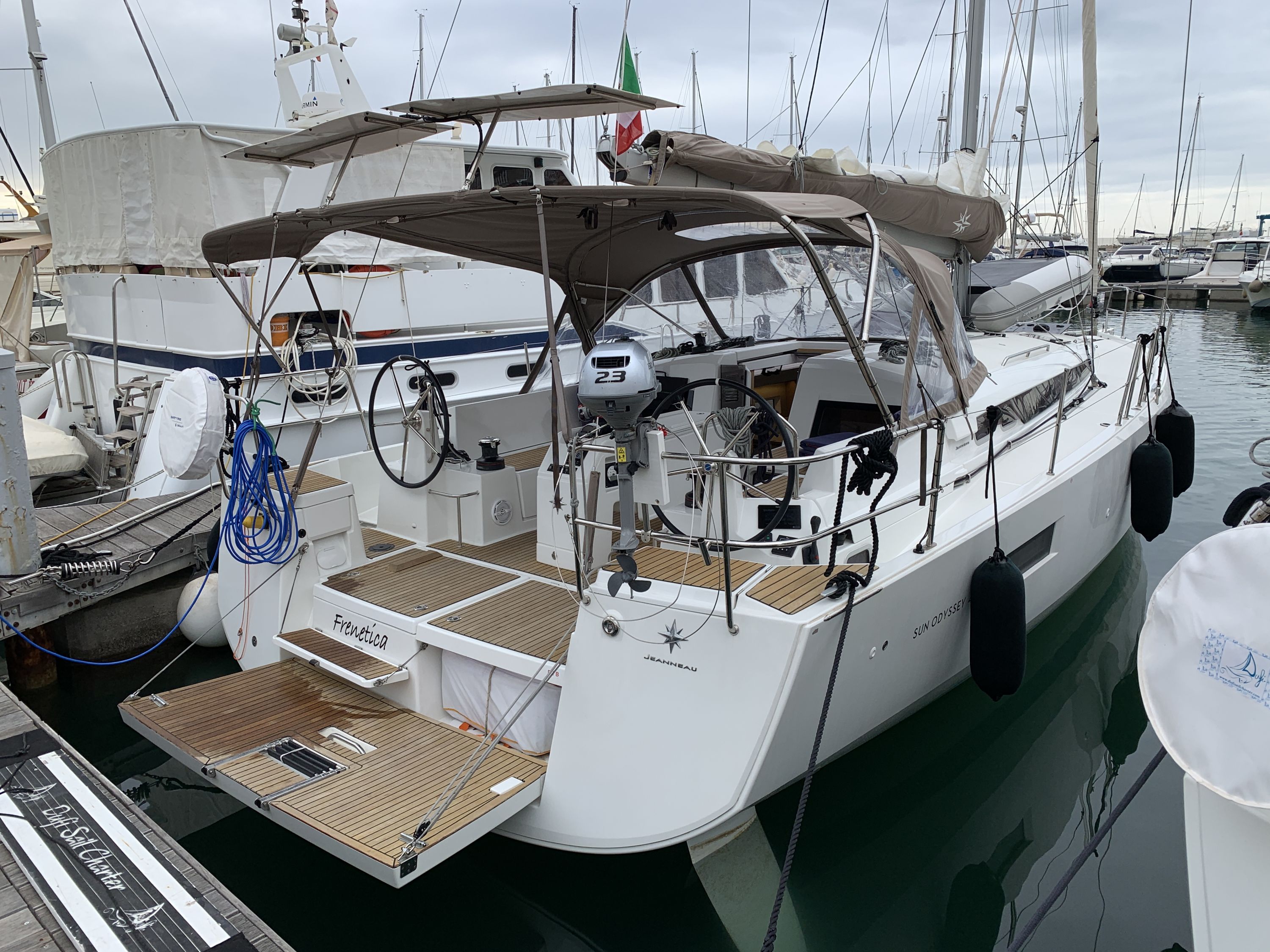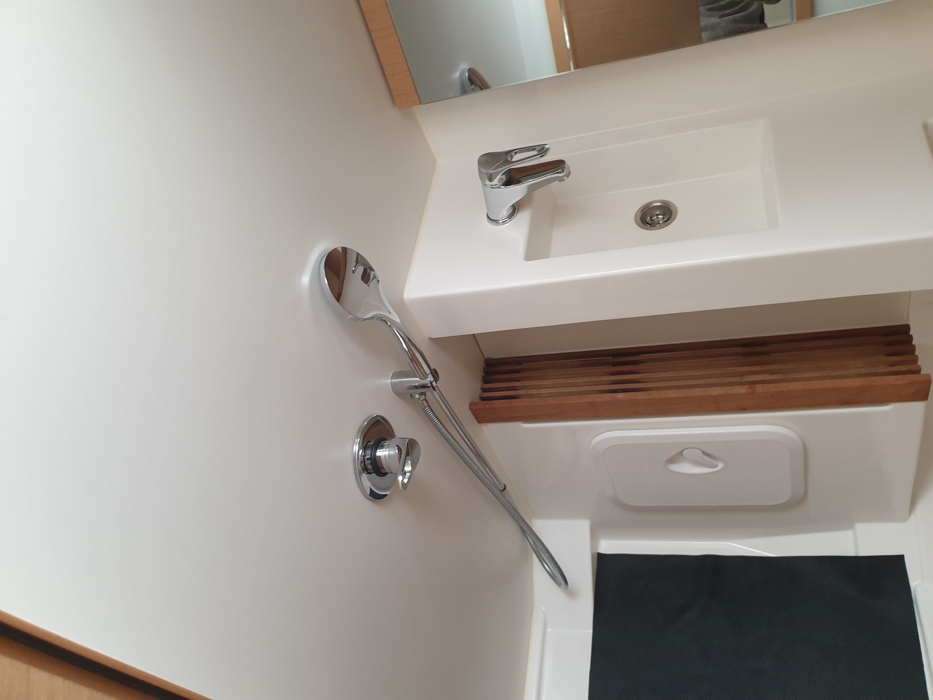 | Outside | Badeleiter, Badeplattform, Biminitop, Cockpitbeleuchtung, Cockpitdusche, Cockpitlautsprecher, Cockpitpolster, Cockpittisch, elektr. Ankerwinsch, Solaranlage, Sprayhood, Teak im Cockpit |