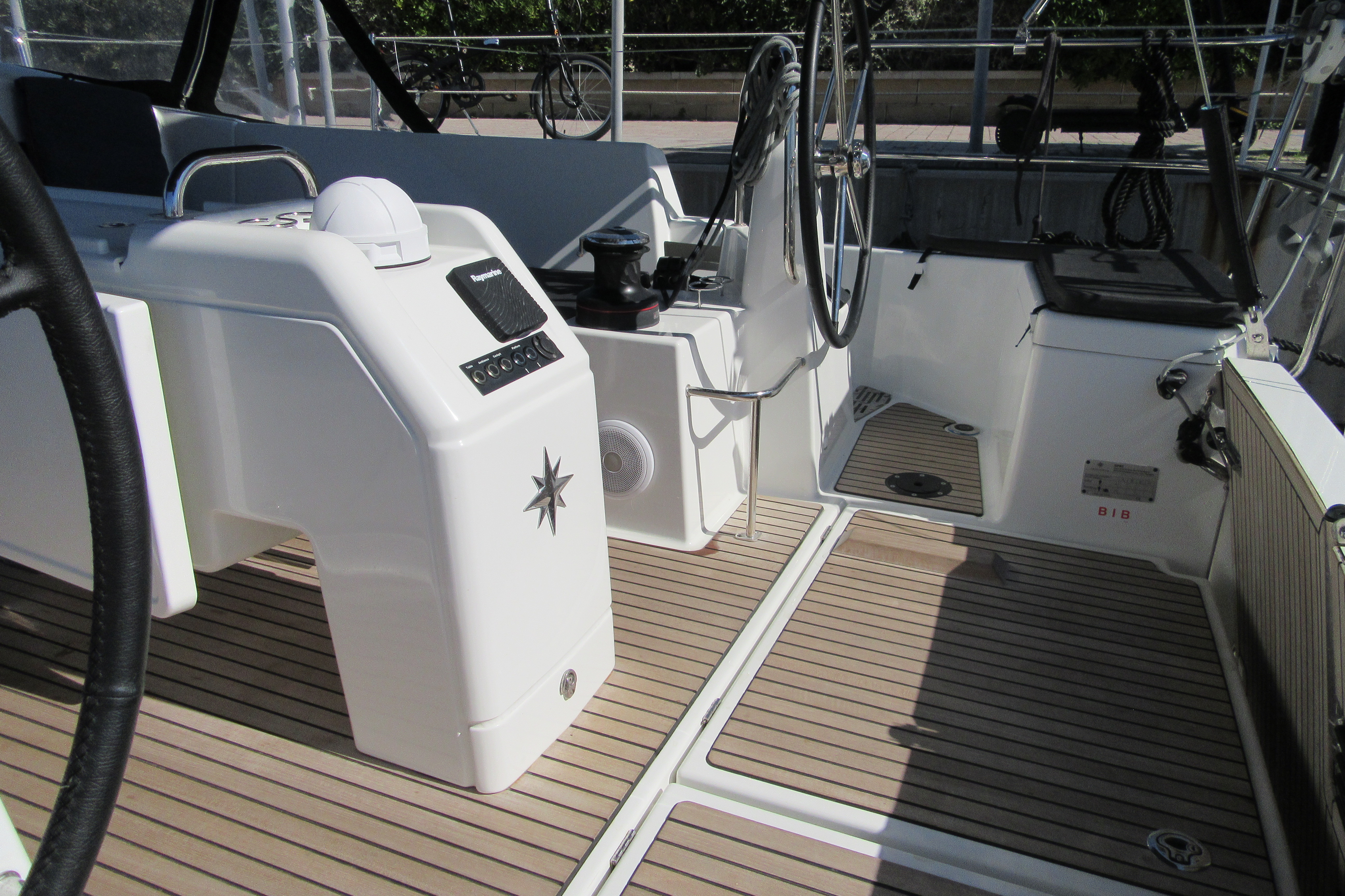 | Outside | Badeleiter, Badeplattform, Biminitop, Cockpitbeleuchtung, Cockpitdusche, Cockpitlautsprecher, Cockpitpolster, Cockpittisch, elektr. Ankerwinsch, Solaranlage, Sprayhood, Teak im Cockpit |
