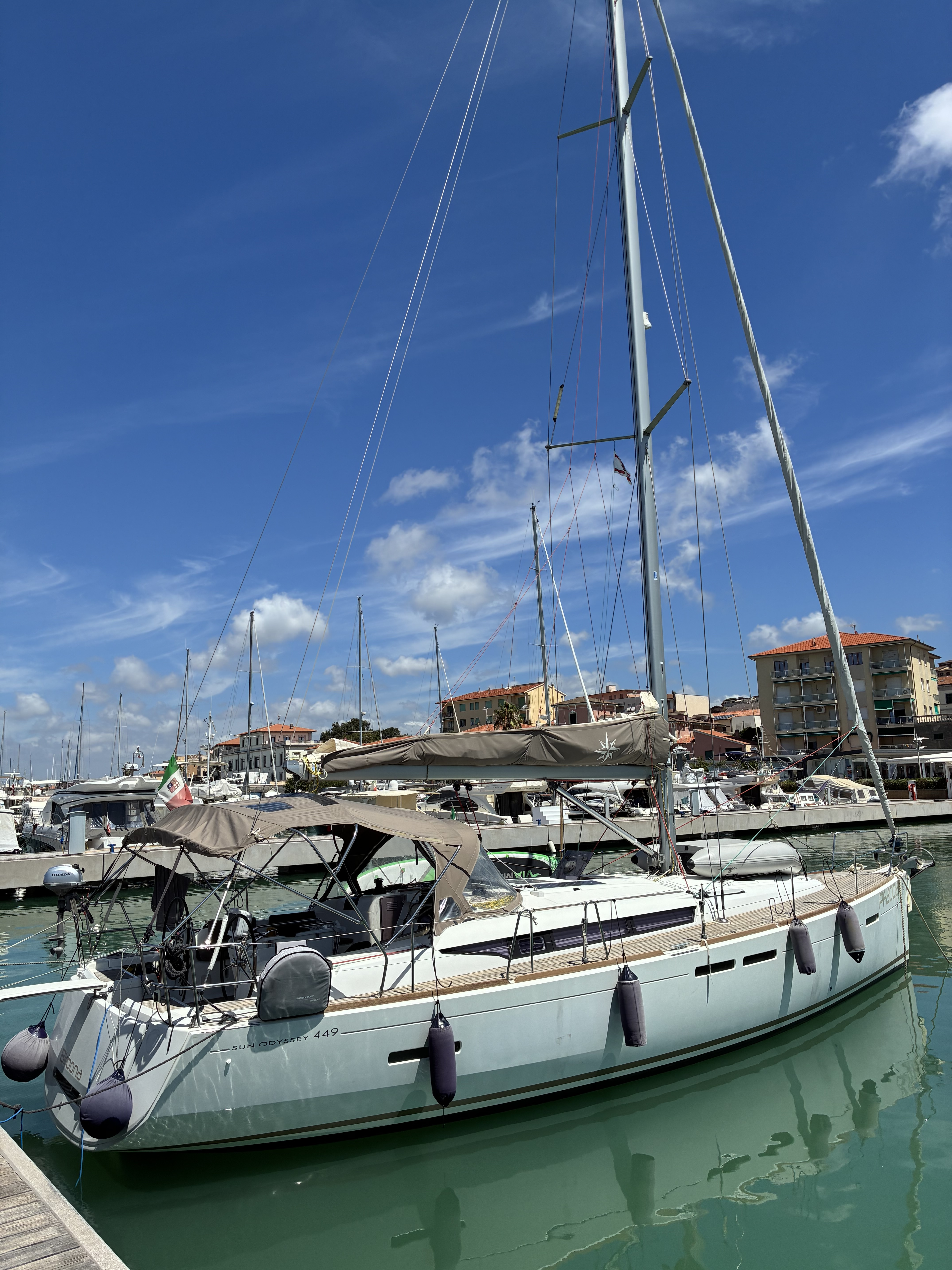 | Safety | AIS Empfänger, Automatikwesten, Autopilot, Bootsmannstuhl, Bordapotheke, Bordwerkzeug, Bugstrahlruder, elektr. Bilgepumpe, Feuerlöscher, Flaggen, GMDSS, Leuchtboje, Lifebelts, Navigationslichter, Notpinne, Notsignale, Rettungsbojenlicht, Rettungsinsel, Rettungskragen, Sicherheitsausrüstung, Sicherheitsgurt, Taschenlampe, UKW-Funk, Zweitanker |