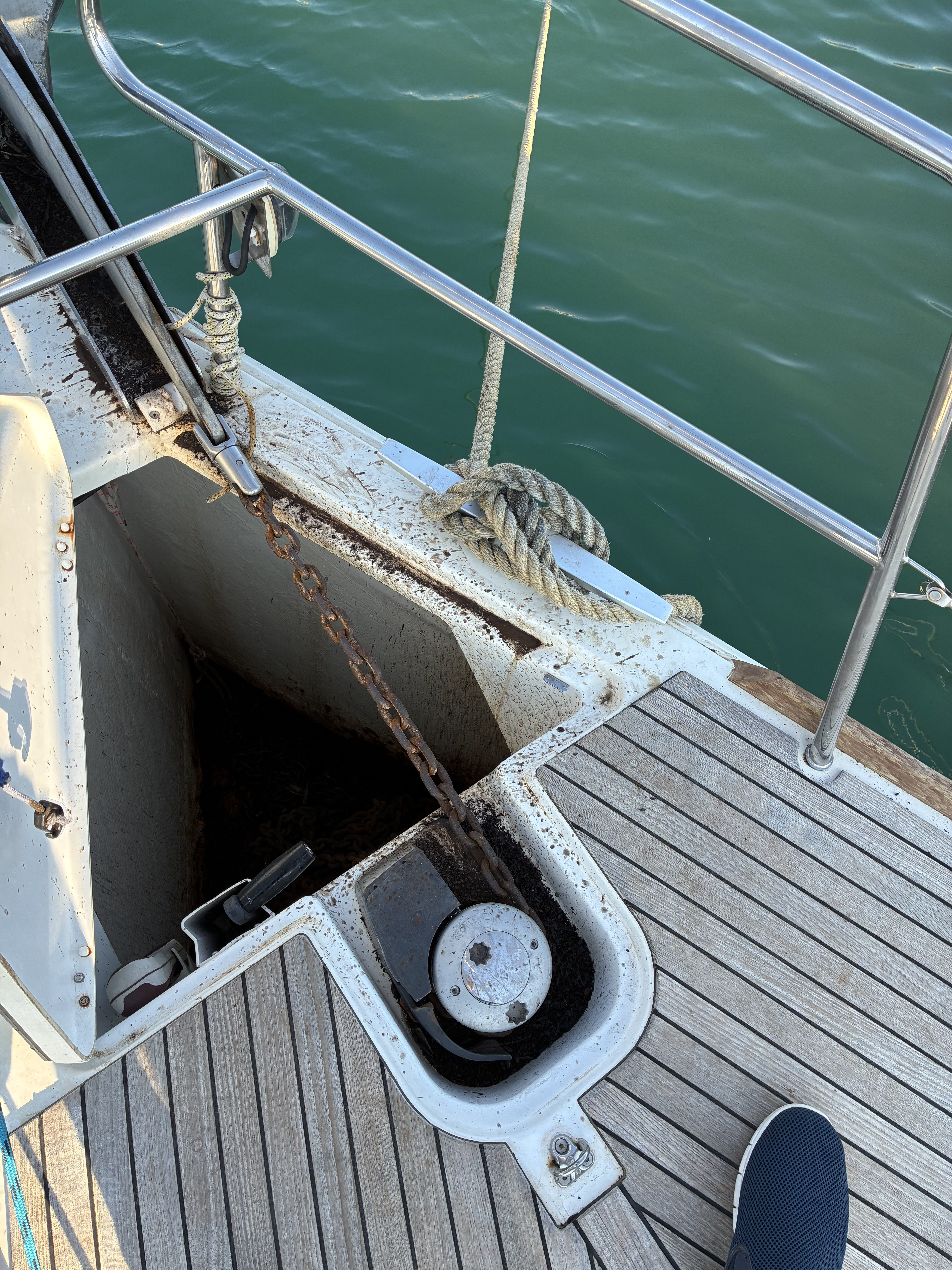 | Navigation | Barometer, Echolot, elektr. Seekarten, Fernglas, GPS mit Kartenplotter im Cockpit, Hafenhandbücher, Handpeilkompass, Kompass, Navigationsbesteck, Seekarten, Sumlog, Windmesser |