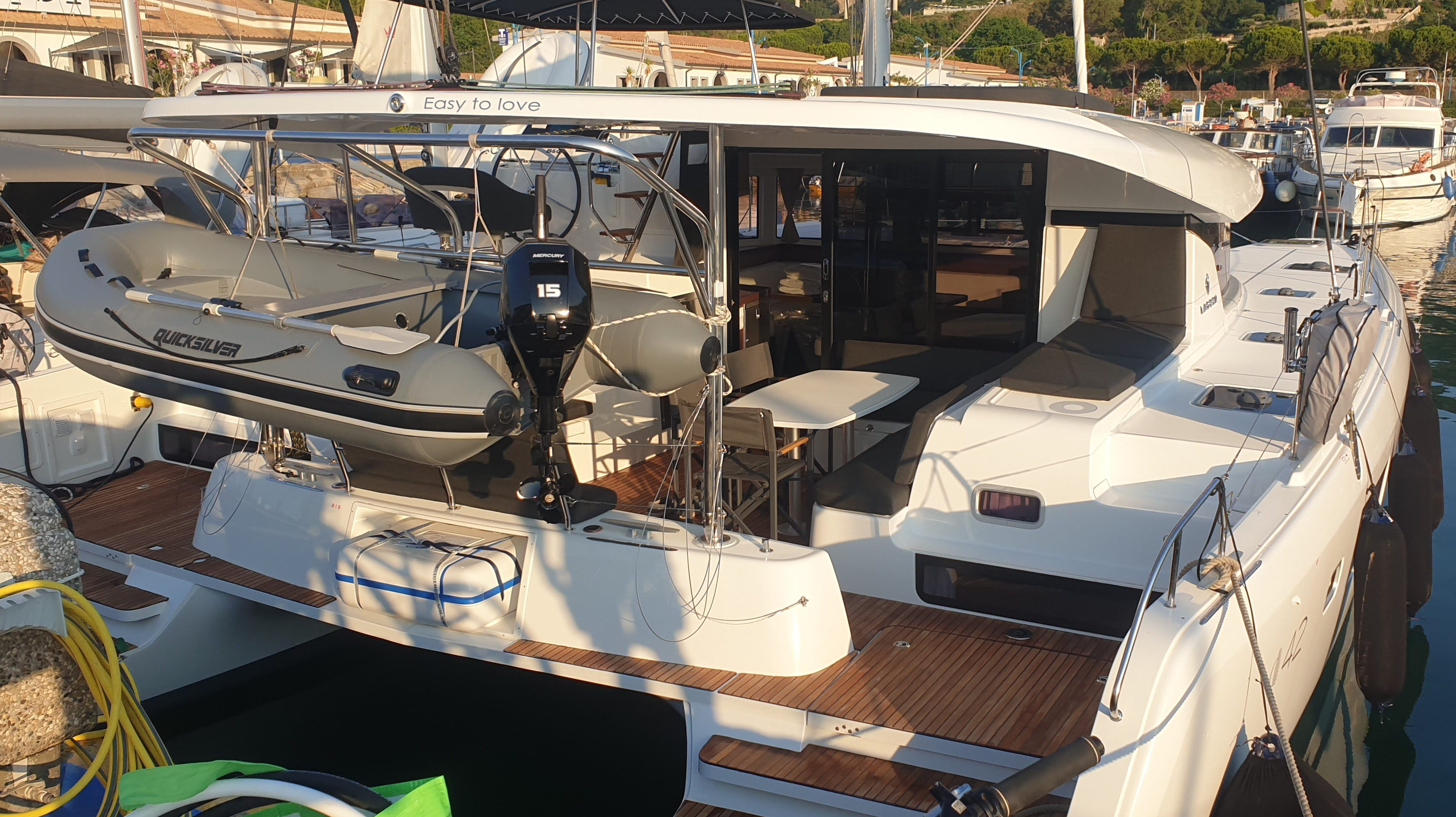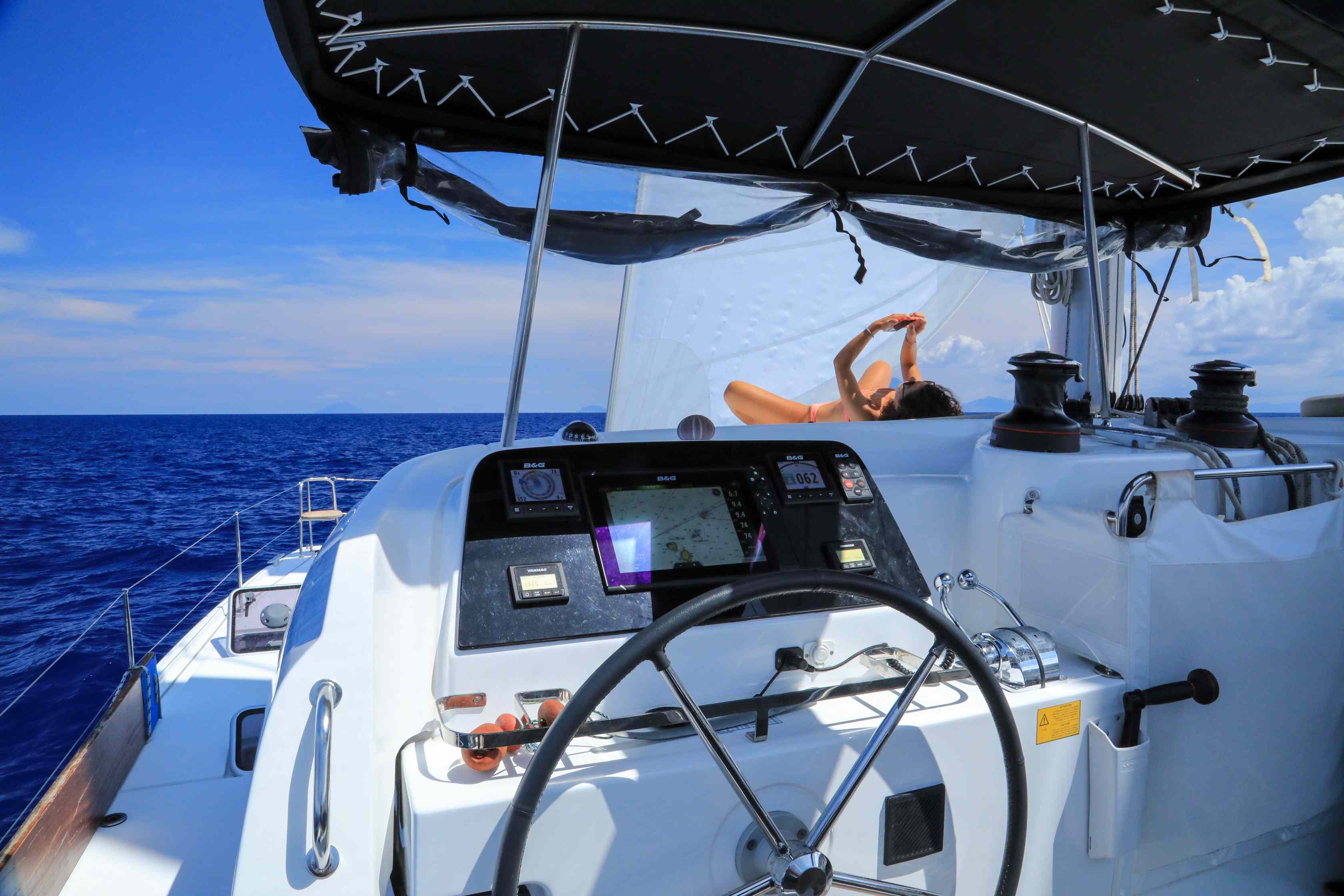 | Outside | Cockpitlautsprecher, Cockpitpolster, Deckpolster, elektr. Winsch, Solaranlage, Teak im Cockpit |