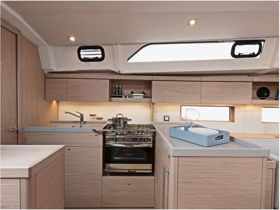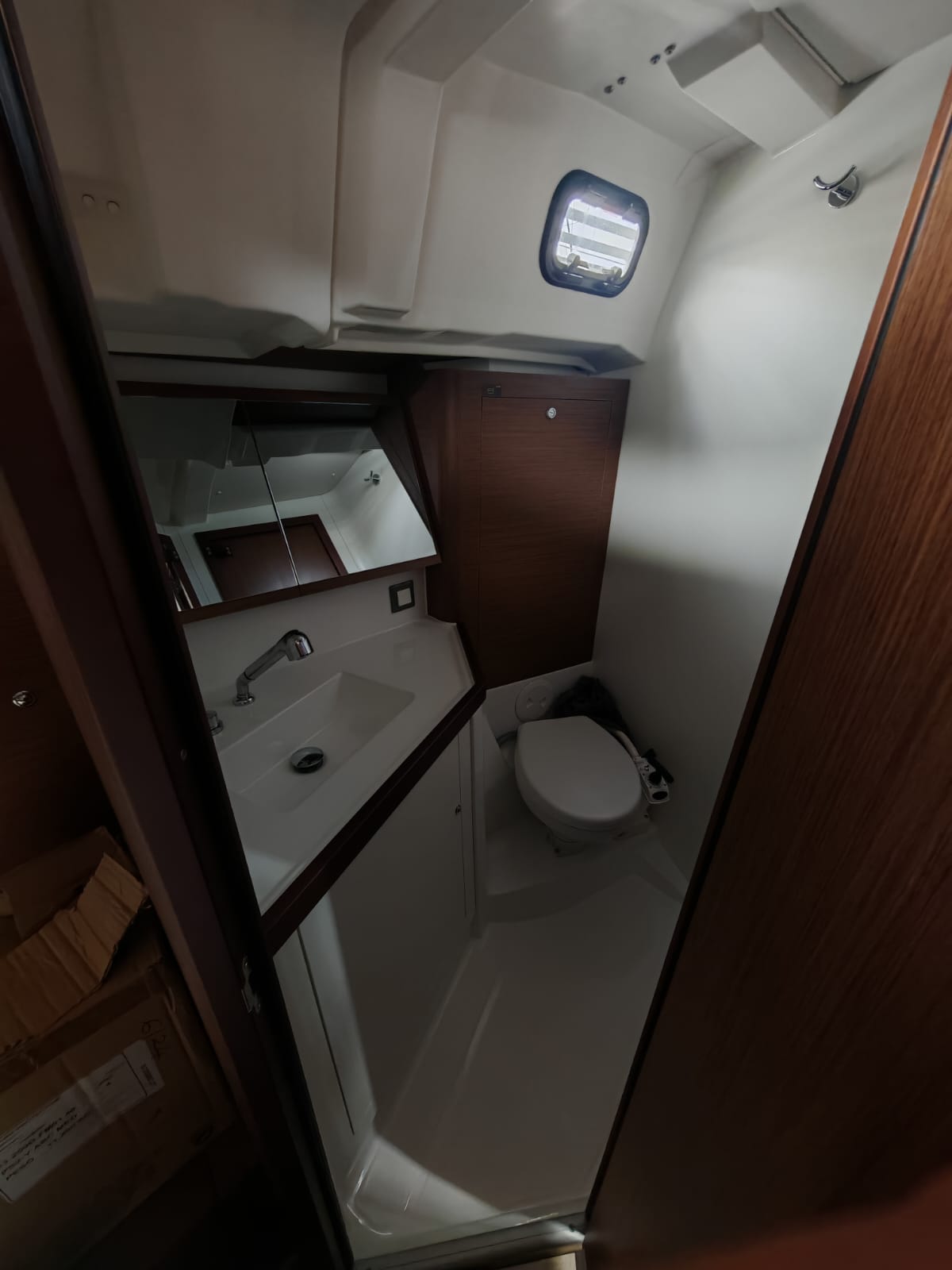 | Outside | 220 V-Landanschluss, Anker mit Kette, Badeplattform, Biminitop, Cockpitdusche, elektr. Ankerwinsch, Windex |