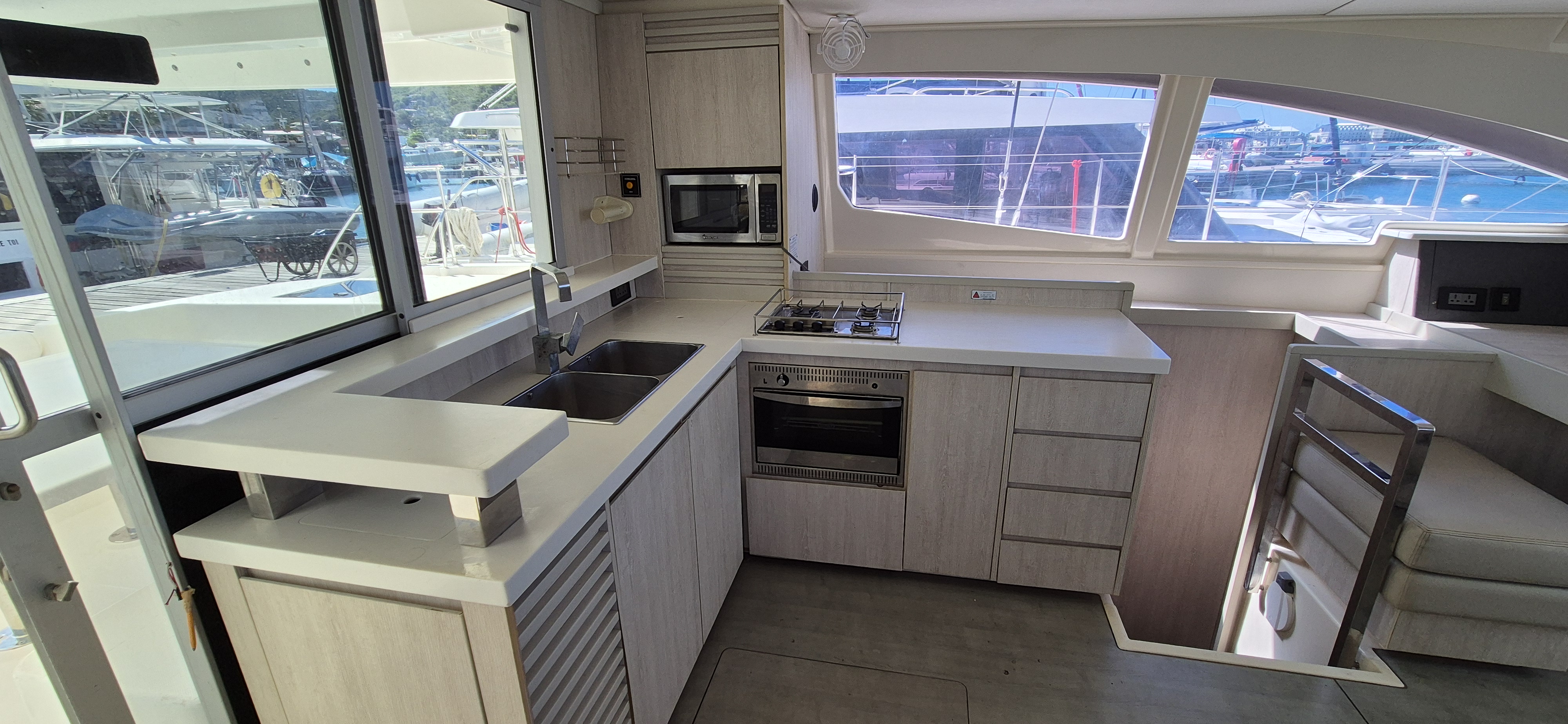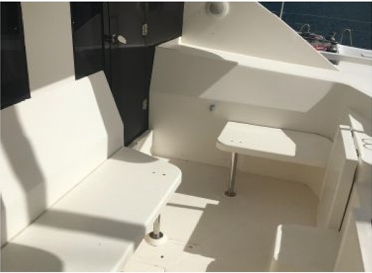 | Outside | 220 V-Landanschluss, Biminitop, Cockpitdusche, Cockpittisch, elektr. Ankerwinsch, Solaranlage |