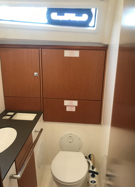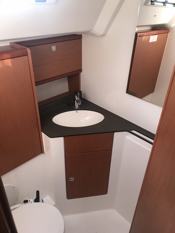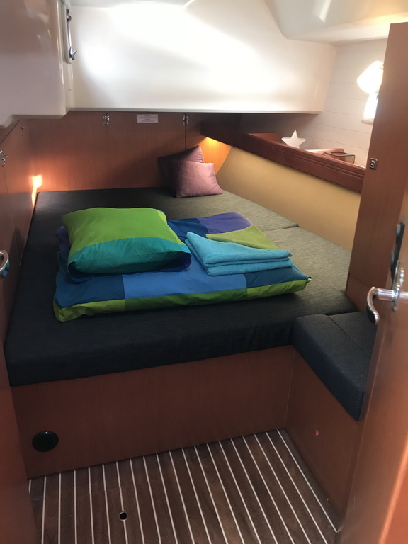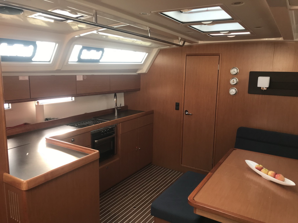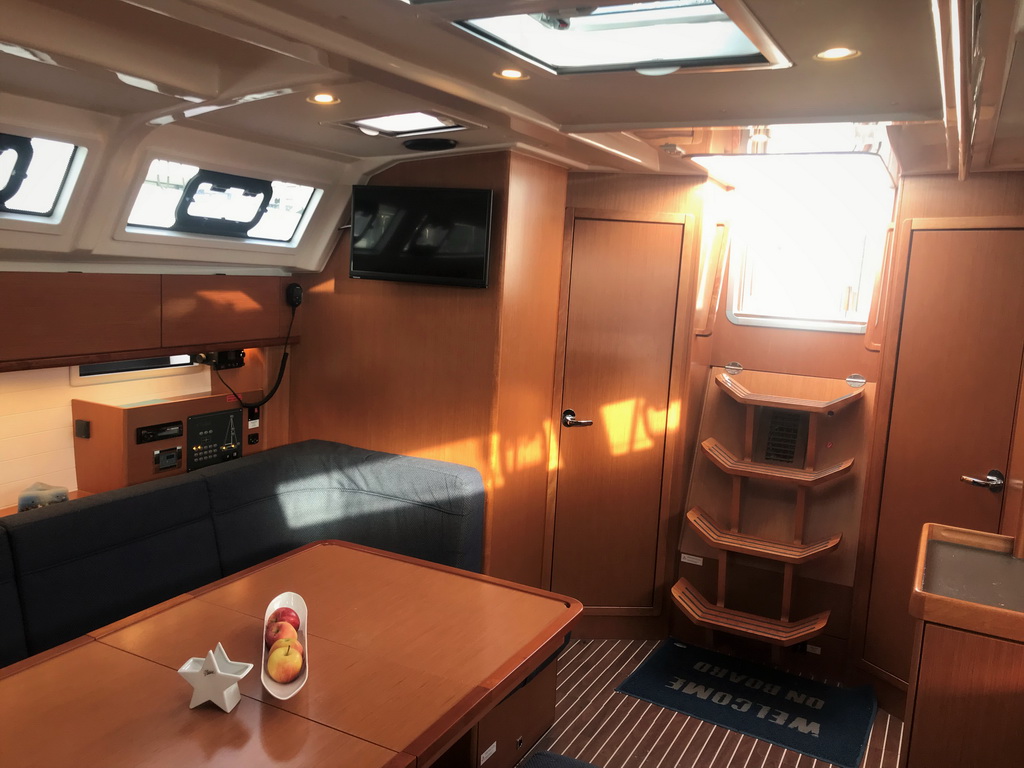 Inside 12V/220V-Steckdosen, Backofen, Borduhr, Flexschott, Gasherd, Heizung, Klimaanlage (Landstrom), Kühlschrank, Ladegerät, Landstromkabel, Luftpumpe für Beiboot, Pantryausstattung, Radio mit MP3 , TV + DVD, Warmwasser