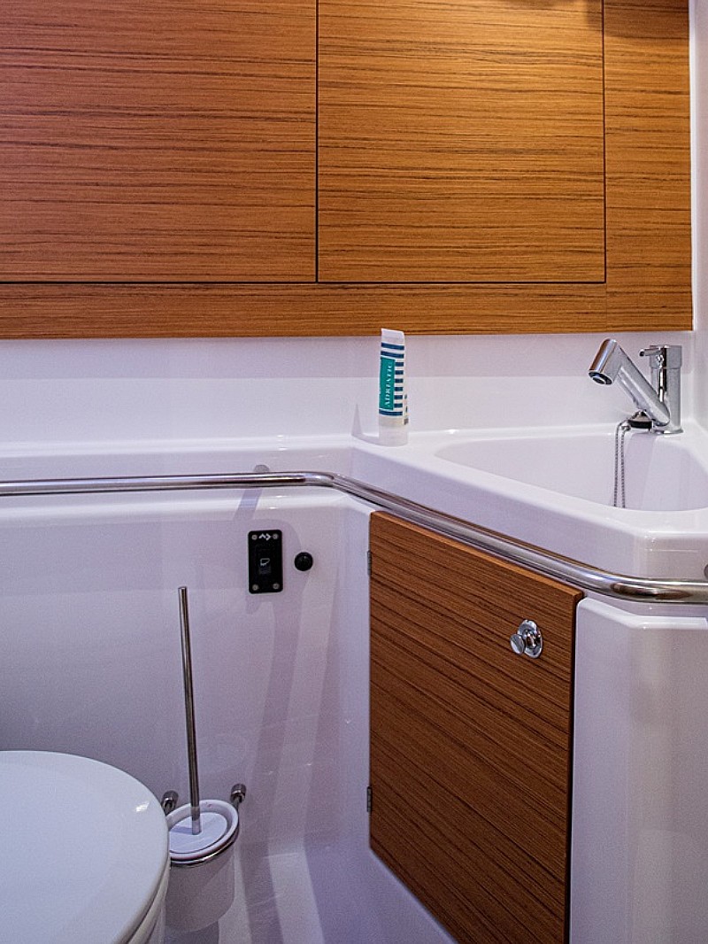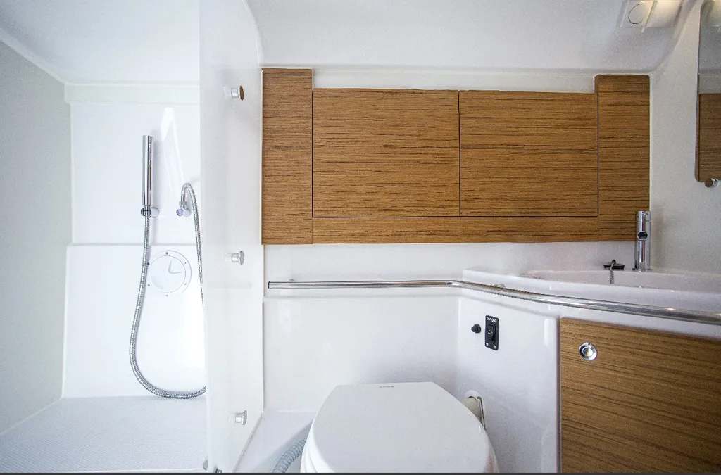 | Outside | Anker mit Kette, Badeplattform, Biminitop, Cockpitdusche, Cockpitlautsprecher, elektr. Ankerwinsch, Solaranlage, Sprayhood |