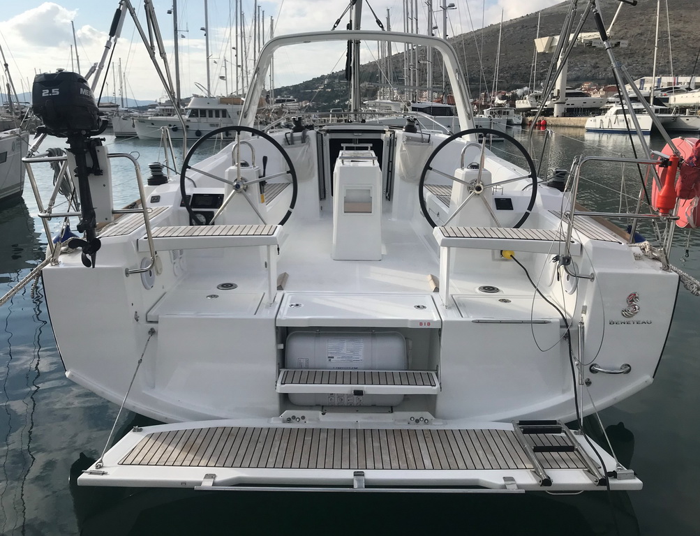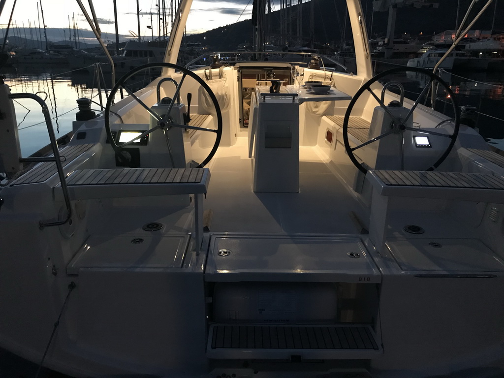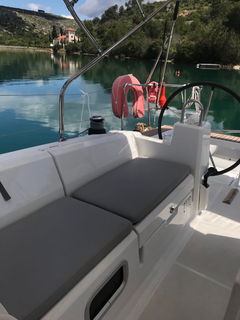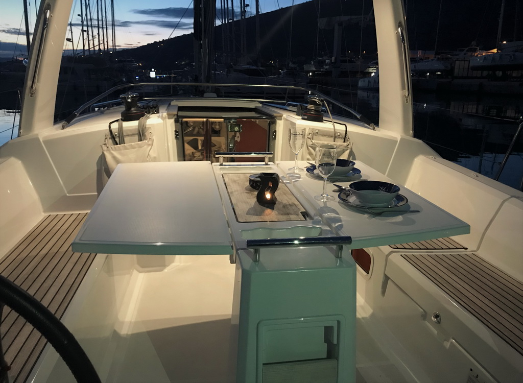 | Outside | Badeleiter, Badeplattform, Biminitop, Cockpitdusche, Cockpitlautsprecher, Cockpitpolster, Cockpittisch, Deckpolster, elektr. Ankerwinsch, Fender, Festmacherleinen, Gangway, Kugelfender, Kunststoff-Eimer (Pütz), Sprayhood, Winschen |