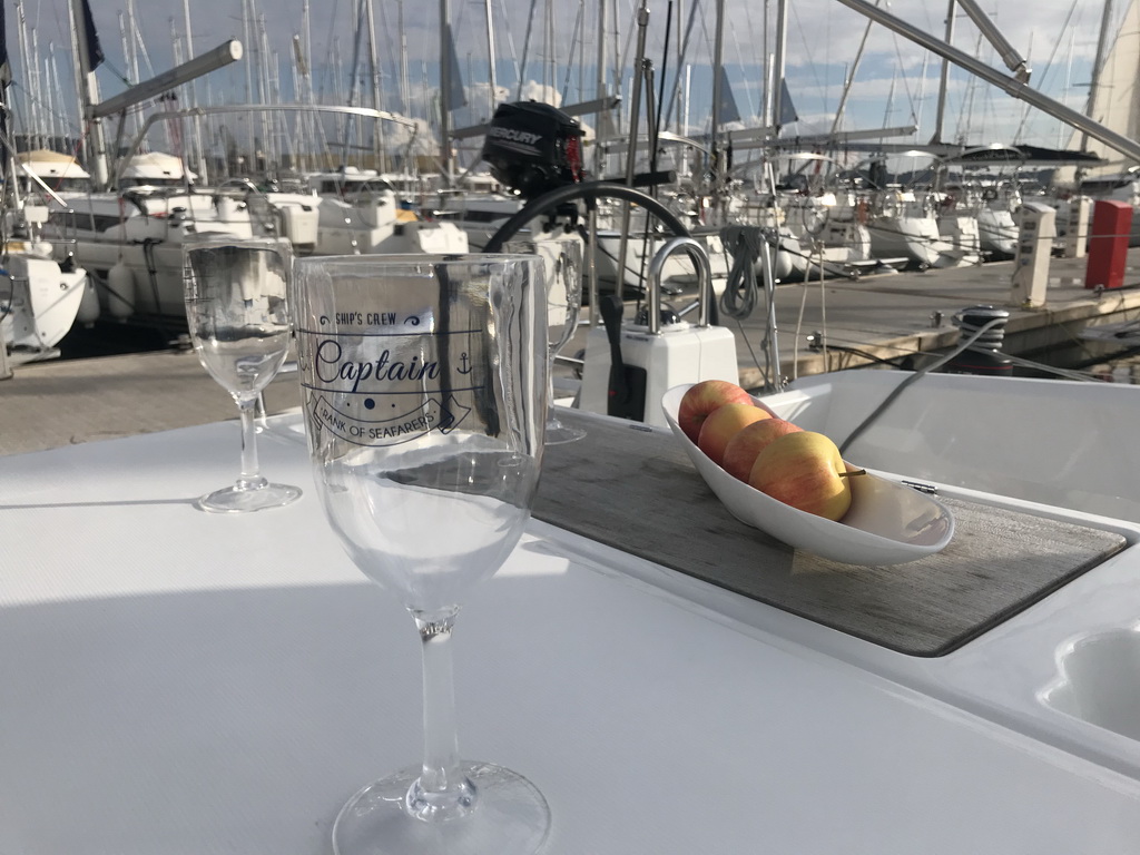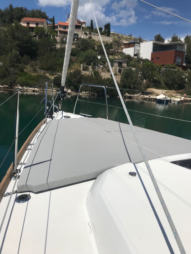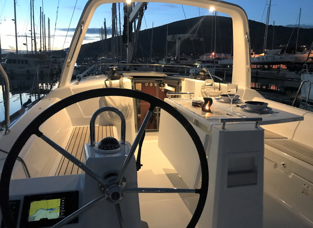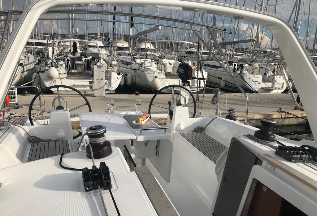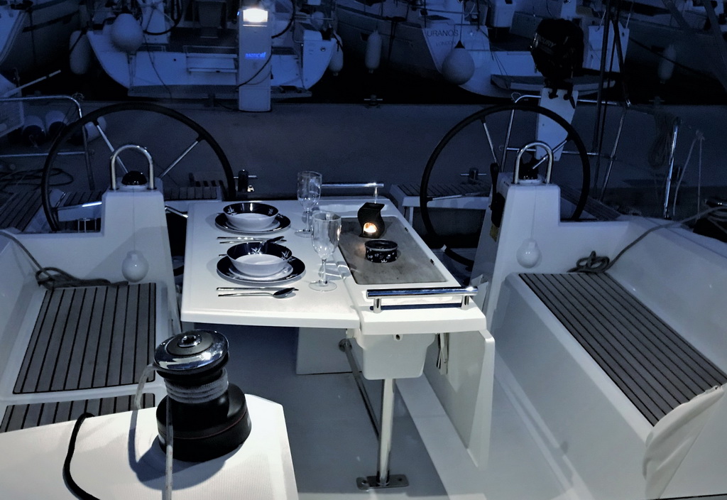 | Outside | Badeleiter, Badeplattform, Biminitop, Cockpitdusche, Cockpitlautsprecher, Cockpitpolster, Cockpittisch, Deckpolster, elektr. Ankerwinsch, Fender, Festmacherleinen, Gangway, Kugelfender, Kunststoff-Eimer (Pütz), Sprayhood, Winschen |