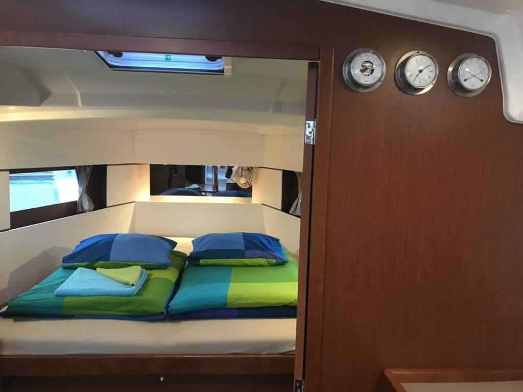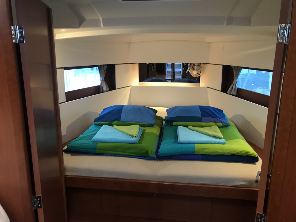 | Safety | AIS Empfänger, Autopilot, Bordapotheke, Bordwerkzeug, Bugstrahlruder, Feststoffschwimmwesten, Handbilgepumpe, Lifebelts, Nebelhorn, Notpinne, Notsignale, Radarreflektor, Rettungsinsel, Rettungskragen, UKW-Funk, Zweitanker |