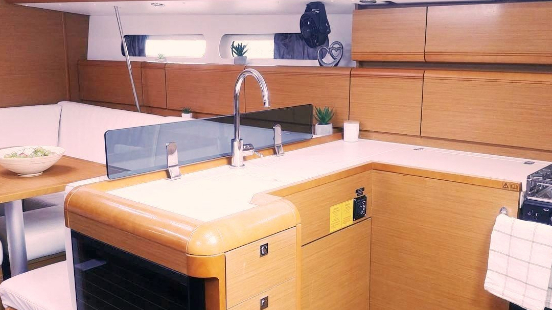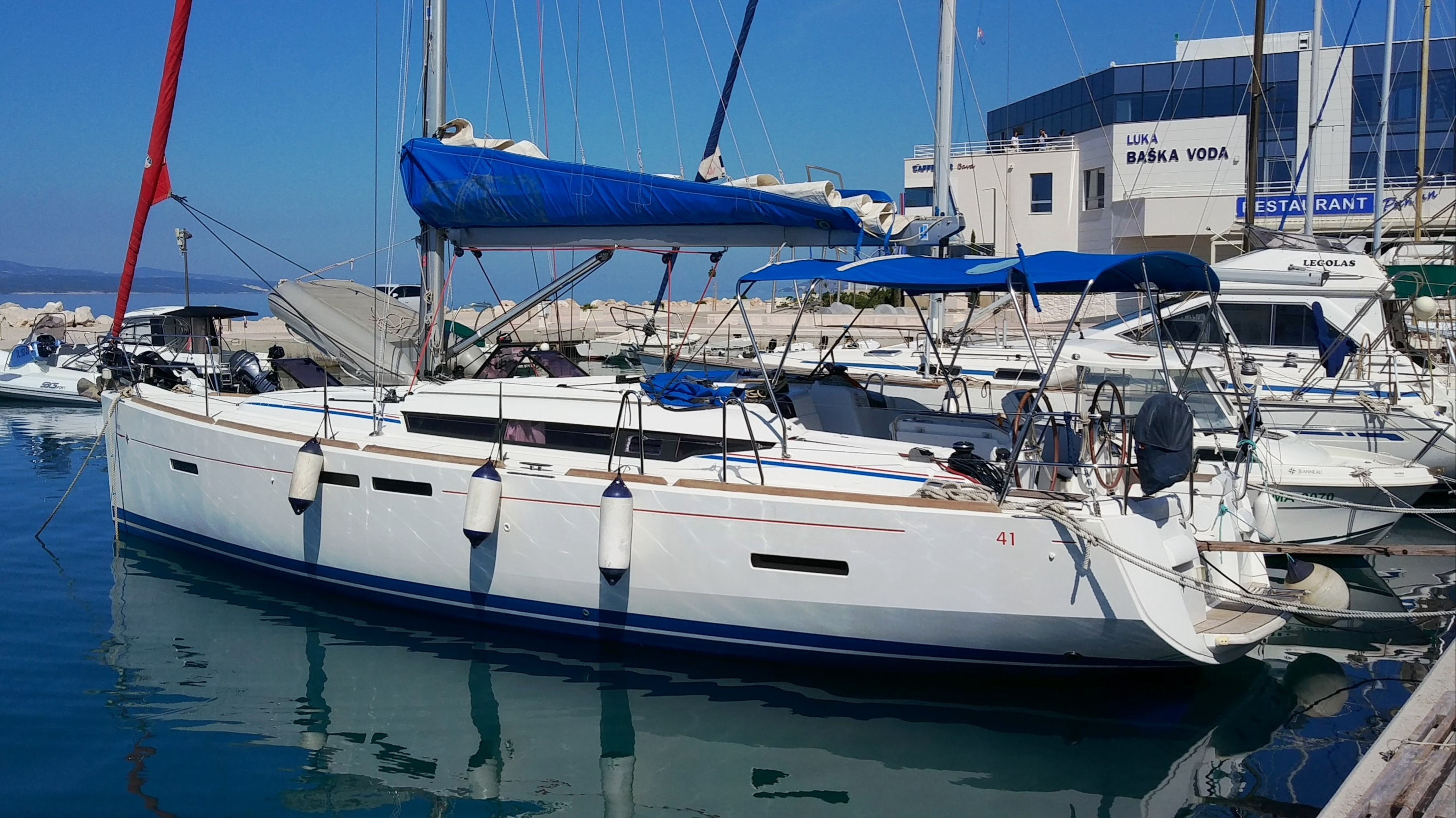 | Outside | Anker mit Kette, Biminitop, Cockpitdusche, Cockpitlautsprecher, elektr. Ankerwinsch, Solaranlage, Sprayhood |