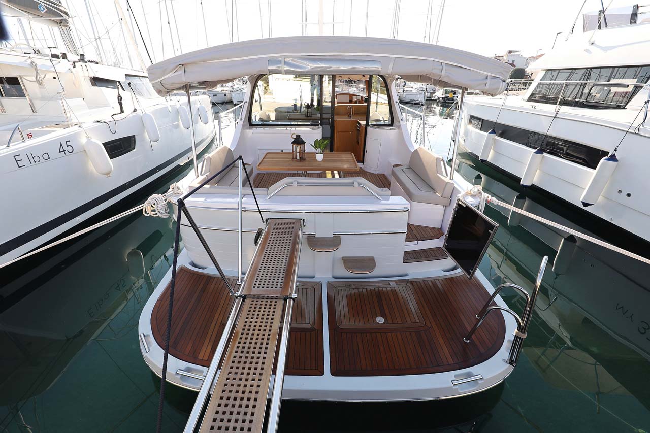 | Outside | 220 V-Landanschluss, Anker mit Kette, Ankerwinsch, Biminitop, Bootshaken, Cockpitdusche, Cockpitlautsprecher, Cockpitpolster, Cockpittisch, Cockpitverdeck, Deckpolster, Dieselkanister , elektr. Ankerwinsch, elektr. Gangway, Fender, Festmacherleinen, Kugelfender, Kunststoff-Eimer (Pütz), Solaranlage, Teak im Cockpit, Wasserkanister , Wasserschlauch |