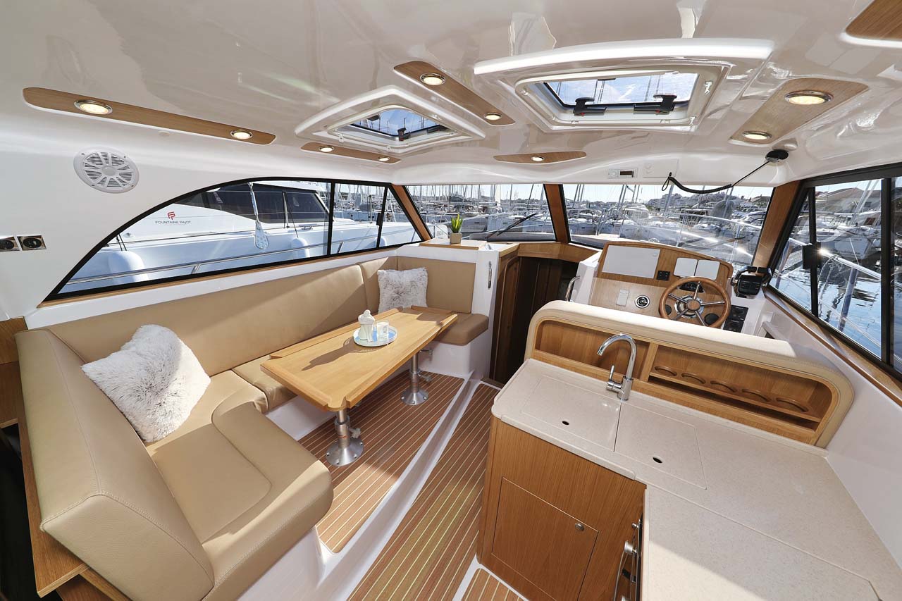 | Inside | Borduhr, Generator, Inverter 12V/220V, Klimaanlage (ohne Landstrombedarf), Kühlschrank, Ladegerät, Luftpumpe für Beiboot, Pantryausstattung, Radio, Salontisch absenkbar, USB Steckdose, Warmwasser, WC (elektr.) |