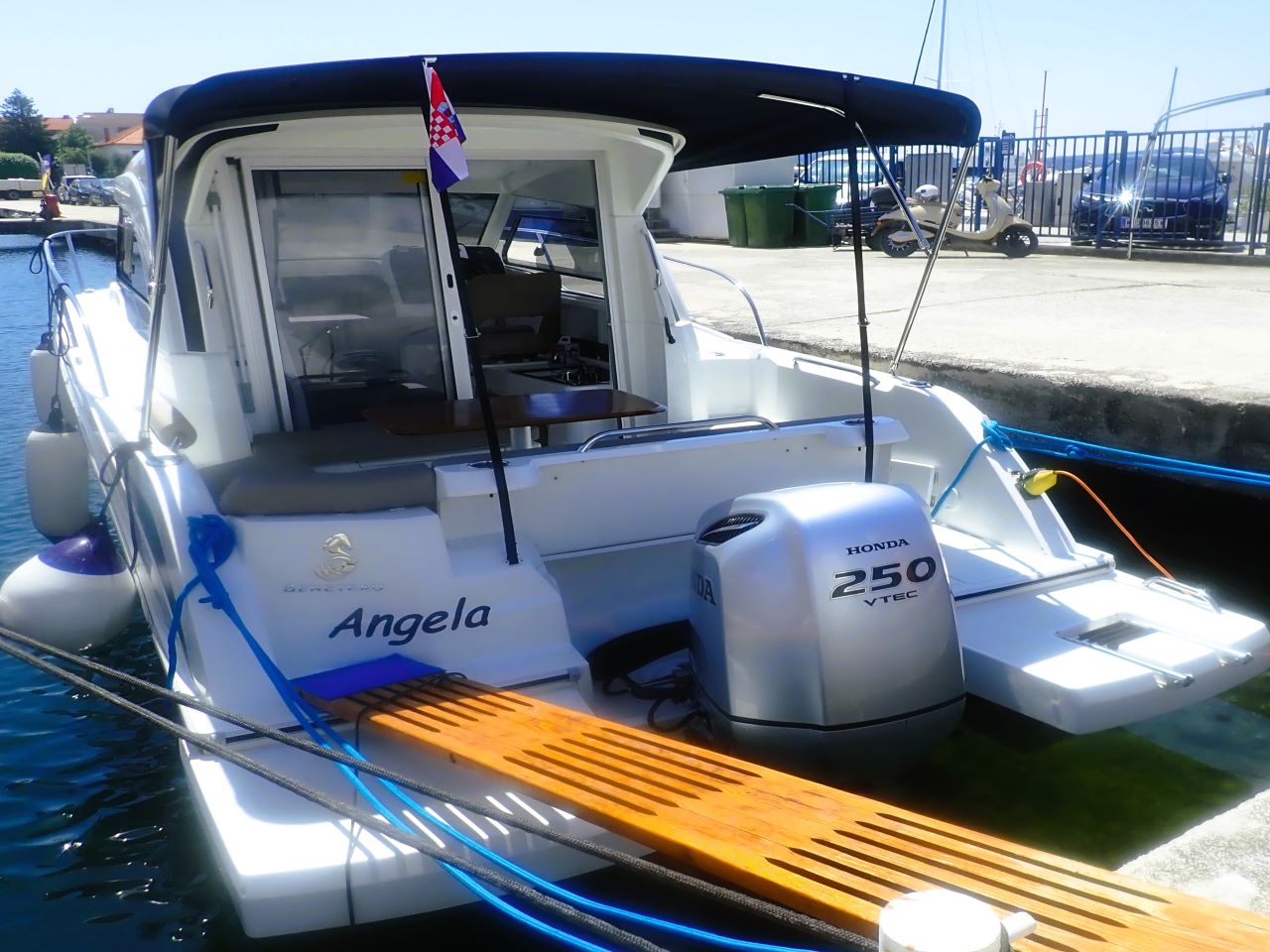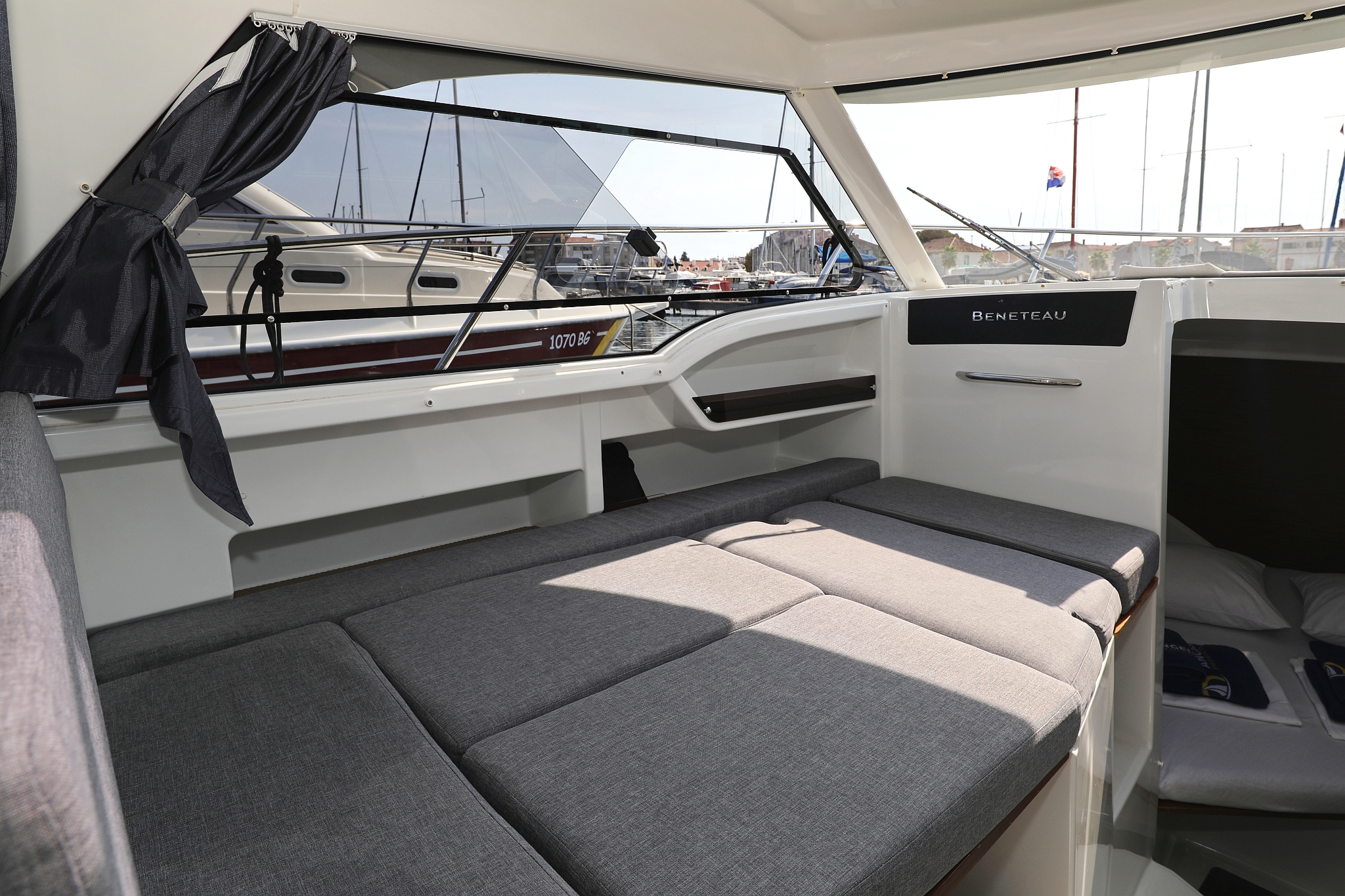 | Outside | Anker mit Kette, Badeleiter, Badeplattform, Bootshaken, Cockpitdusche, Cockpitlautsprecher, Cockpitpolster, Cockpittisch, Deckpolster, elektr. Ankerwinsch, Fender, Festmacherleinen, Gangway, Hardtop, Wasserschlauch |