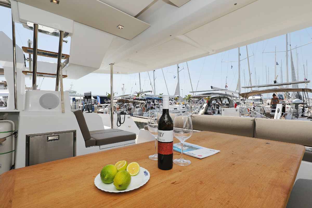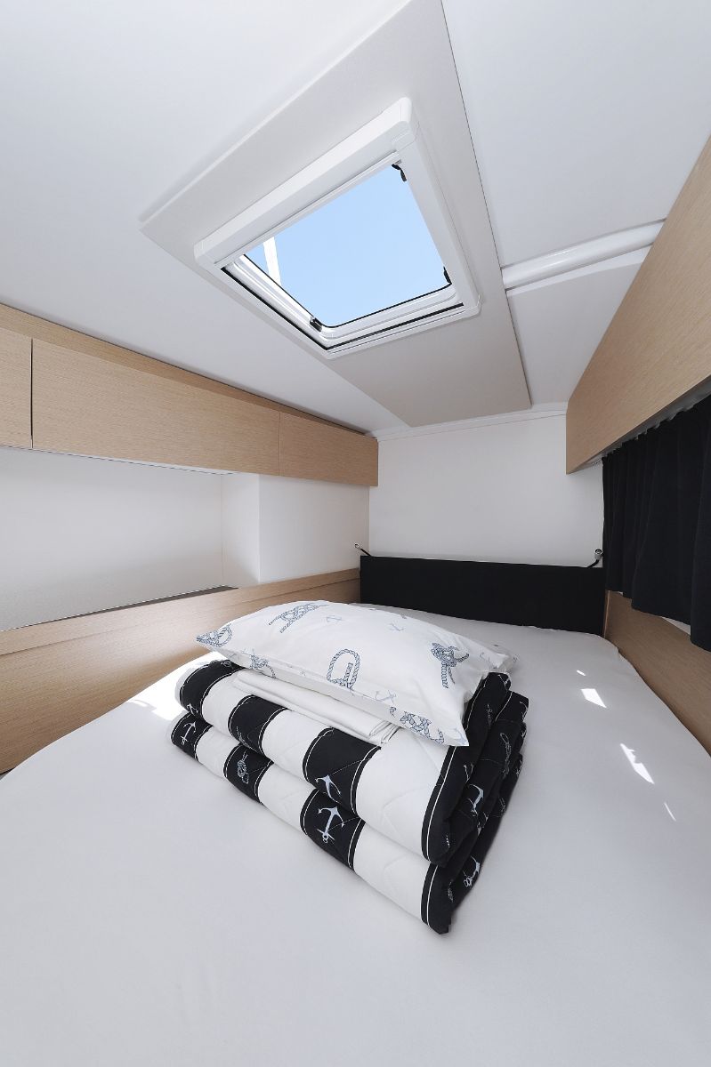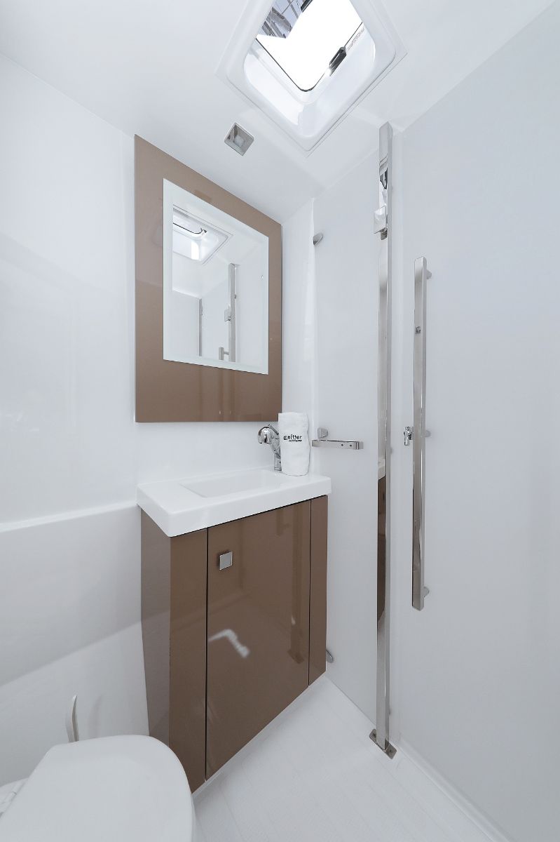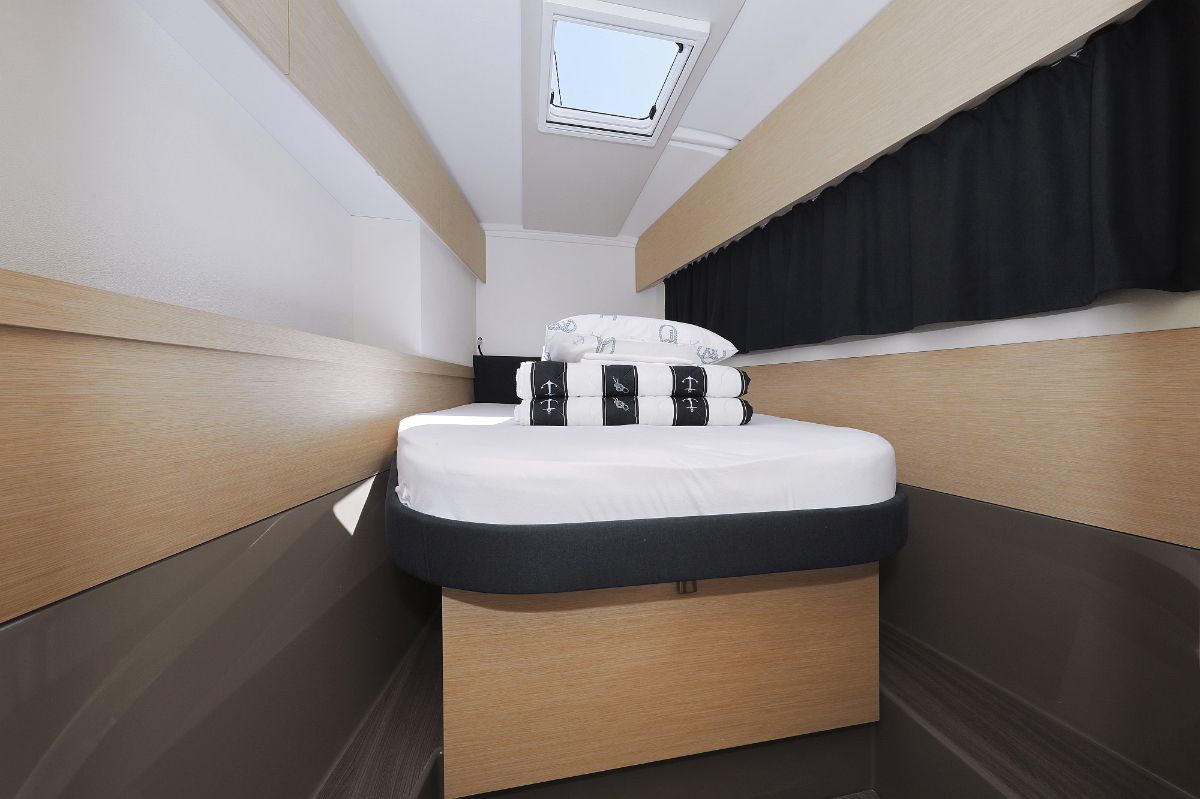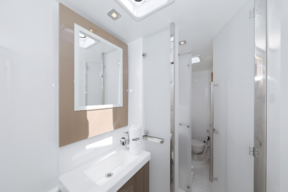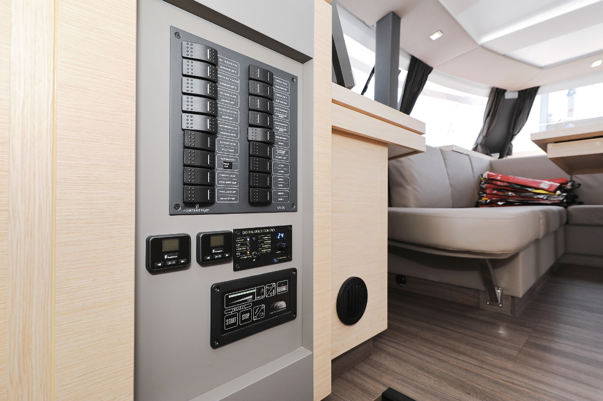 | Inside | Borduhr, Dusche, Generator, Heizung, Inverter 12V/220V, Klimaanlage, Kühlschrank, Ladegerät, Luftpumpe für Beiboot, Pantryausstattung, Radio, Salontisch absenkbar, Ventilatoren in Kabinen, Warmwasser |
