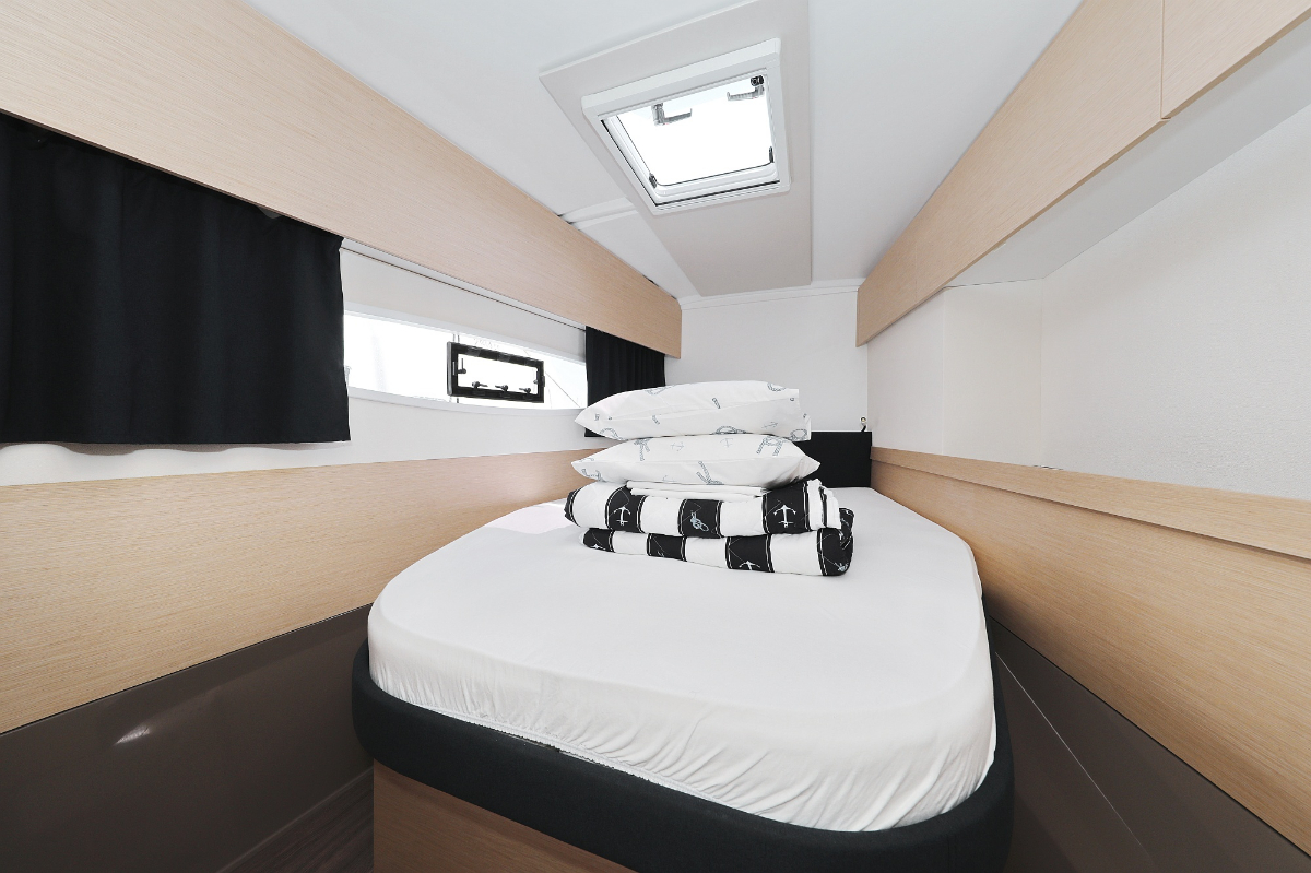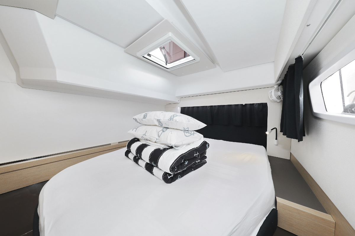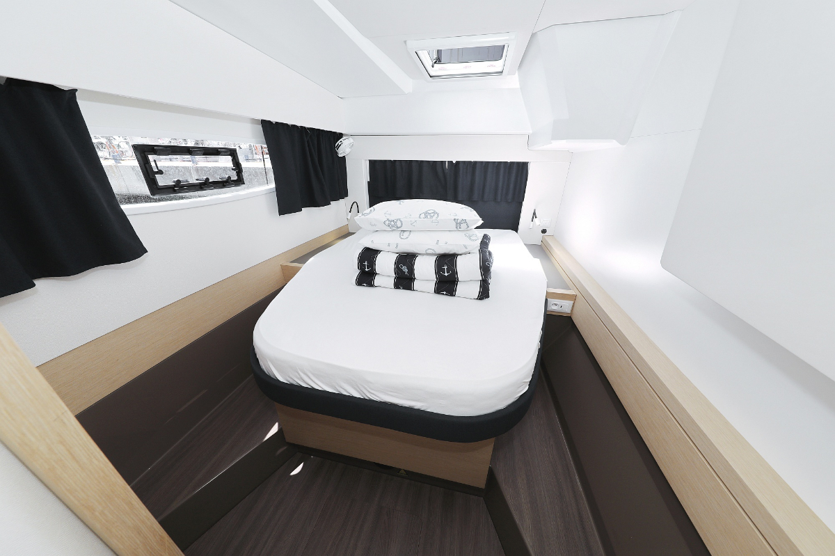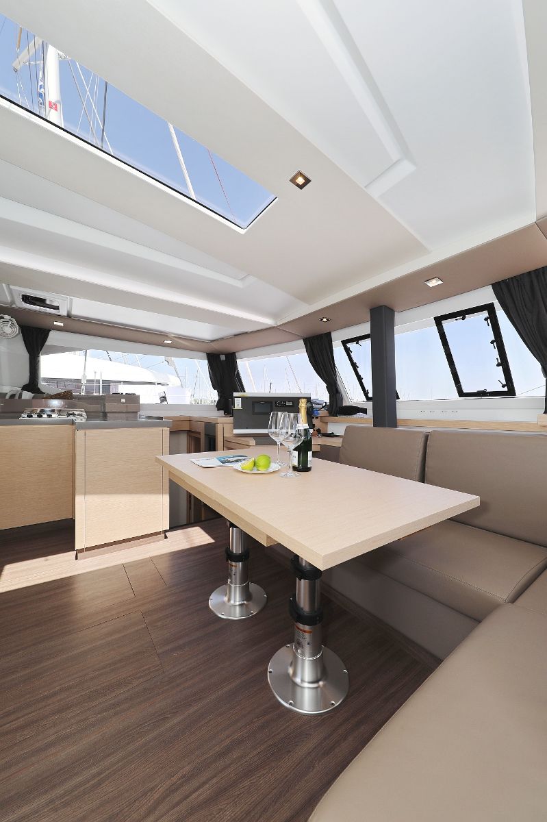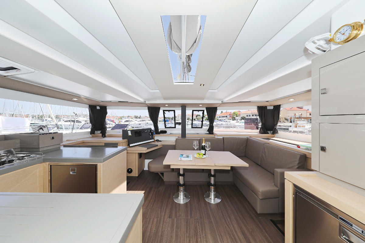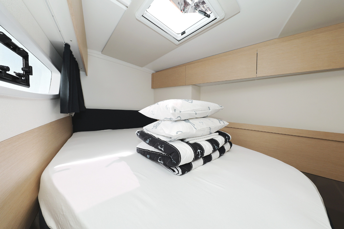 | Inside | Borduhr, Dusche, Generator, Heizung, Inverter 12V/220V, Klimaanlage, Kühlschrank, Ladegerät, Luftpumpe für Beiboot, Pantryausstattung, Radio, Salontisch absenkbar, Ventilatoren in Kabinen, Warmwasser |