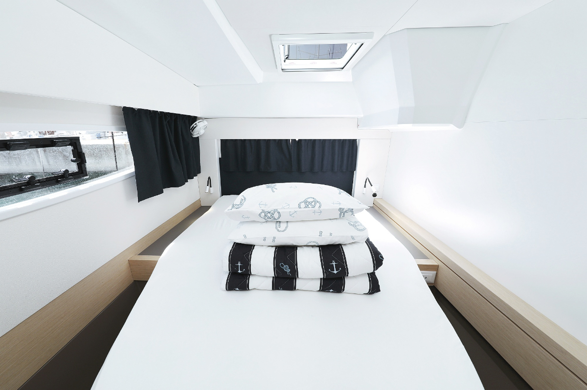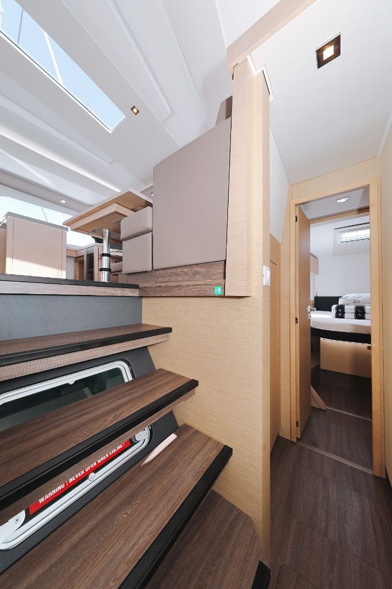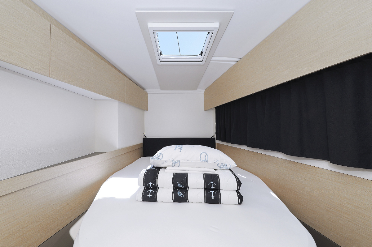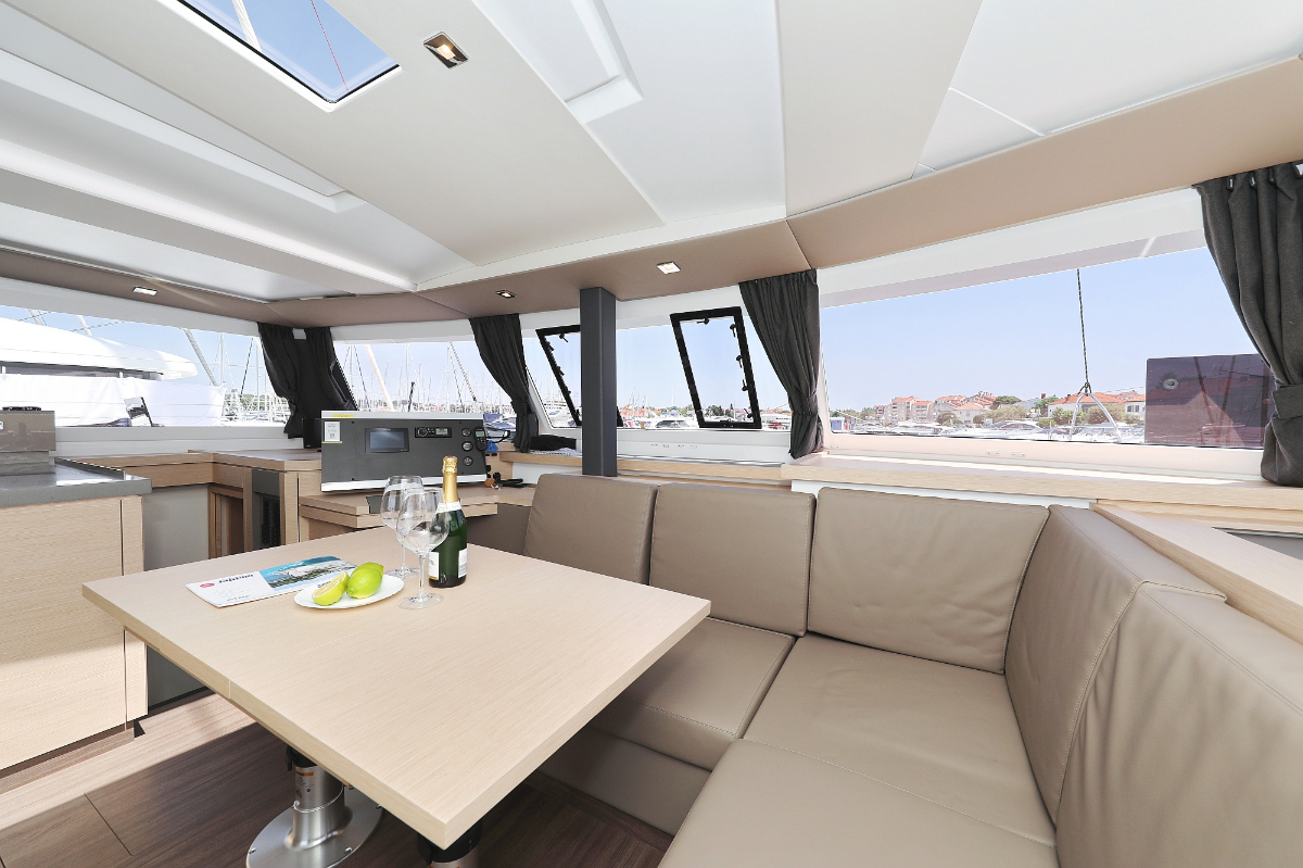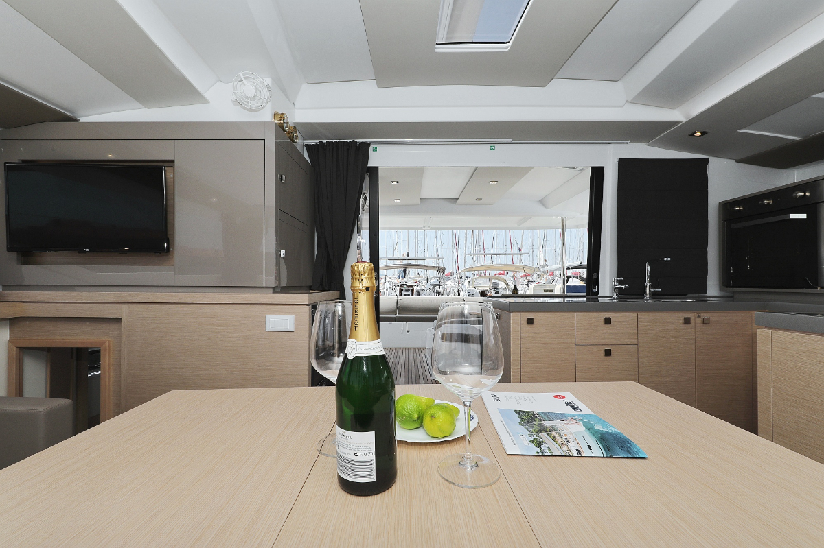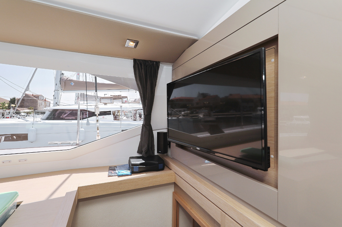 | Inside | Borduhr, Dusche, Generator, Heizung, Inverter 12V/220V, Klimaanlage, Kühlschrank, Ladegerät, Luftpumpe für Beiboot, Pantryausstattung, Radio, Salontisch absenkbar, Ventilatoren in Kabinen, Warmwasser |