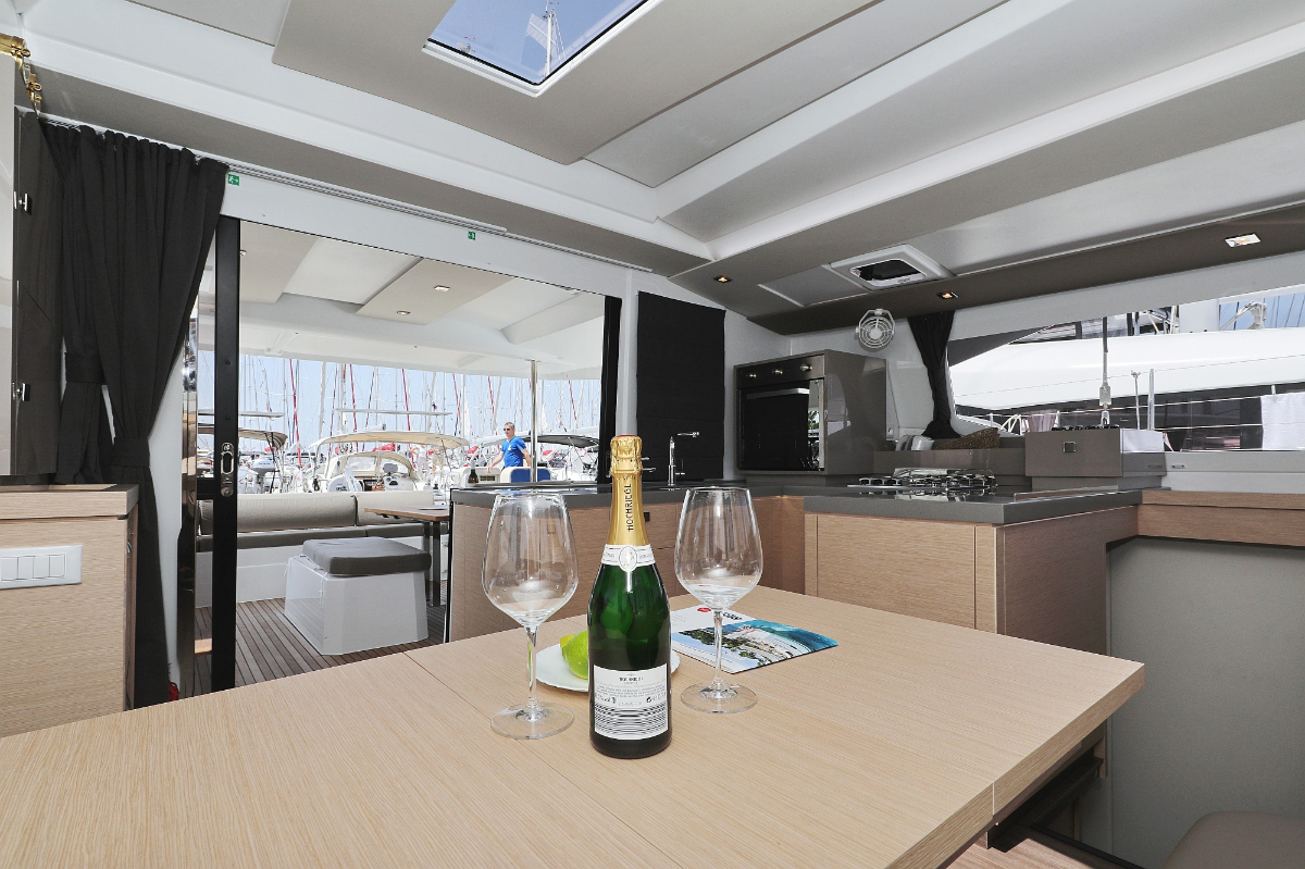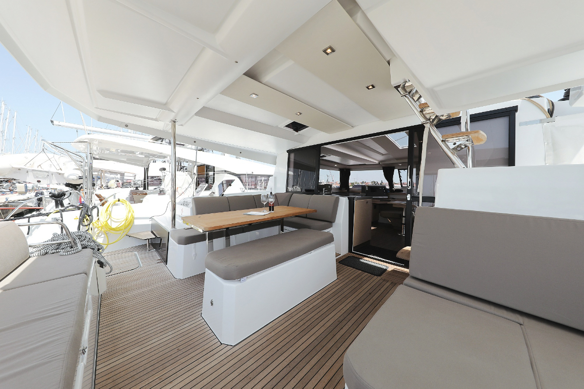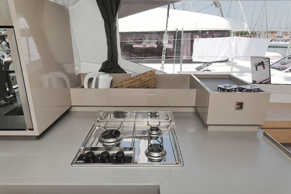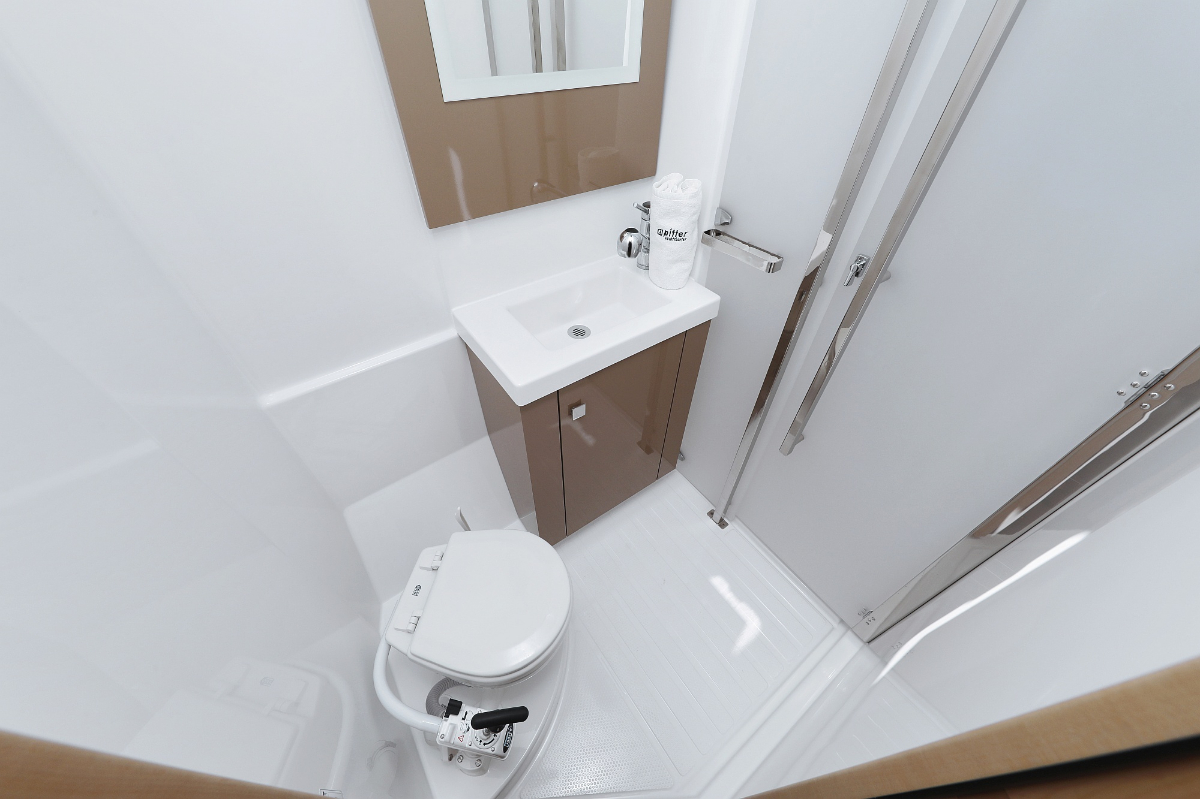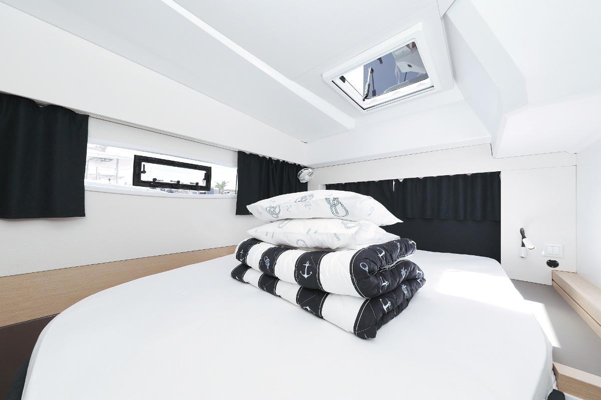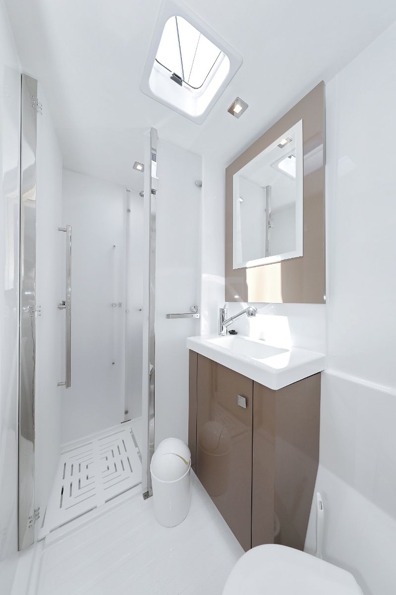 | Inside | Borduhr, Dusche, Generator, Heizung, Inverter 12V/220V, Klimaanlage, Kühlschrank, Ladegerät, Luftpumpe für Beiboot, Pantryausstattung, Radio, Salontisch absenkbar, Ventilatoren in Kabinen, Warmwasser |