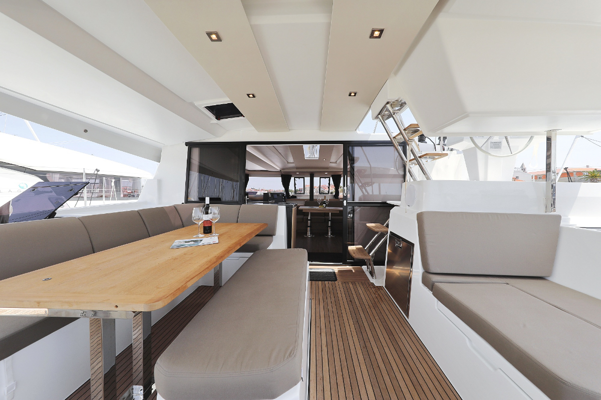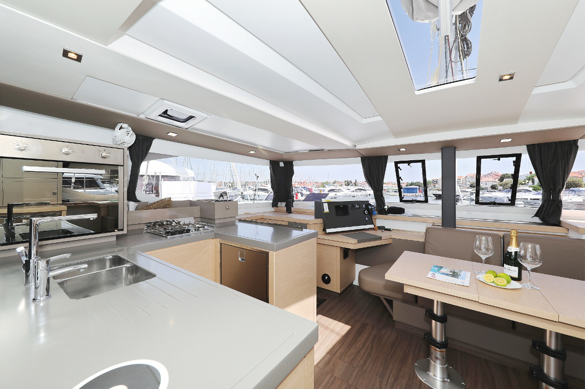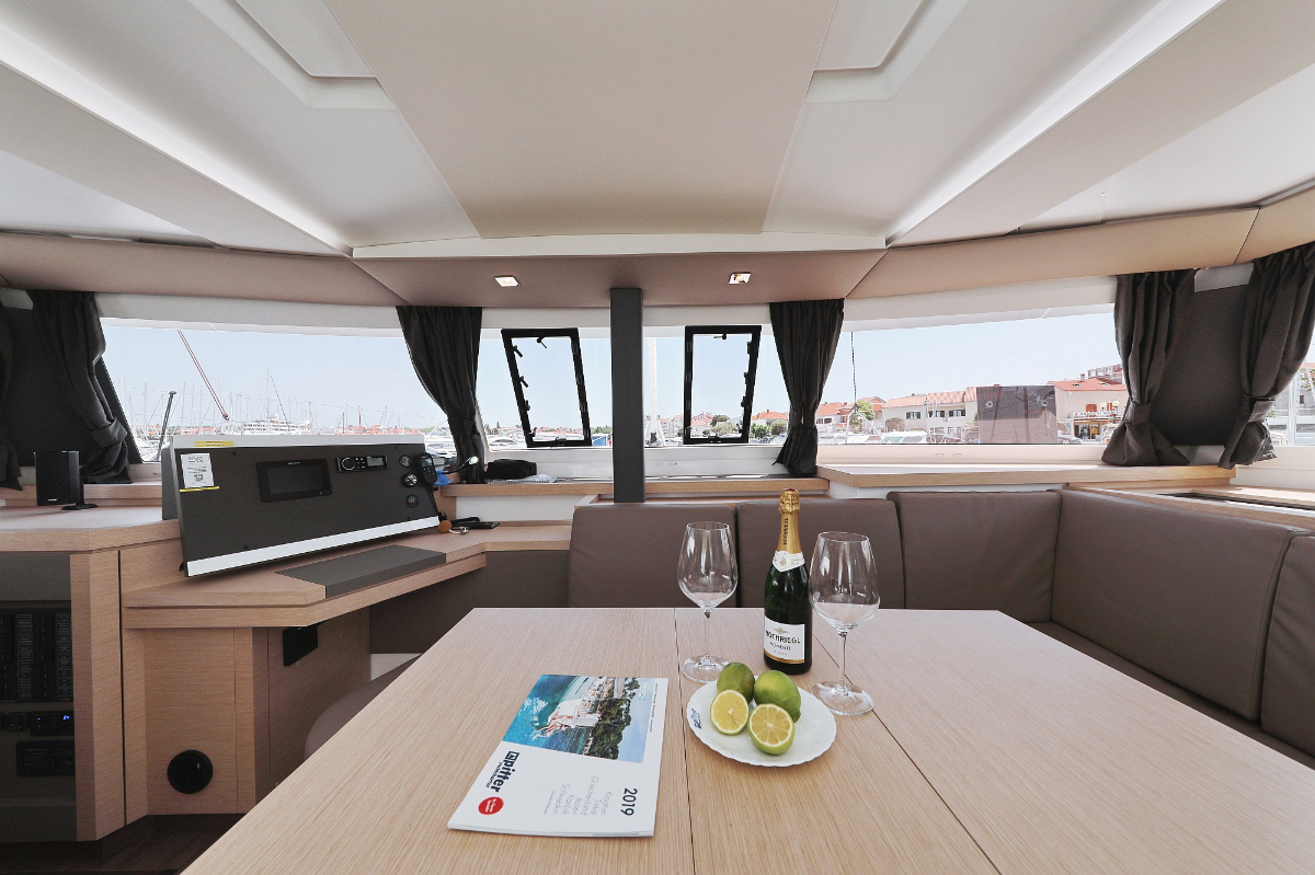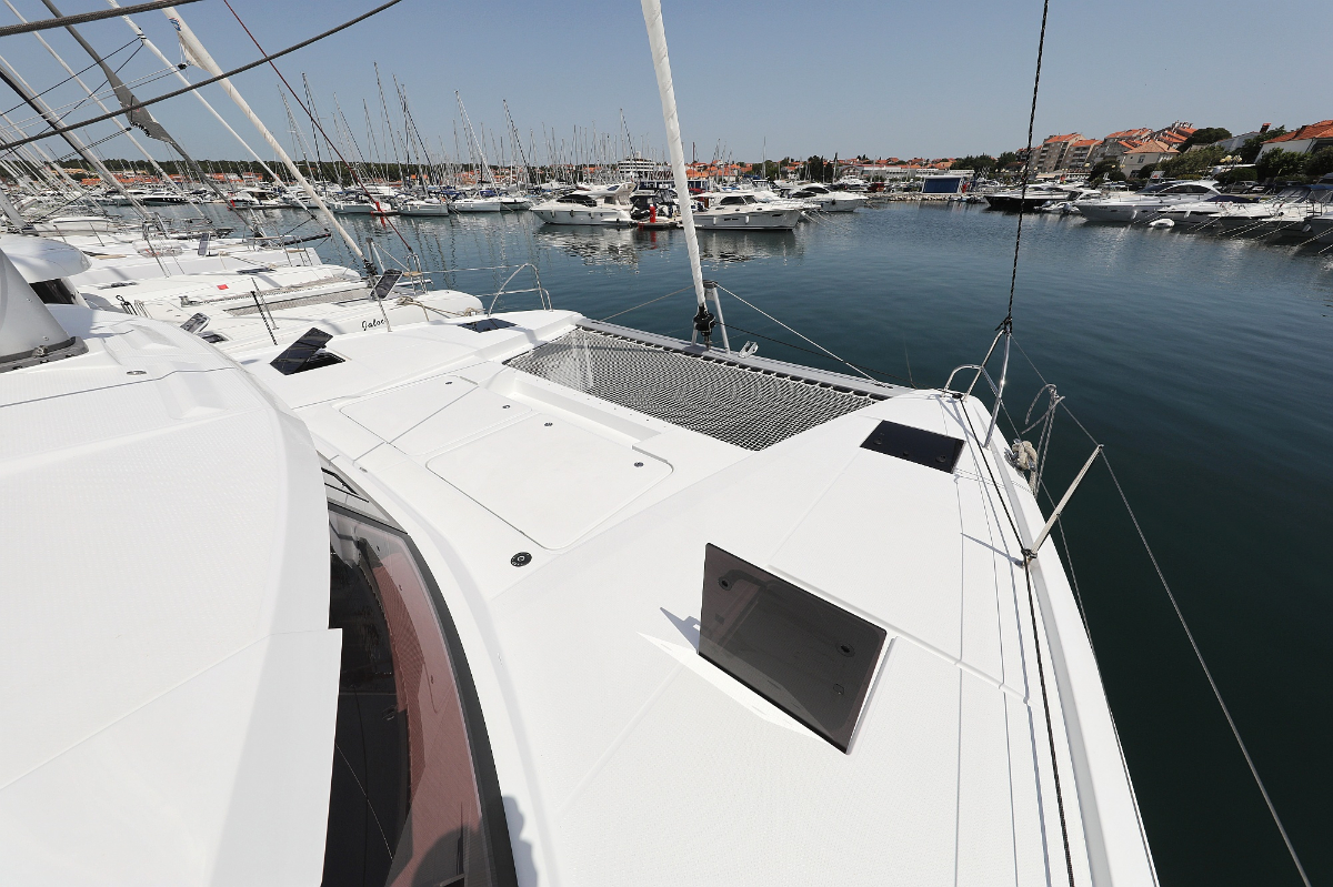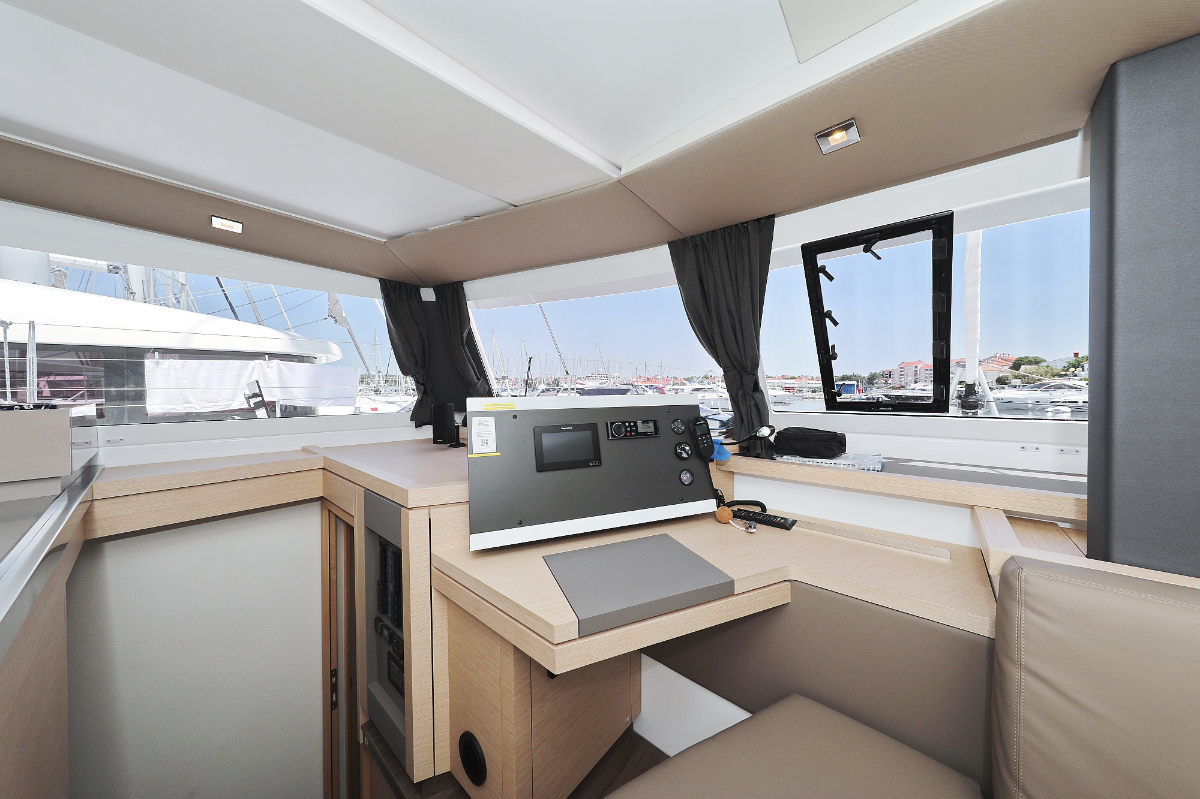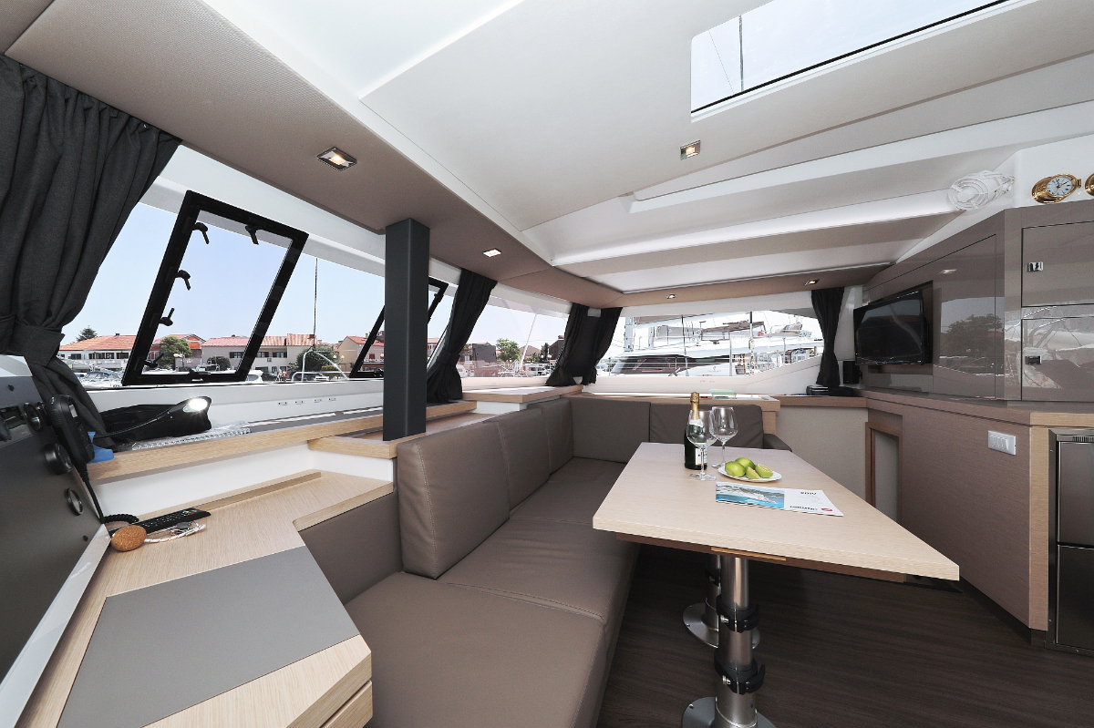 | Inside | Borduhr, Dusche, Generator, Heizung, Inverter 12V/220V, Klimaanlage, Kühlschrank, Ladegerät, Luftpumpe für Beiboot, Pantryausstattung, Radio, Salontisch absenkbar, Ventilatoren in Kabinen, Warmwasser |