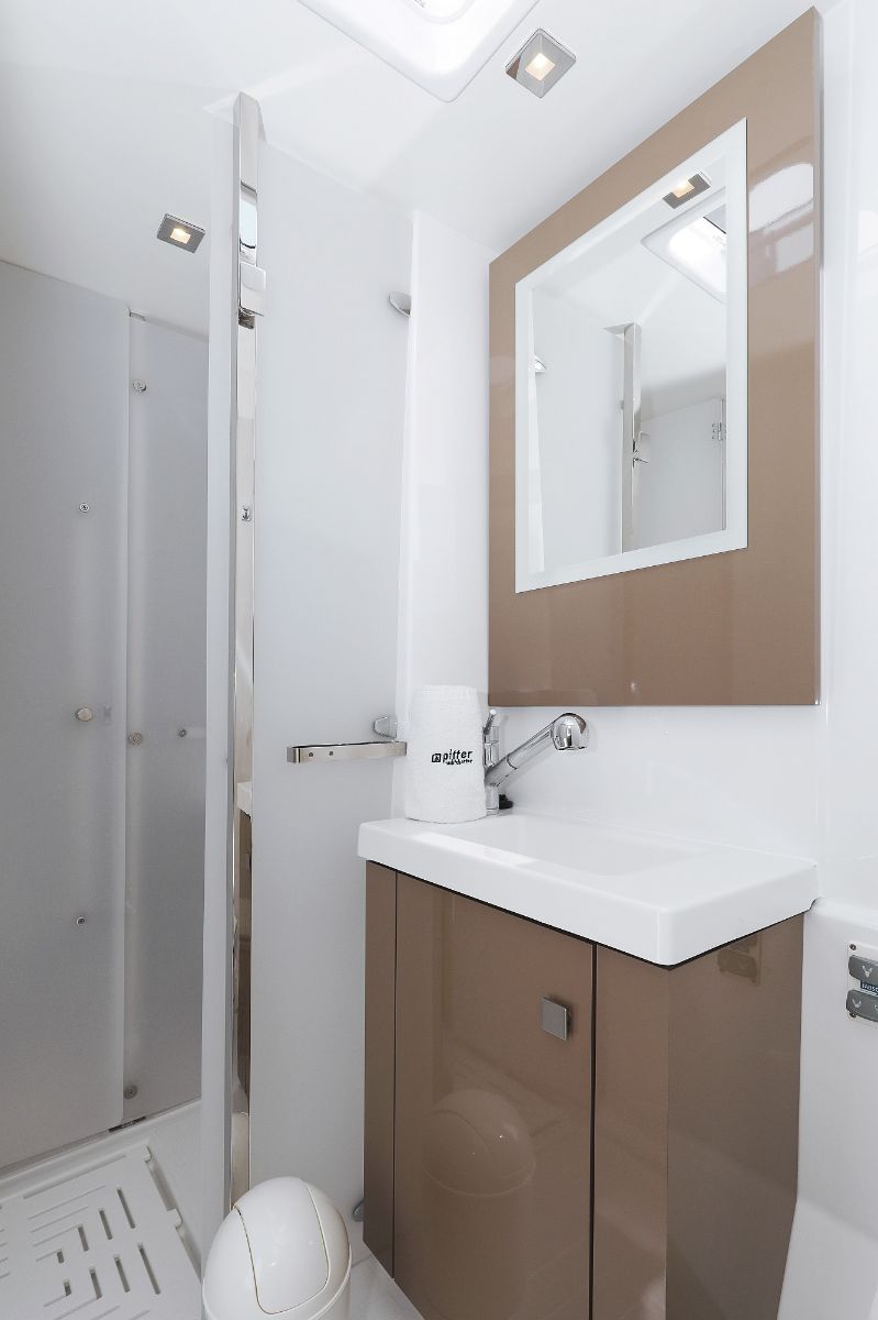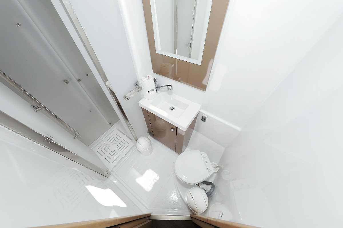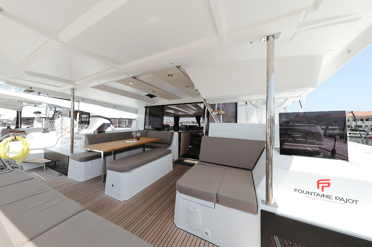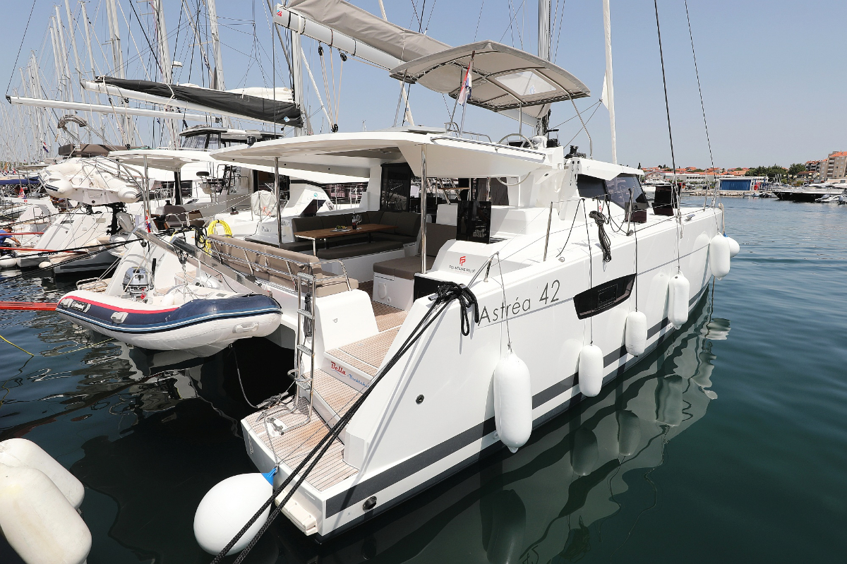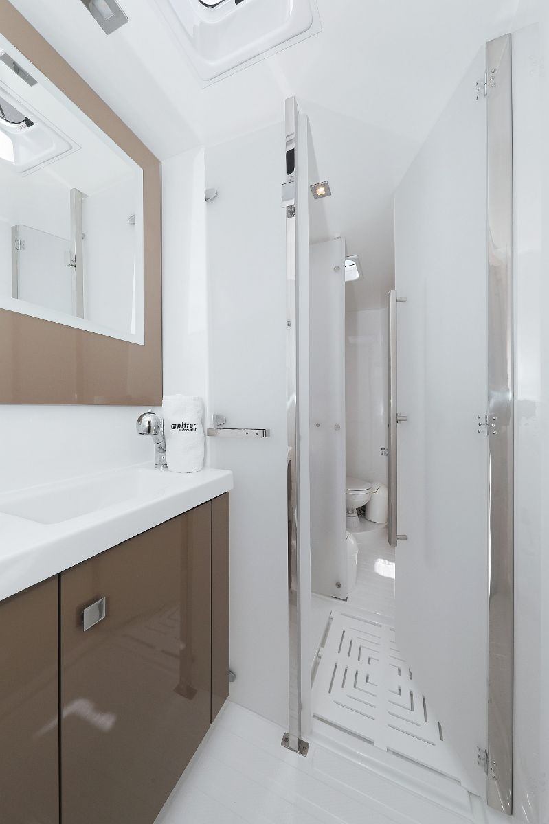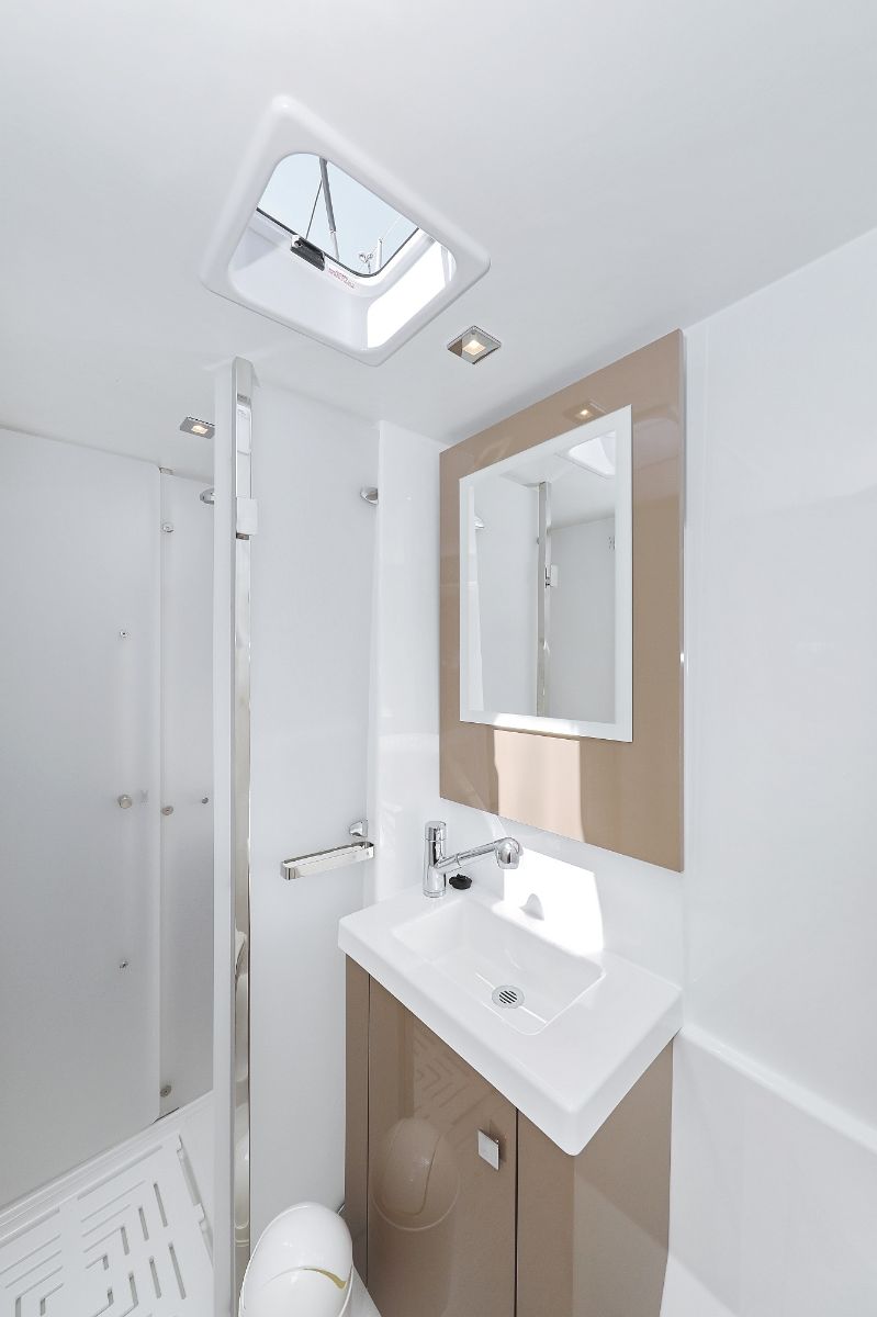 | Inside | Borduhr, Dusche, Generator, Heizung, Inverter 12V/220V, Klimaanlage, Kühlschrank, Ladegerät, Luftpumpe für Beiboot, Pantryausstattung, Radio, Salontisch absenkbar, Ventilatoren in Kabinen, Warmwasser |