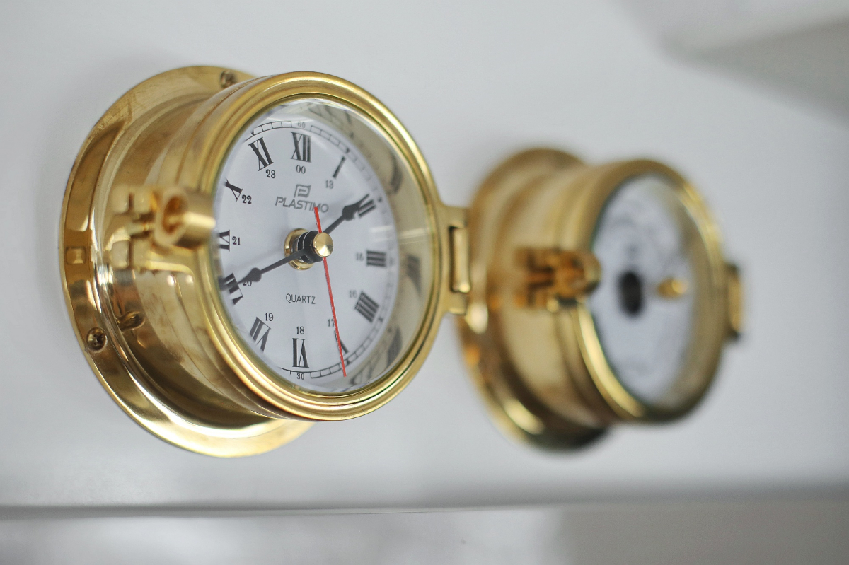 | Navigation | Barometer, Fernglas mit Peilkompass, GPS mit Kartenplotter im Cockpit, Hafenhandbücher, Navigationsbesteck, Seekarten, Tridata (Log, Echolot, Windm.) |