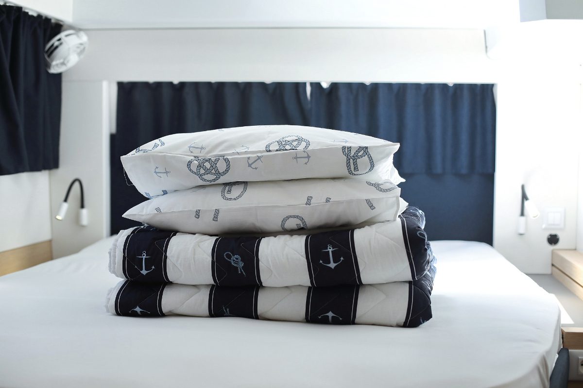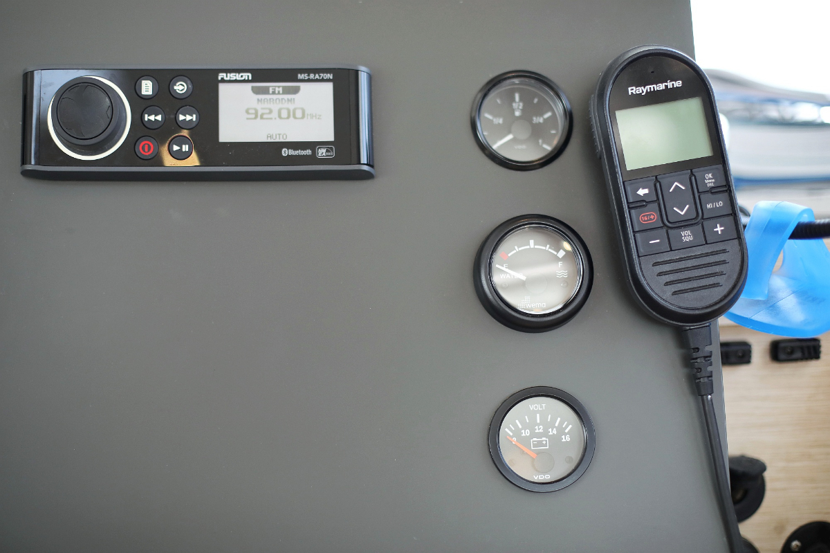 | Safety | Autopilot, Blitzboje, Bootsmannstuhl, Bordapotheke, Bordwerkzeug, Feststoffschwimmwesten, Feuerlöscher, Lifebelts, Motor-Ersatzteile, Nebelhorn, Notsignale, Radarreflektor, Reparaturset für Beiboot, Rettungsinsel, Suchscheinwerfer, Taschenlampe, UKW-Funk mit AIS, Zweitanker |