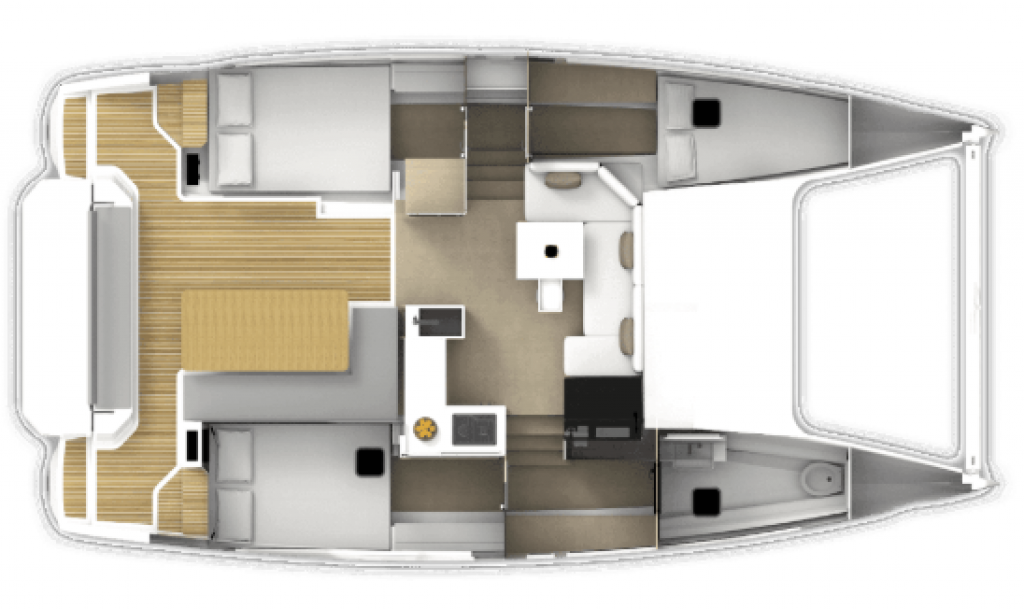 Outside Biminitop, Cockpitlautsprecher, Cockpitpolster, Cockpittisch, Deckpolster, elektr. Ankerwinsch, Fender, Gangway, Solaranlage