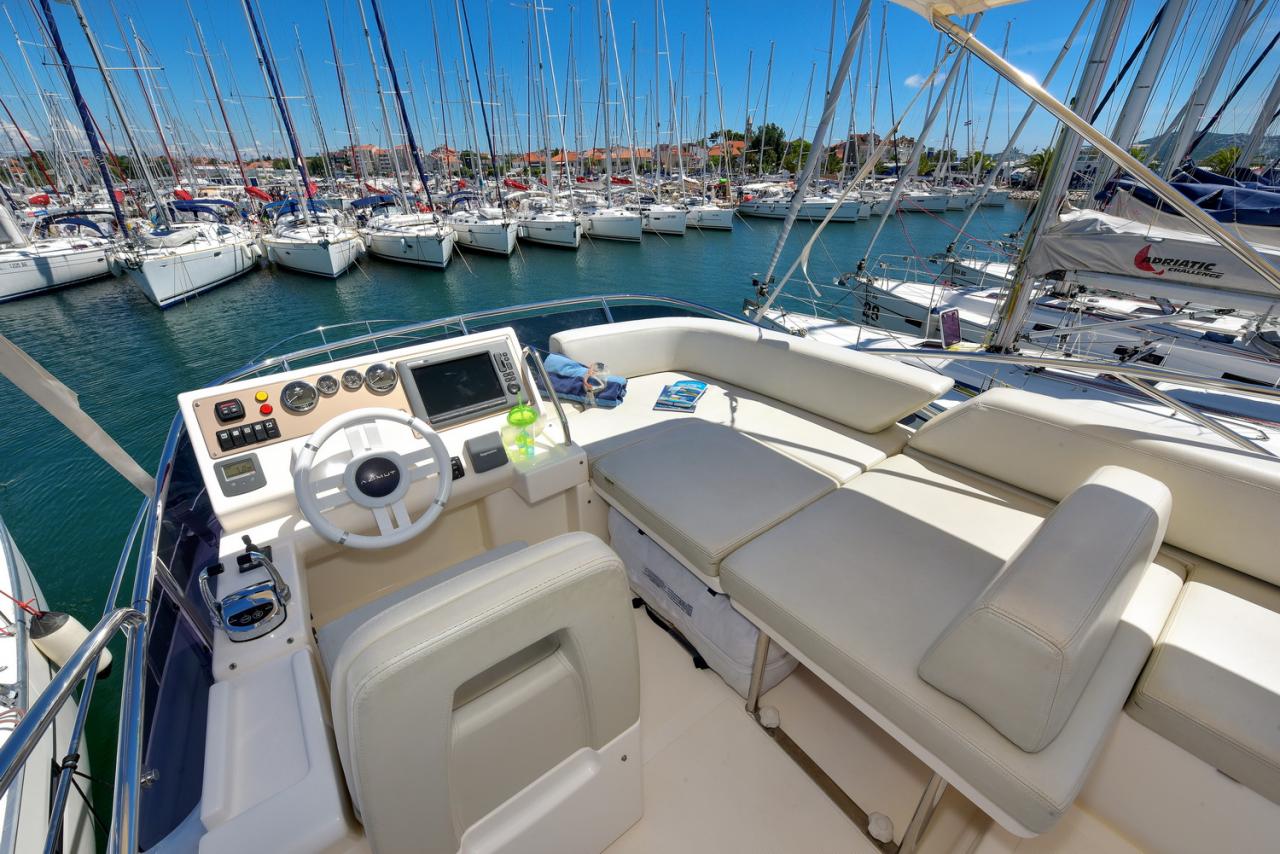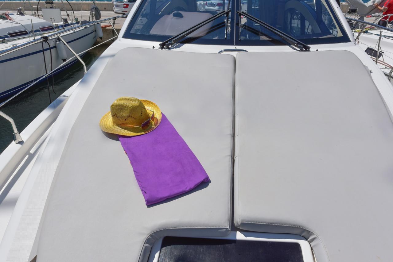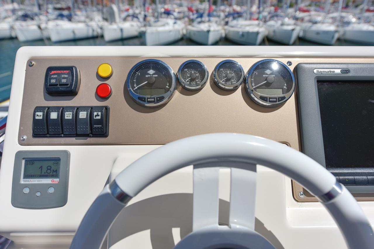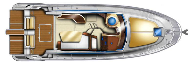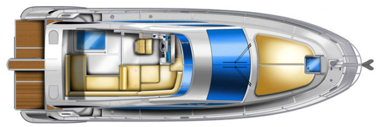 | Outside | Biminitop, Cockpitdusche, Cockpitpolster, Cockpittisch, Deckpolster, elektr. Ankerwinsch, Gangway, Sonnensegel |