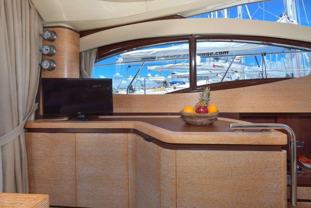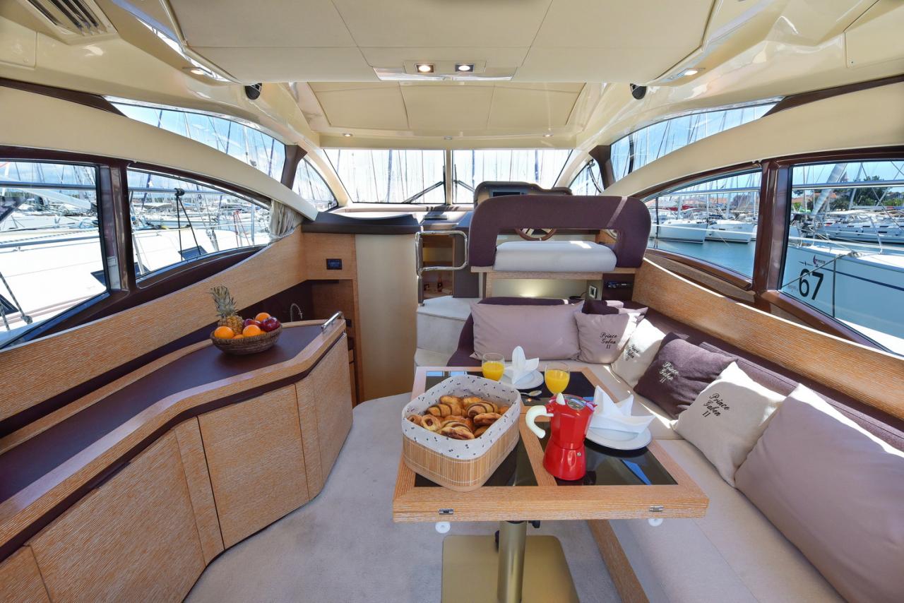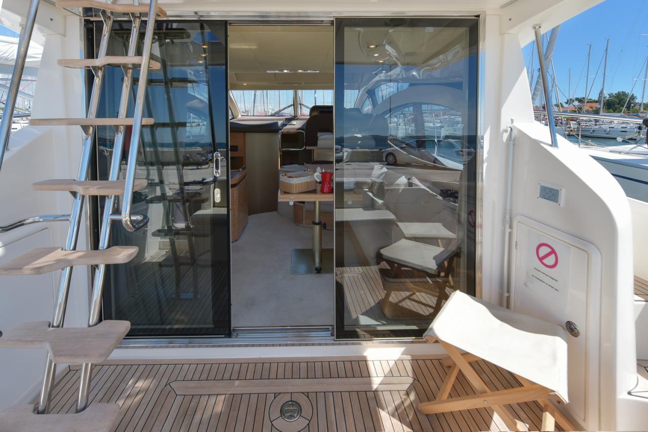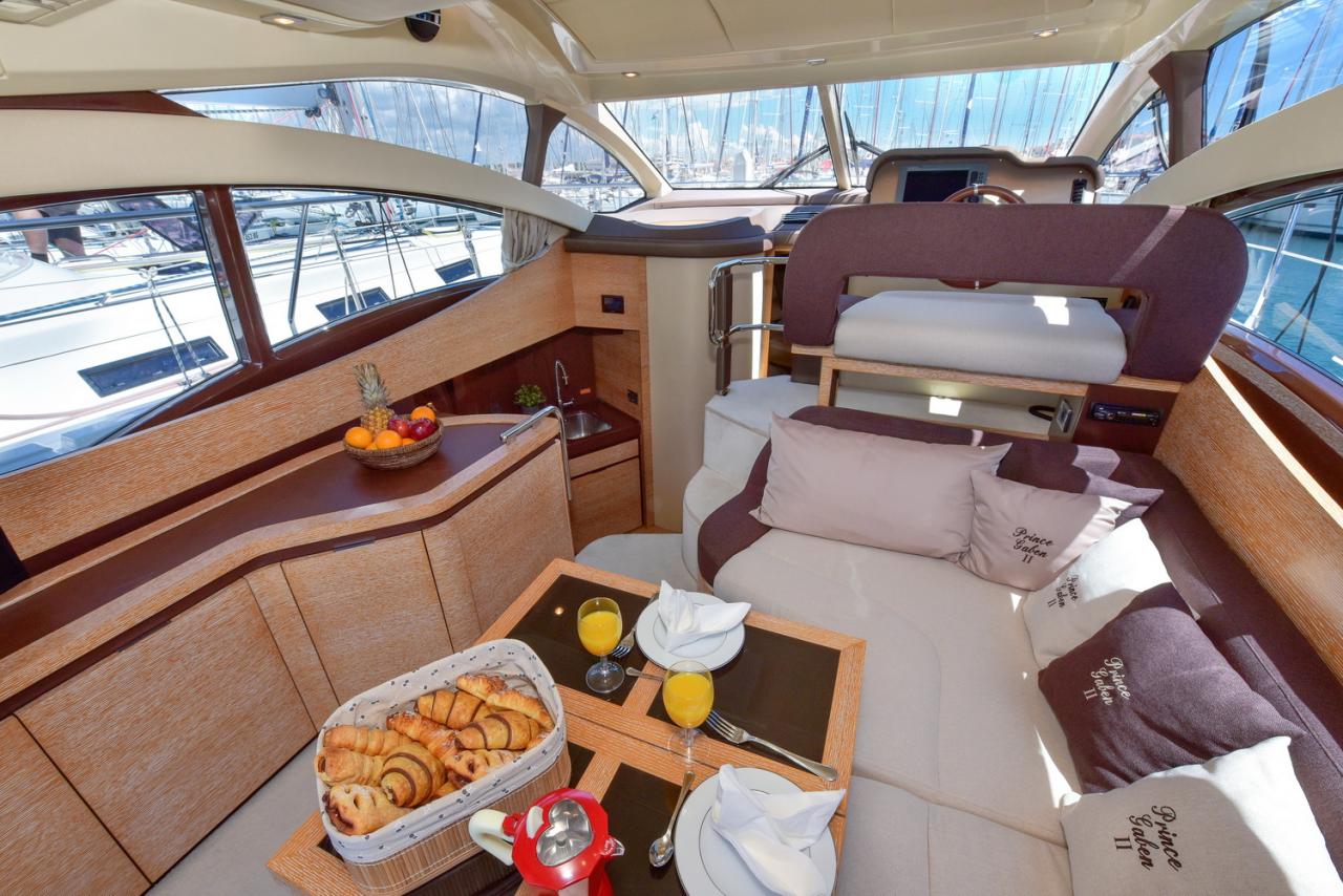 | Outside | Biminitop, Cockpitdusche, Cockpitpolster, Cockpittisch, Deckpolster, elektr. Ankerwinsch, Gangway, Sonnensegel |