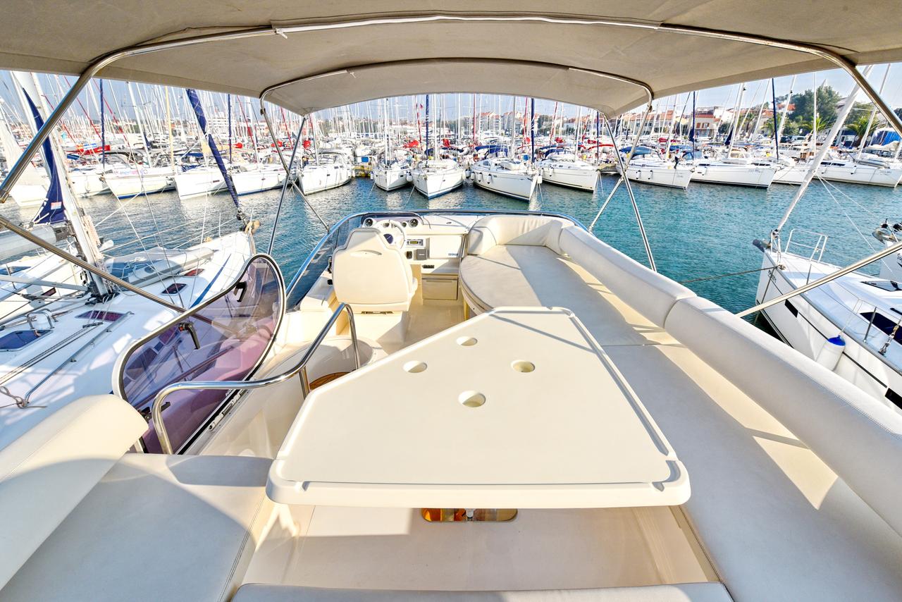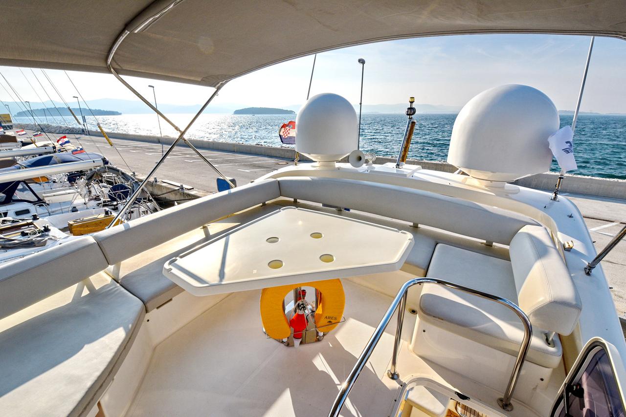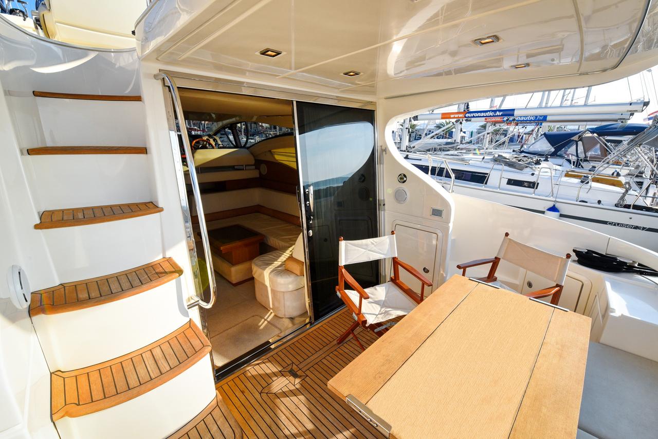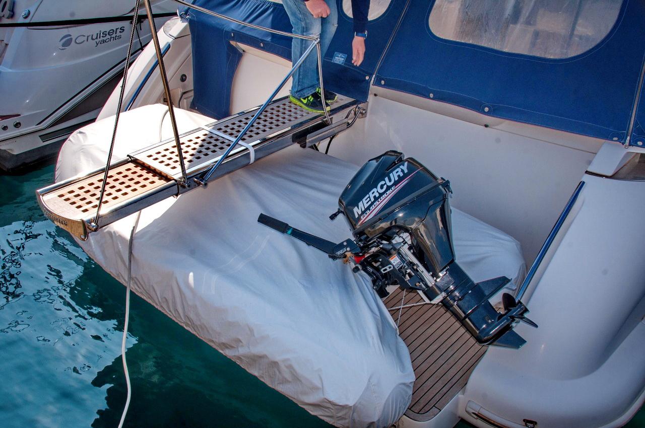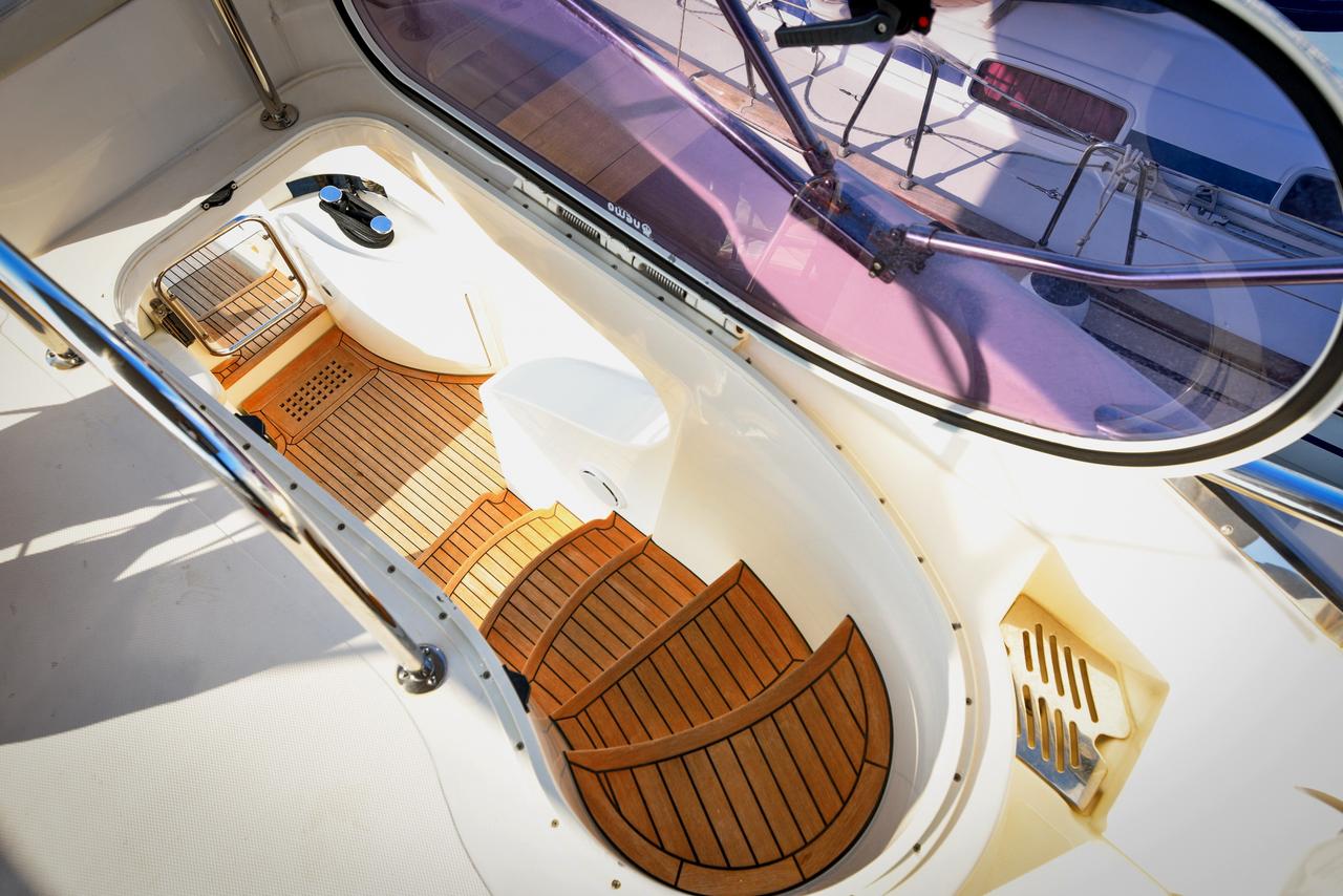 | Outside | Biminitop, Cockpitdusche, Cockpitlautsprecher, Cockpitpolster, Cockpittisch, elektr. Ankerwinsch, Gangway, Sonnensegel, Unterwasserbeleuchtung |