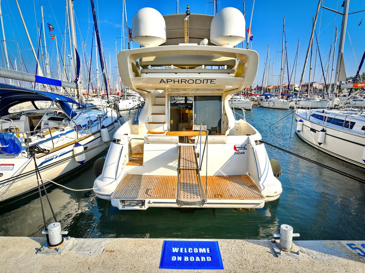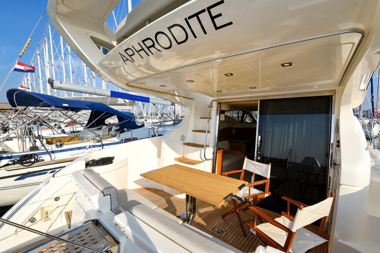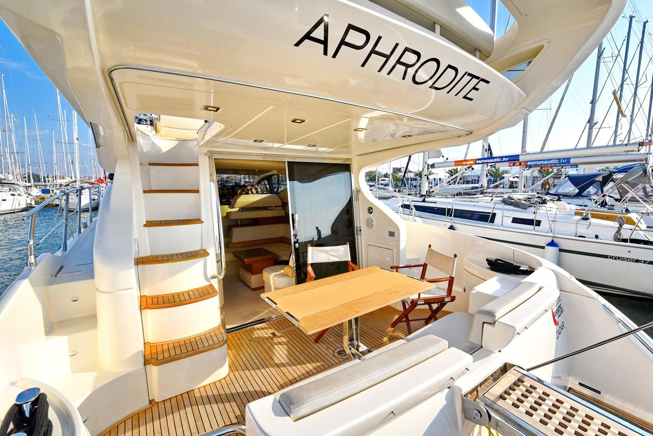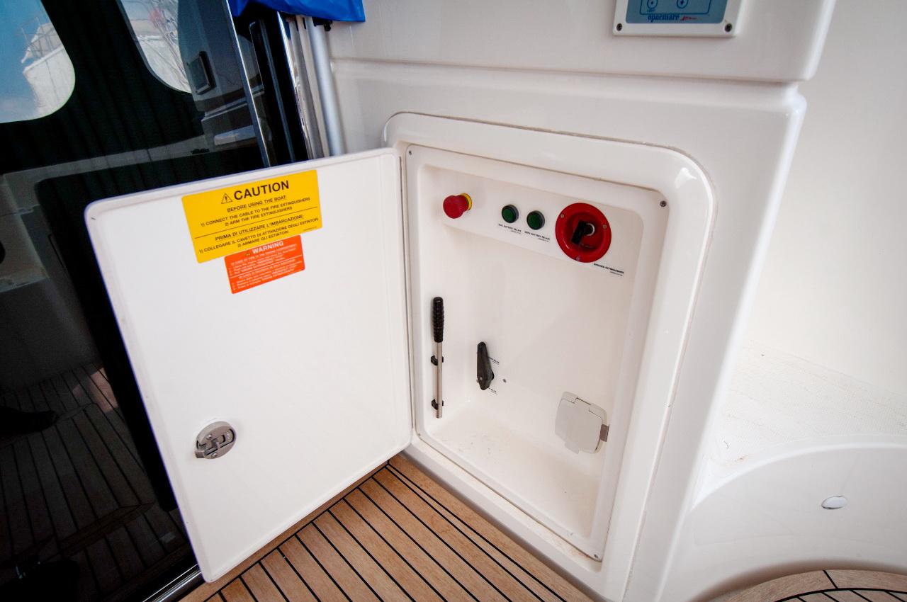 | Outside | Biminitop, Cockpitdusche, Cockpitlautsprecher, Cockpitpolster, Cockpittisch, elektr. Ankerwinsch, Gangway, Sonnensegel, Unterwasserbeleuchtung |