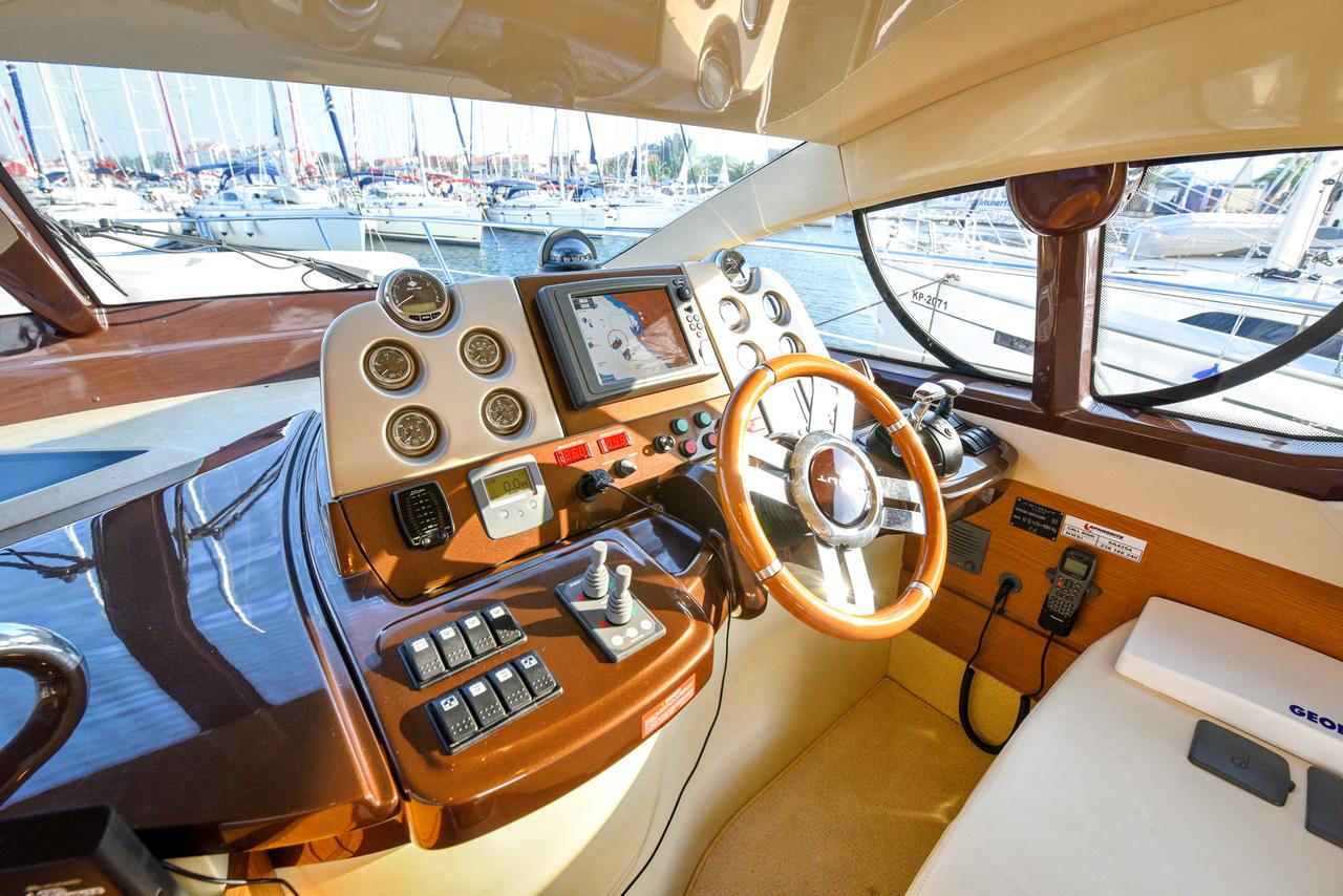 | Safety | Autopilot, Bordapotheke, Bugstrahlruder, elektr. Bilgepumpe, Feststoffschwimmwesten, Heckstrahlruder, Licht und Leine für Rettungskragen, Notsignale, Rettungsinsel, Taschenlampe, UKW-Funk |