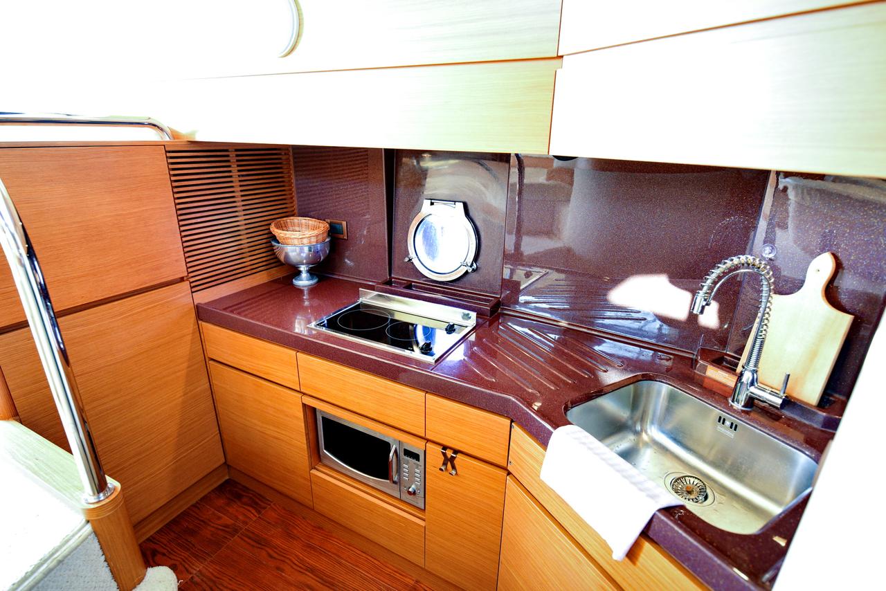| Inside | Backofen, Gasherd, Gefrierschrank, Generator, Inverter 12V/220V, Kaffeemaschine, Klimaanlage, Kühlschrank, Ladegerät, Landstromkabel, Mikrowelle, Radio mit CD, Salontisch absenkbar, TV + DVD, Warmwasser, Watermaker, WC (elektr.) |