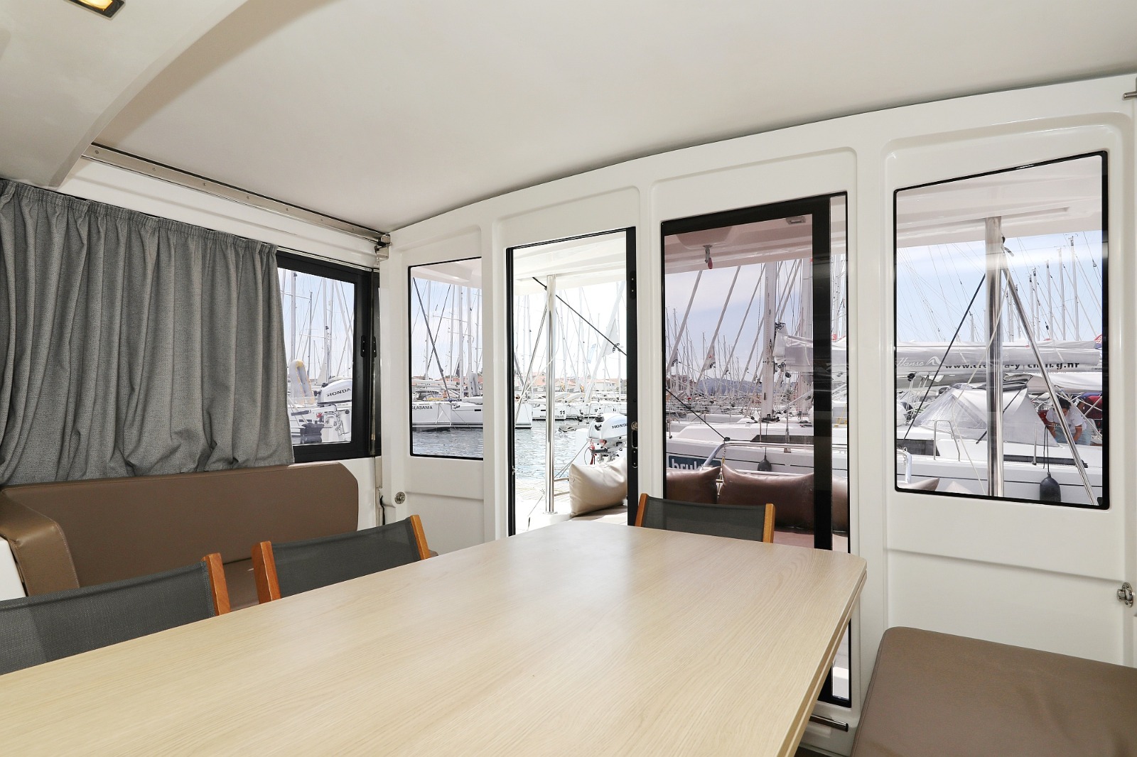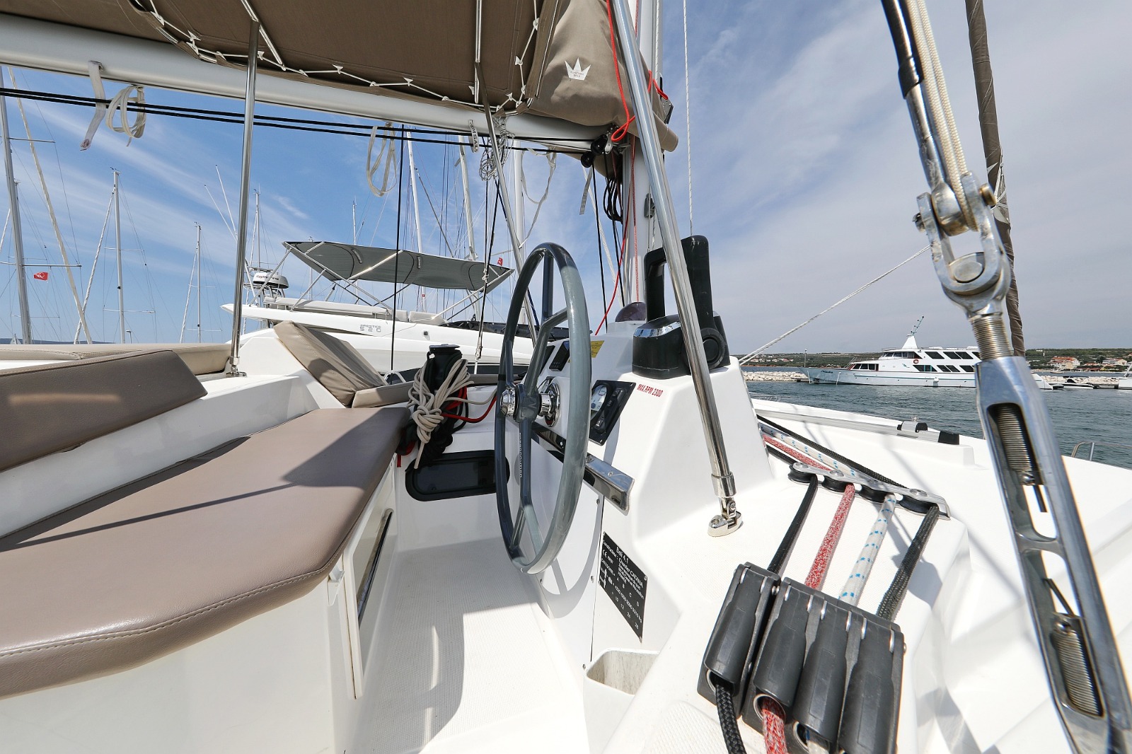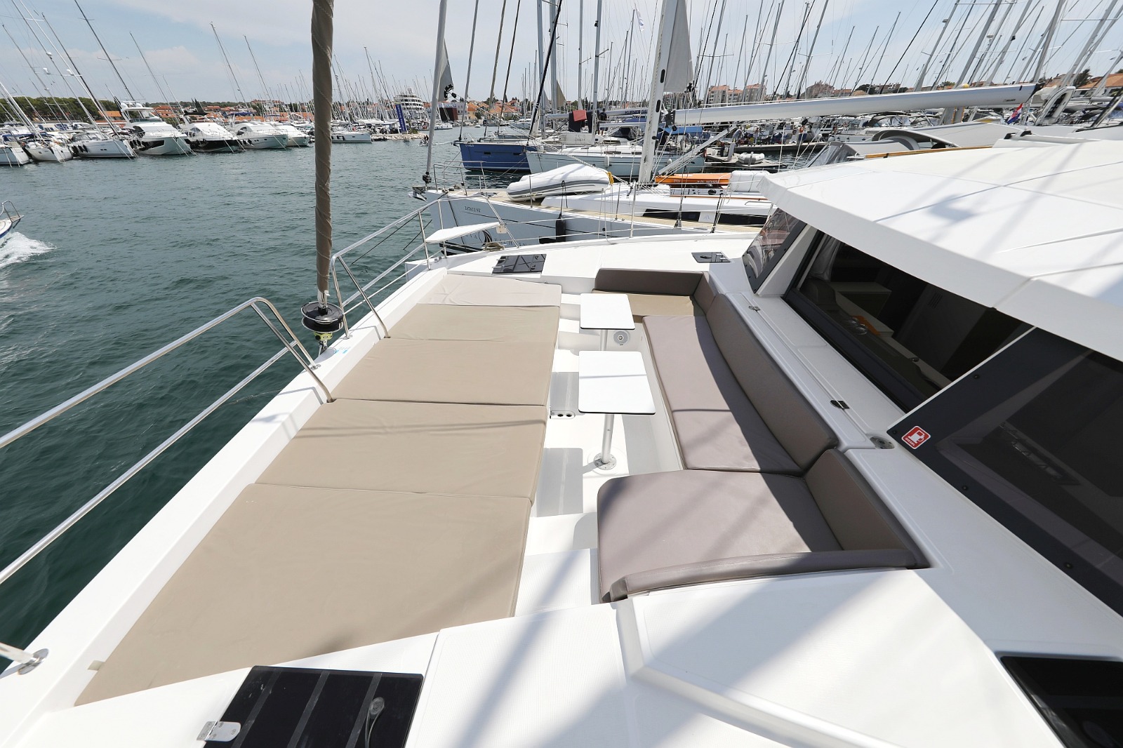 | Outside | Biminitop, Cockpitdusche, Cockpitlautsprecher, Cockpitpolster, Cockpittisch, Deckpolster, elektr. Ankerwinsch, elektr. Großwinsch, Flybridge, Solaranlage |