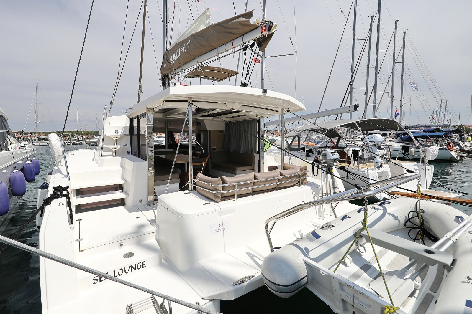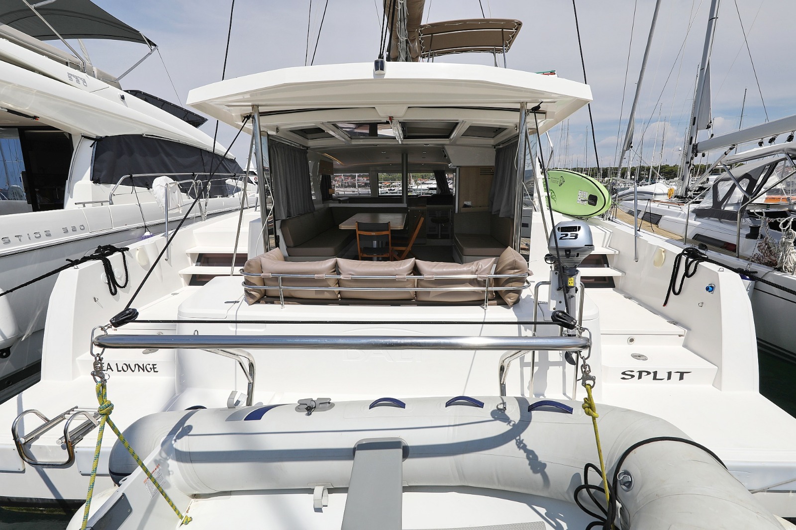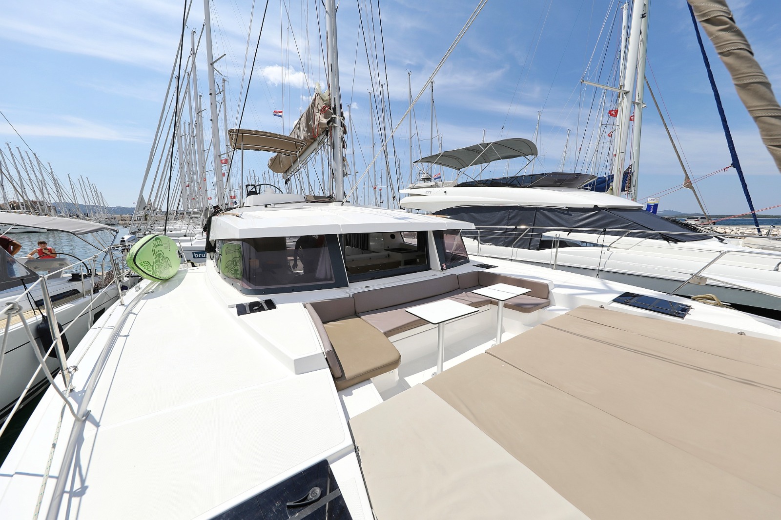 | Outside | Biminitop, Cockpitdusche, Cockpitlautsprecher, Cockpitpolster, Cockpittisch, Deckpolster, elektr. Ankerwinsch, elektr. Großwinsch, Flybridge, Solaranlage |