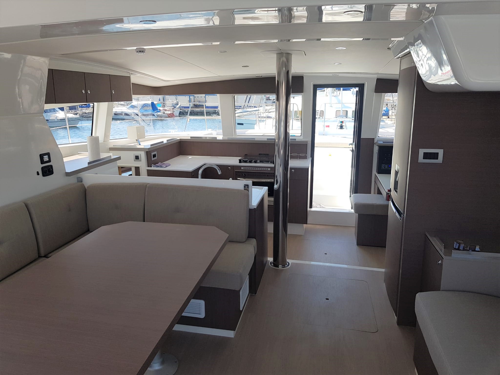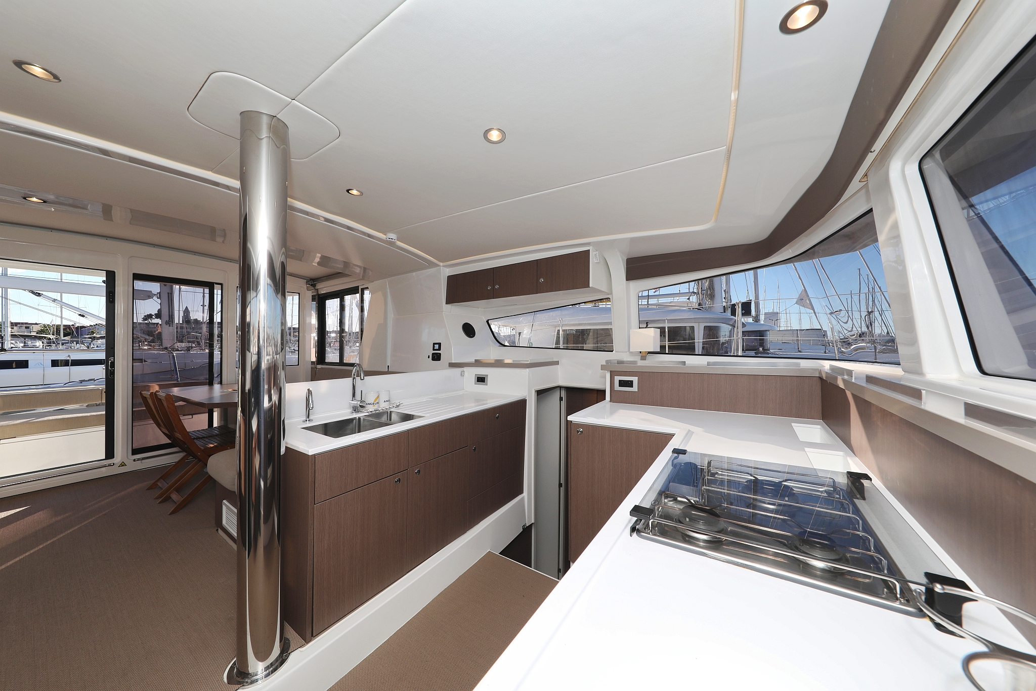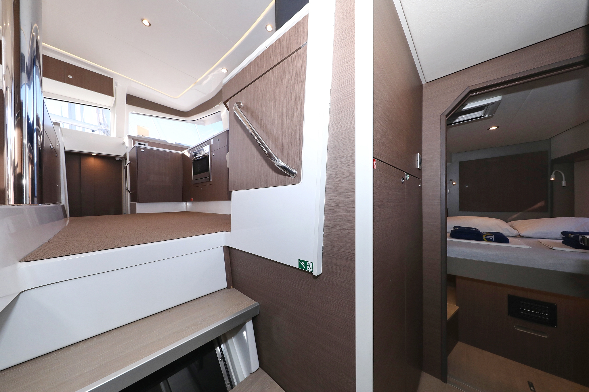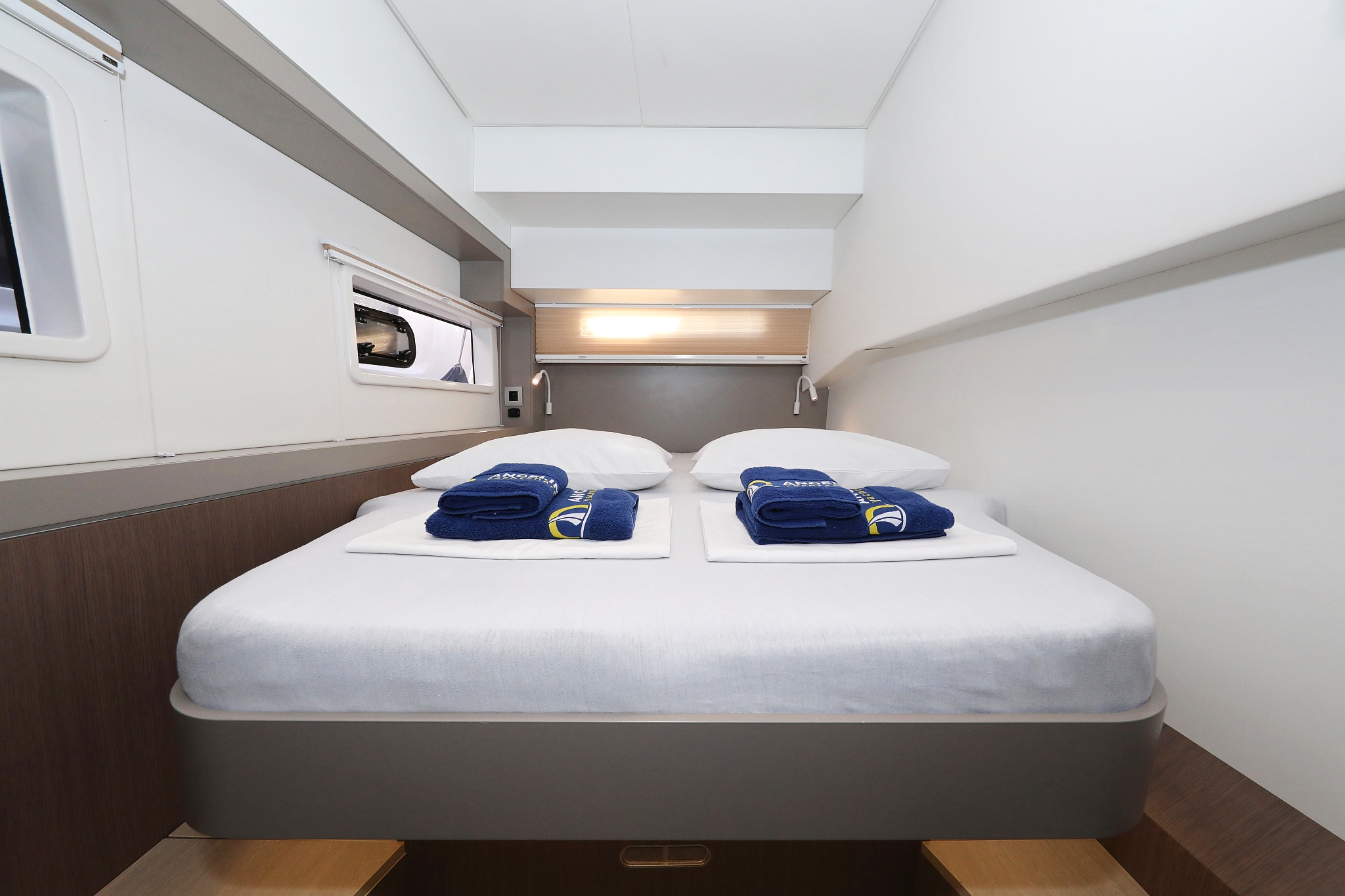 | Outside | 12 V-Anschluss, 220 V-Landanschluss, Anker mit Kette, Bootshaken, Cockpitdusche, Cockpitlautsprecher, Cockpitpolster, Cockpittisch, Deckpolster, elektr. Ankerwinsch, elektr. Winsch, Fender, Festmacherleinen, Gangway, Grill, Hardtop, Solaranlage, Sonnendeck, Wasserschlauch, Winschen |
