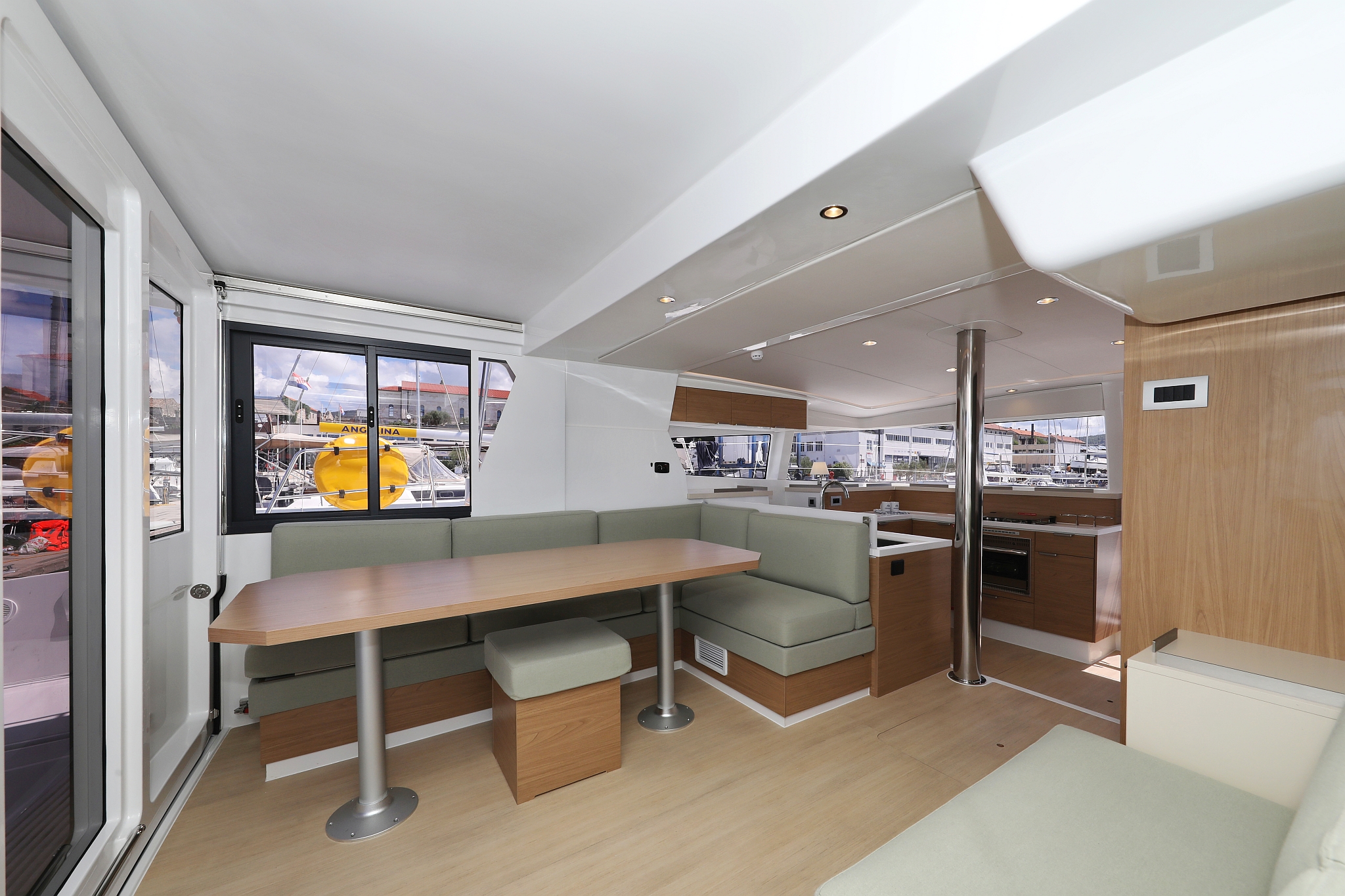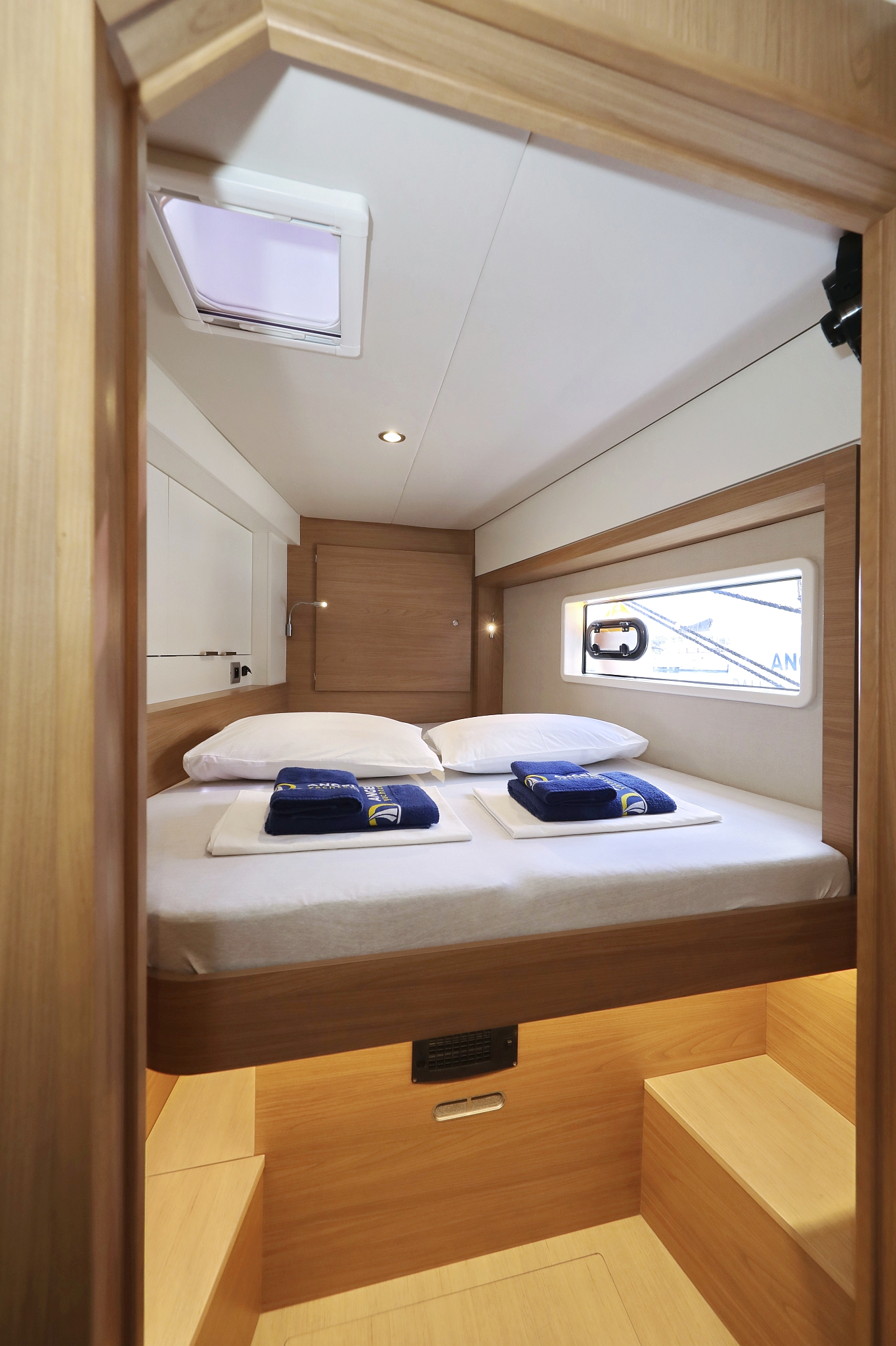 | Inside | 220V Steckdosen, Backofen, FUSION Sound System, Gasherd, Heizung, Inverter 12V/220V, Klimaanlage (Landstrom), Kühlschrank mit Gefrierfach, Ladegerät, Mokkakanne, Moskitonetze, Radio mit Bluetooth, Spülbecken, USB Steckdose, Ventilatoren in Kabinen, Wasserkocher, WC (elektr.) |