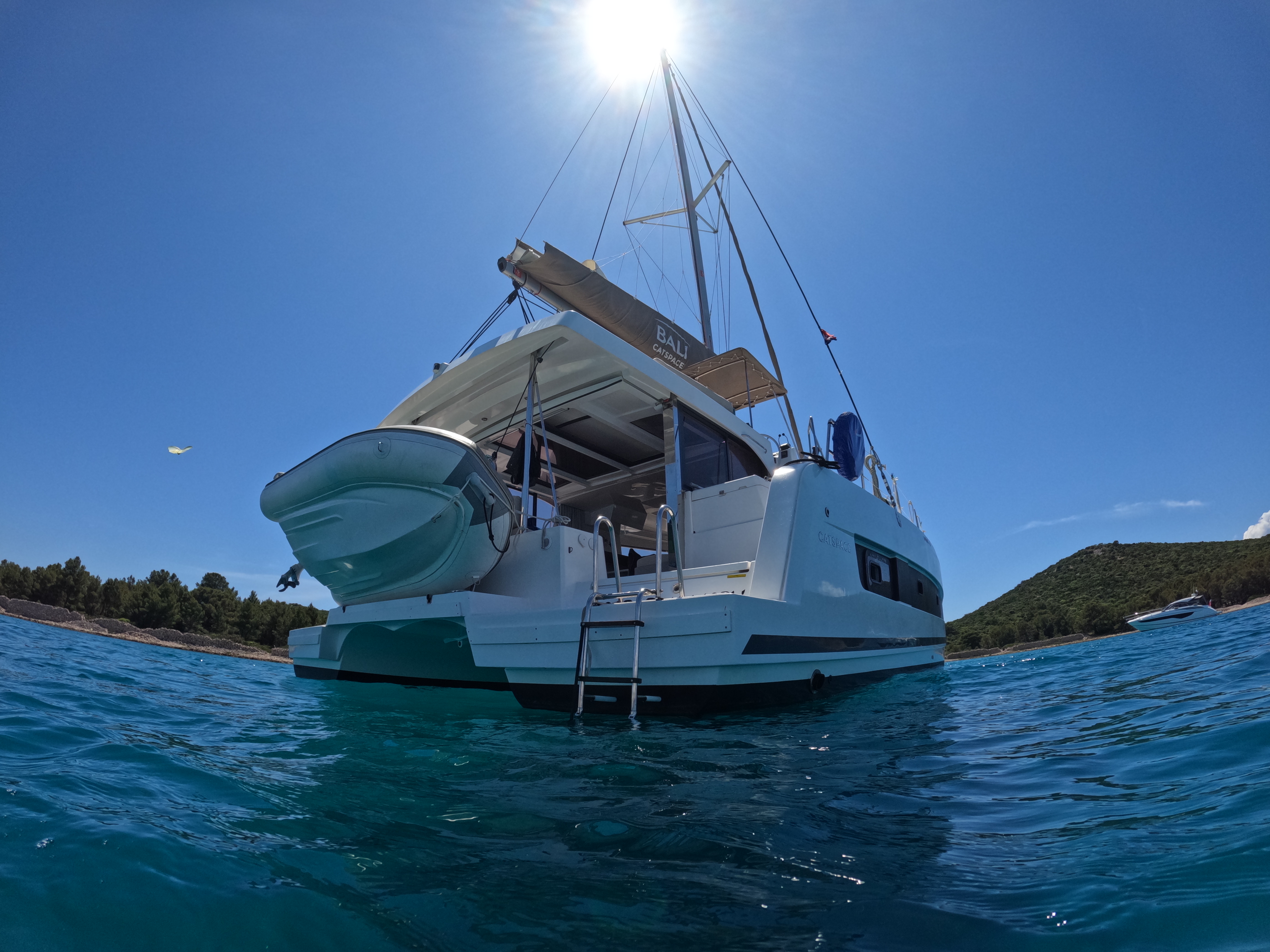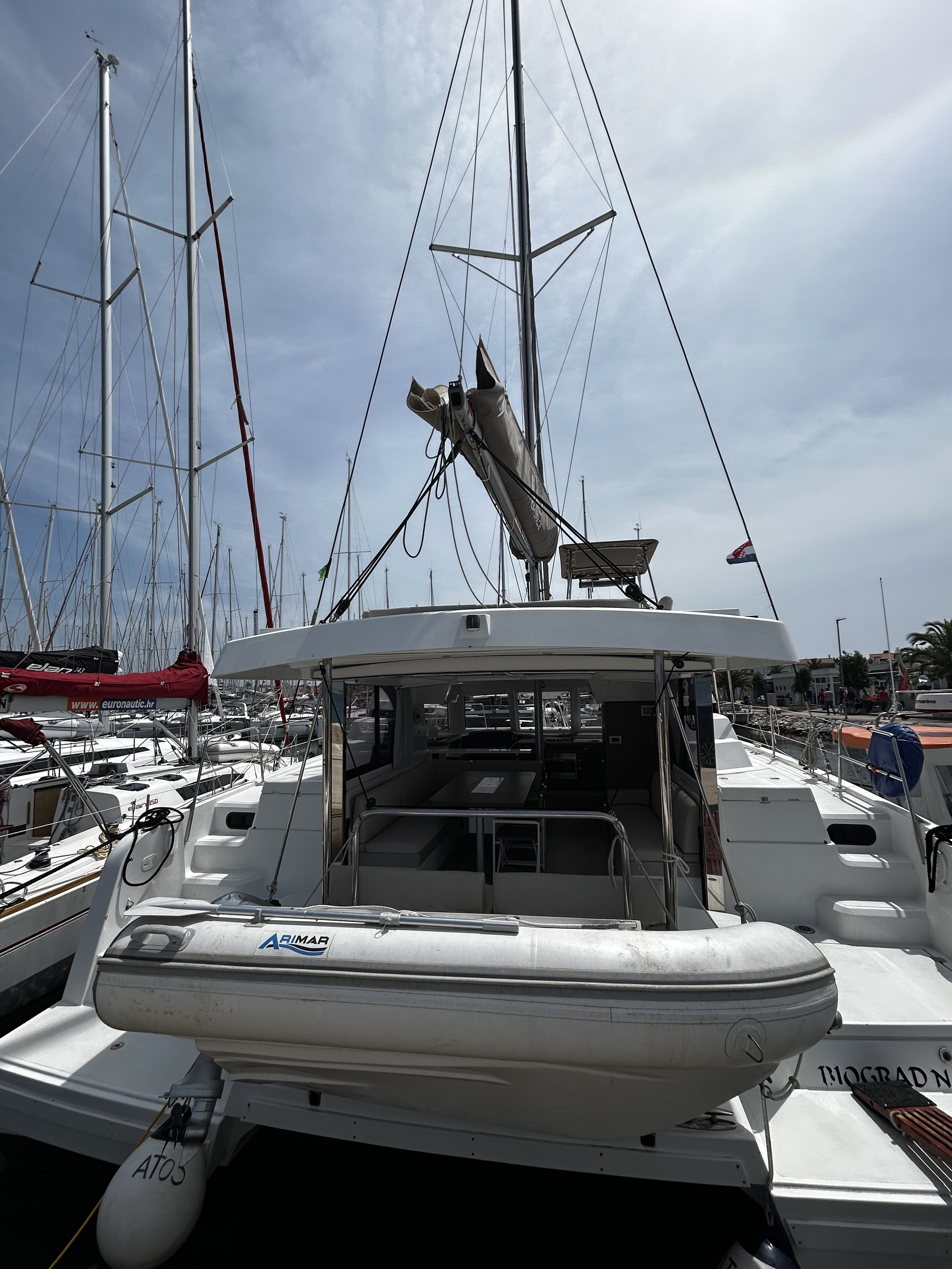 | Outside | 220 V-Landanschluss, Anker mit Kette, Cockpitdusche, Cockpitlautsprecher, Cockpitleuchte, Cockpitpolster, Cockpittisch, Davits, Deckbeleuchtung, elektr. Ankerwinsch, elektr. Winsch, Fender, Fernsteuerung für elektr. Ankerwinsch, Festmacherleinen, Grill, Solaranlage, Wantenschneider |