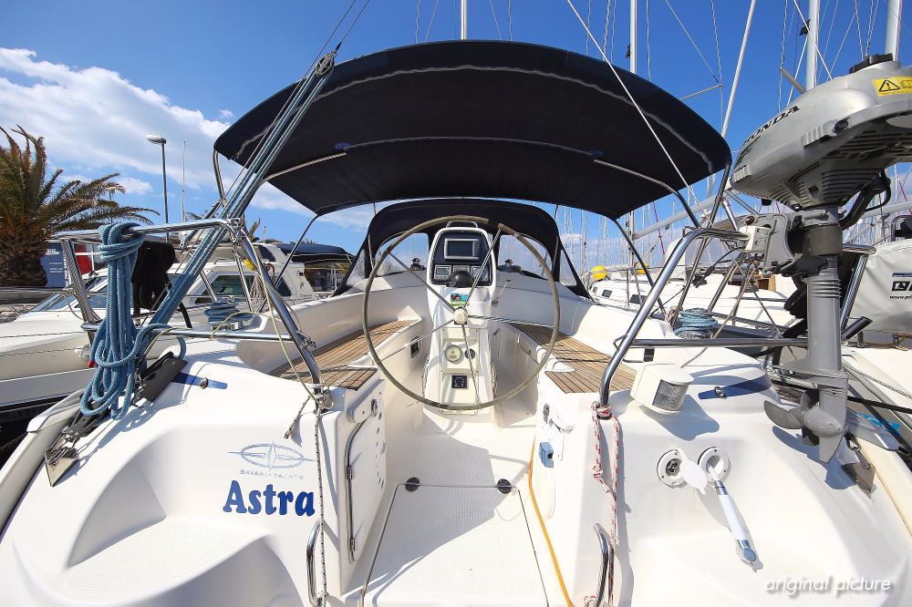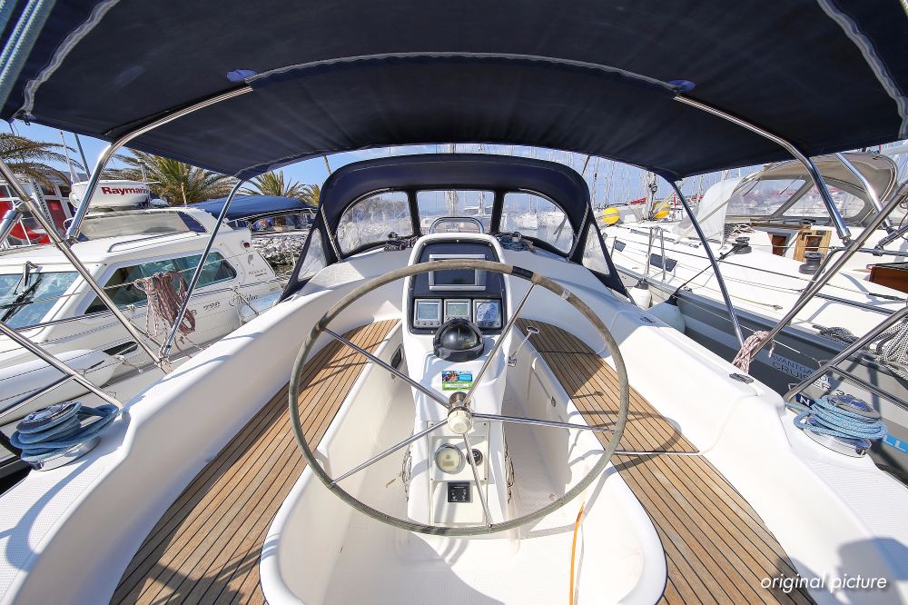 | Outside | 220 V-Landanschluss, Anker mit Kette, Ankerwinsch, Biminitop, Bootshaken, Cockpitdusche, Cockpitlautsprecher, Cockpittisch, Dieselkanister , elektr. Ankerwinsch, Fender, Festmacherleinen, Gangway, Kugelfender, Kunststoff-Eimer (Pütz), Sprayhood, Wantenschneider, Wasserkanister , Wasserschlauch, Windex |
